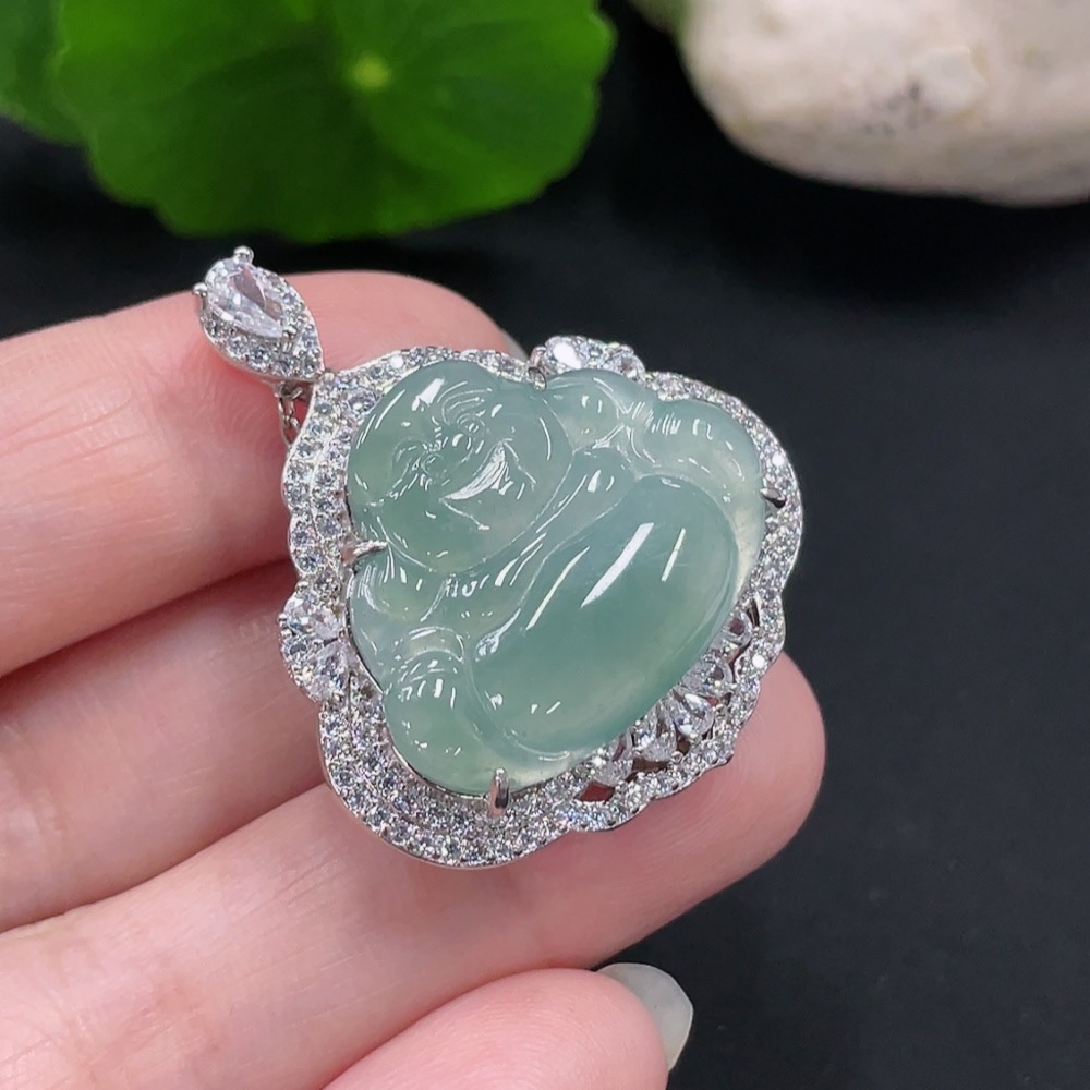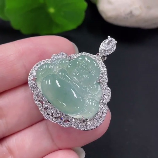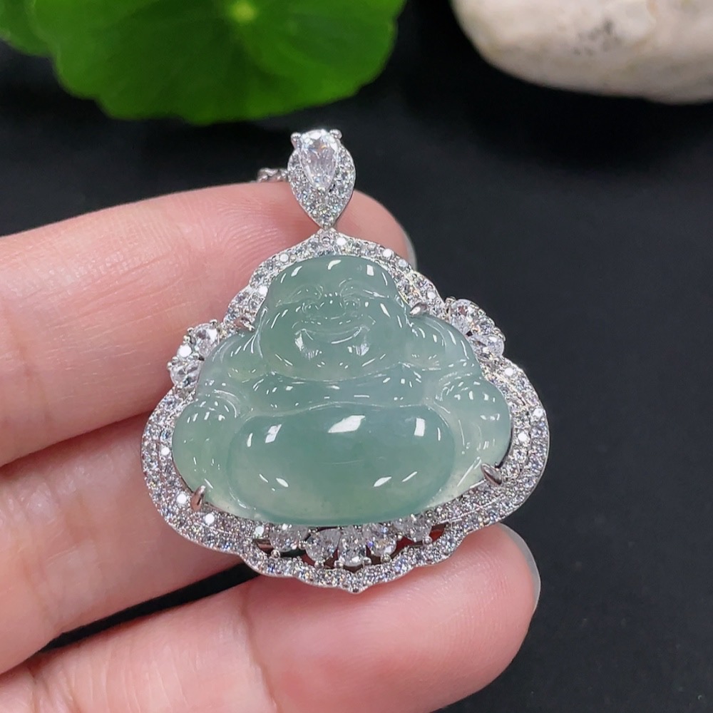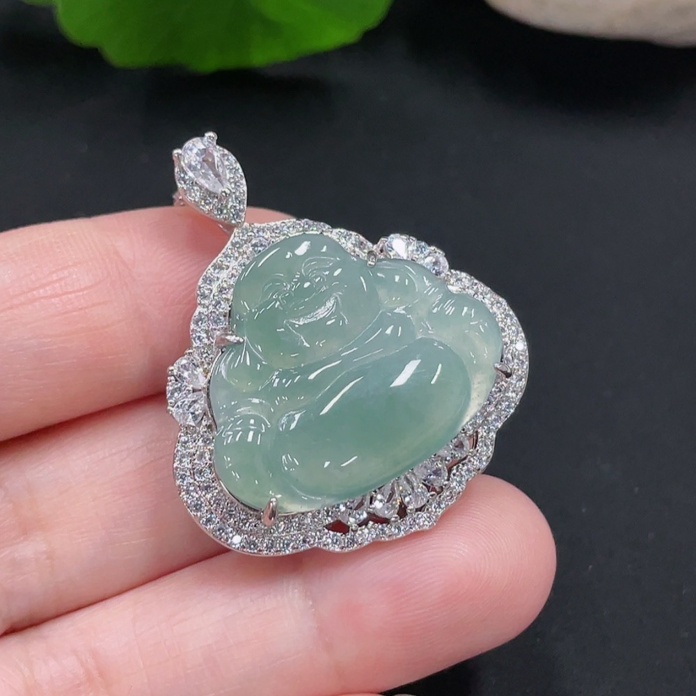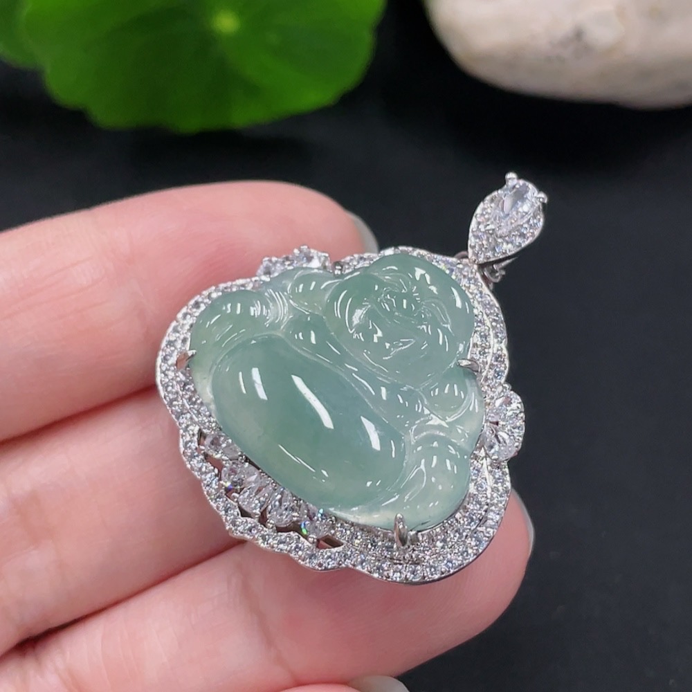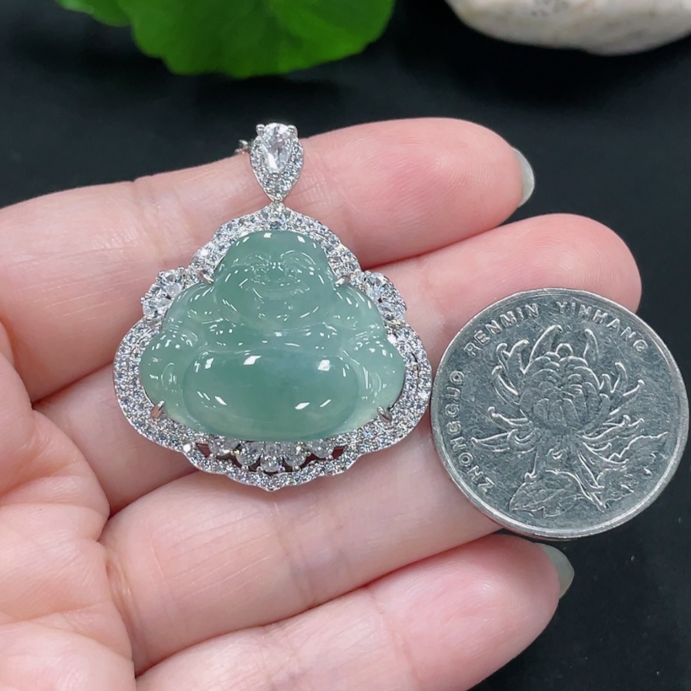 Jadeite Buddha Pendant Total Weight Approx. 10.3g (Incl. Chain) (Non-Gold Setting)
