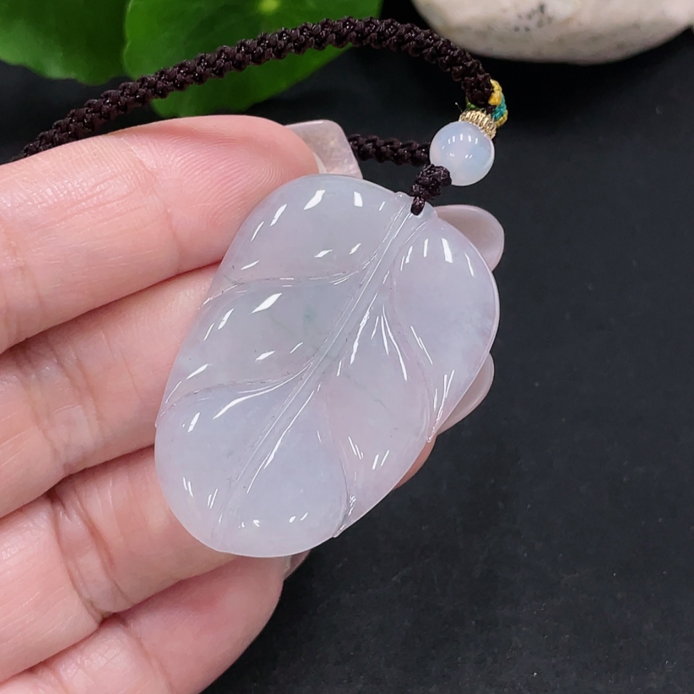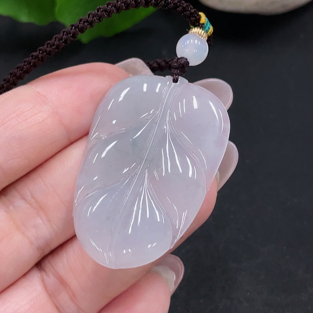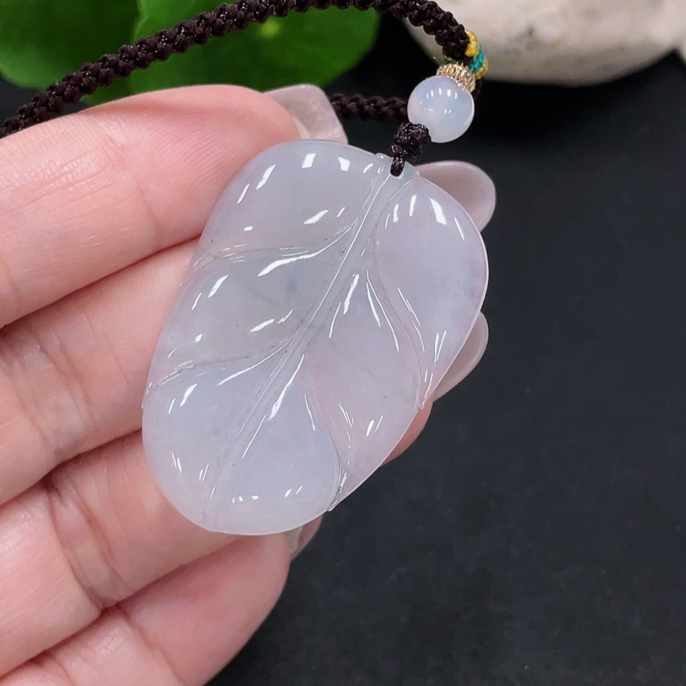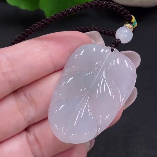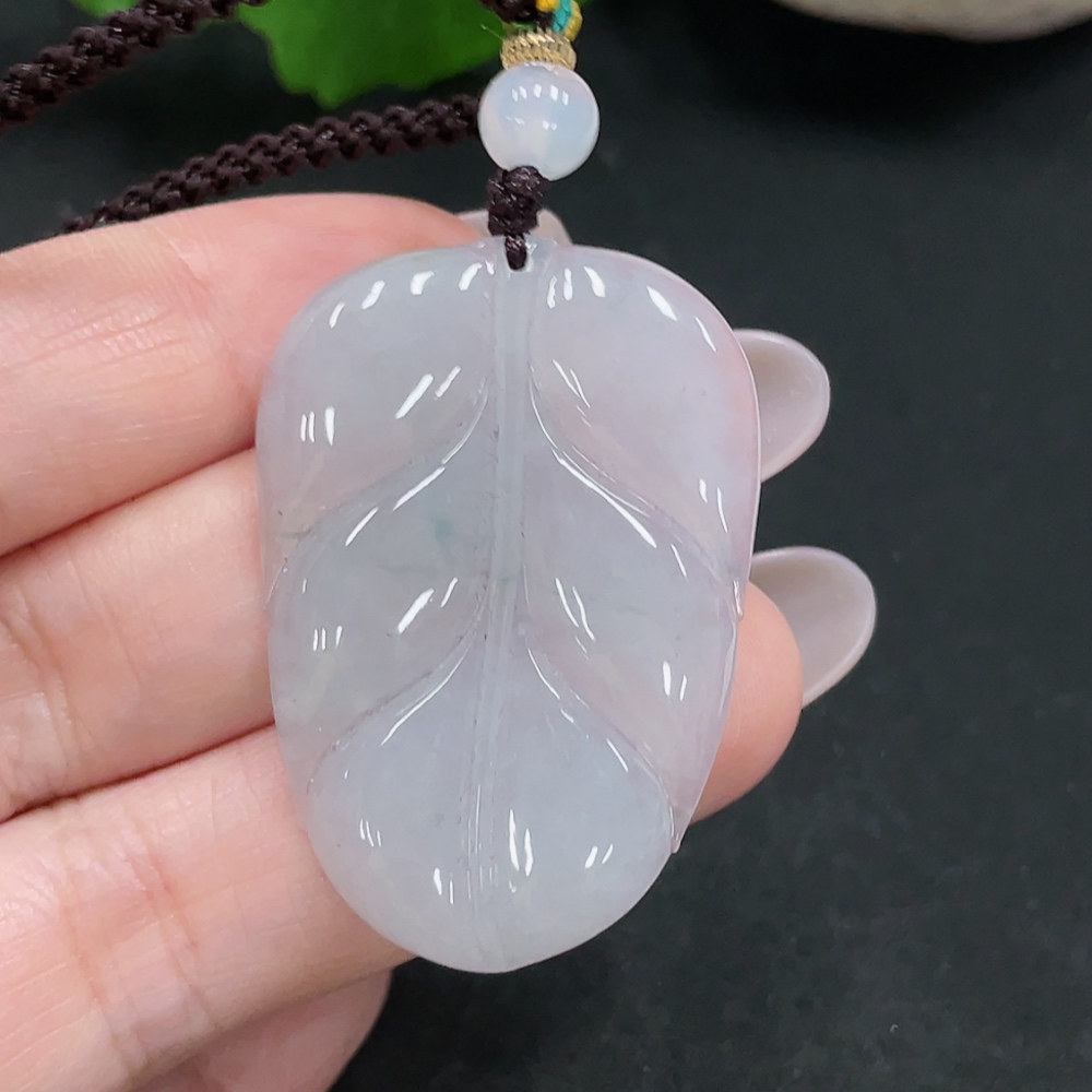 Jadeite Leaf Pendant Total Weight Approx. 11.33g (Incl. Cord Weight) With Non-Grade A Beads