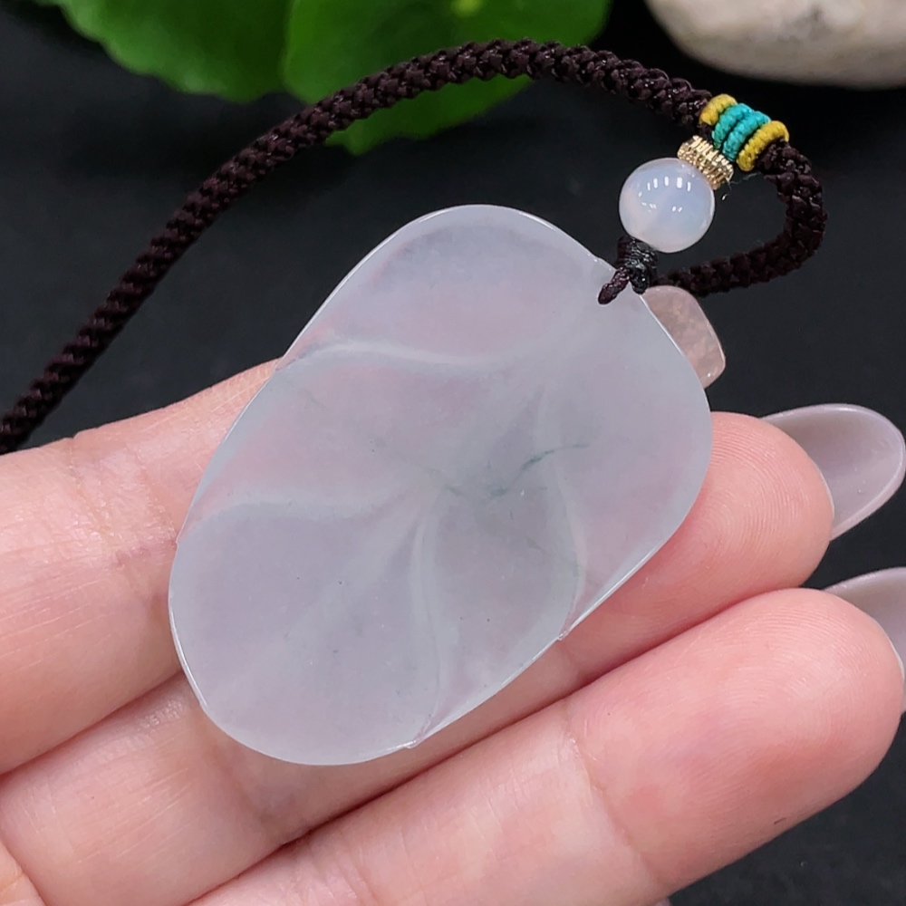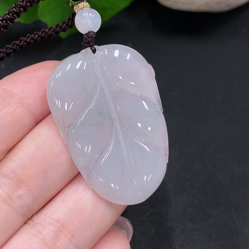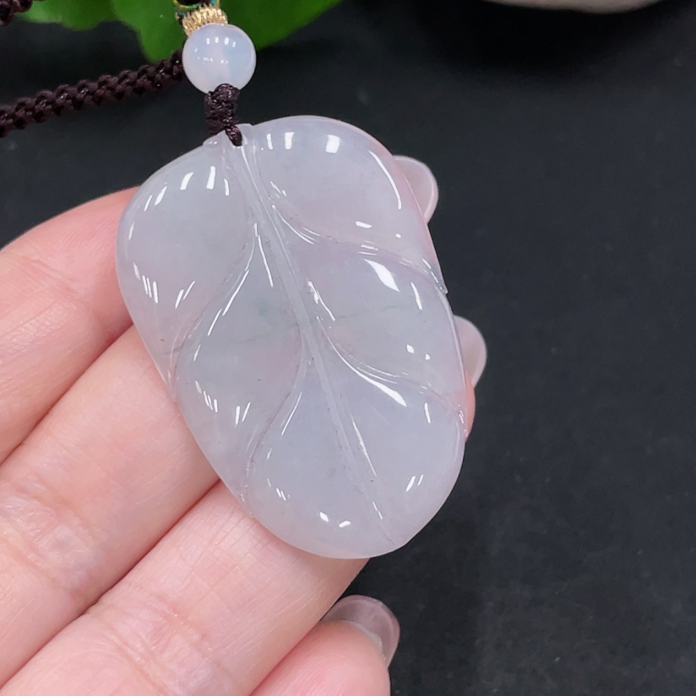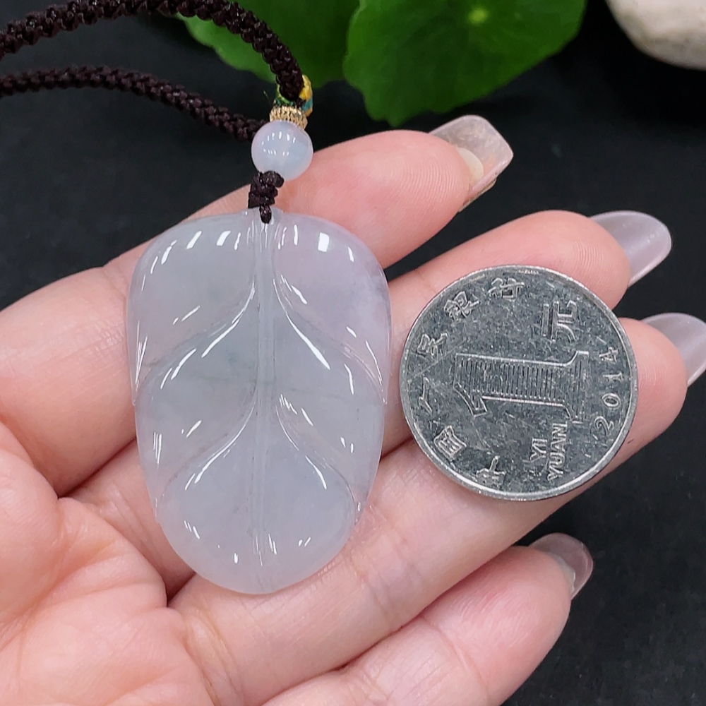 Jadeite Leaf Pendant Total Weight Approx. 11.33g (Incl. Cord Weight) With Non-Grade A Beads
