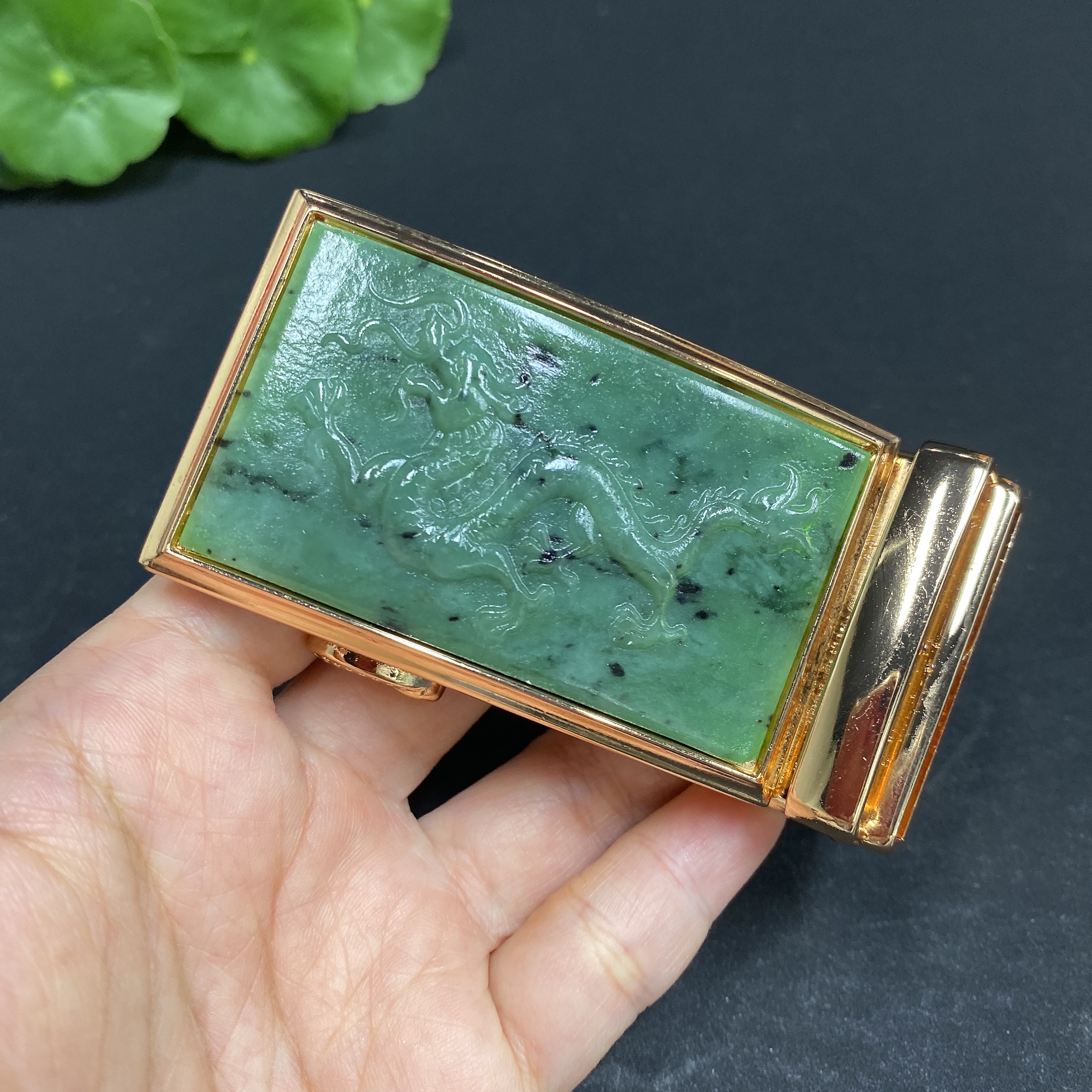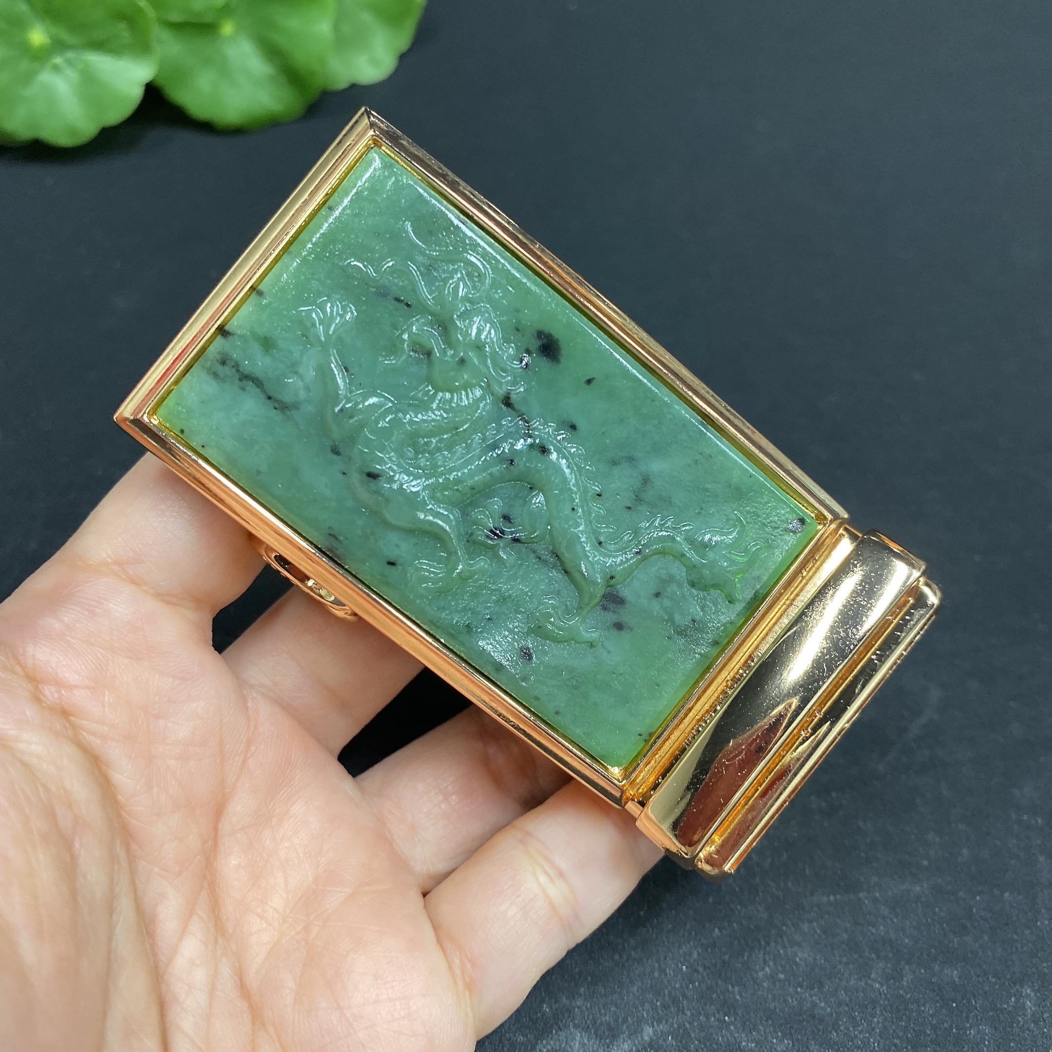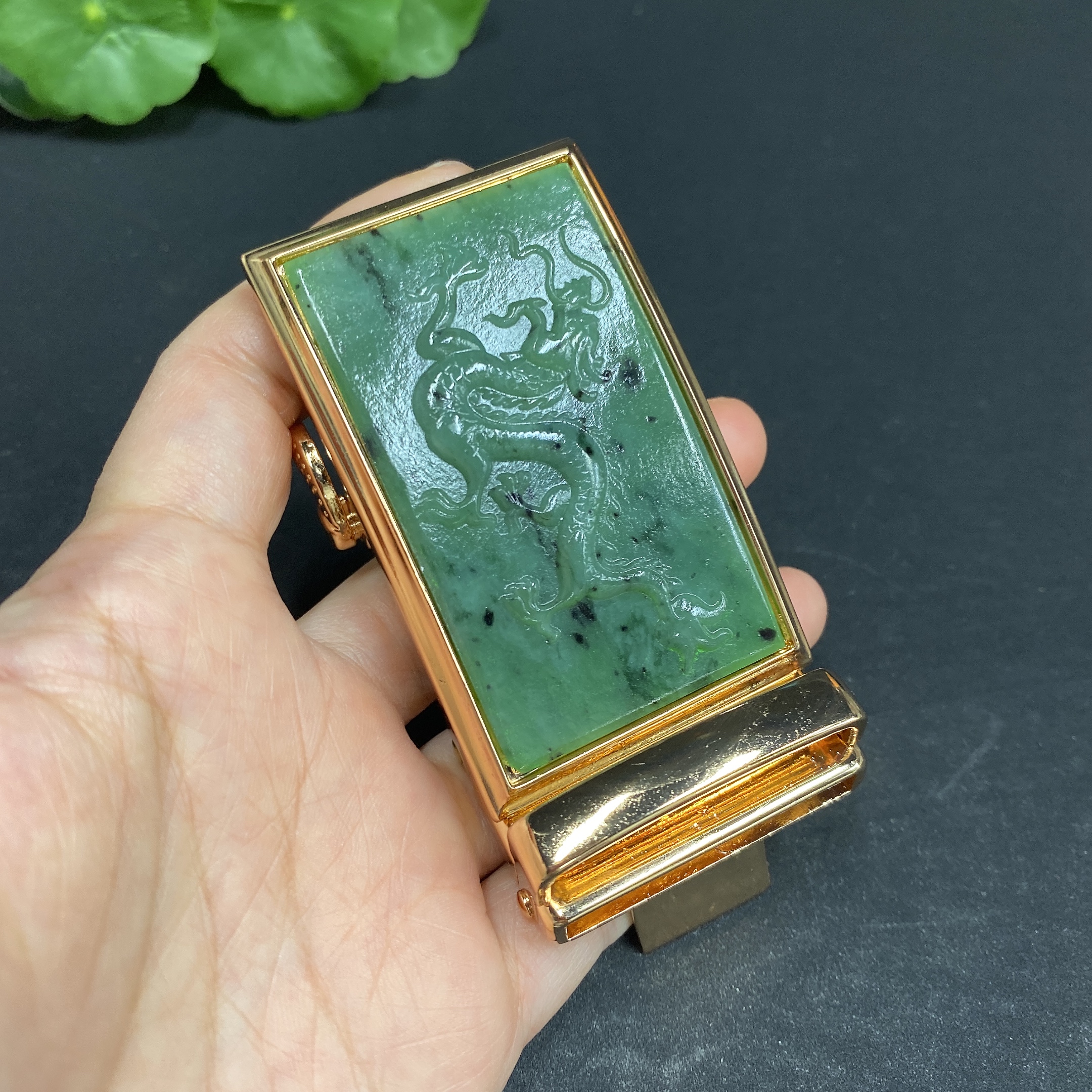 Hetian Jade Dragon Belt Buckle Non-Gold Inlaid Total Weight Approx. 116.1g