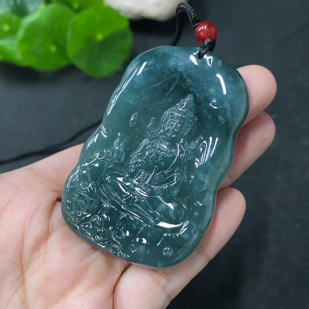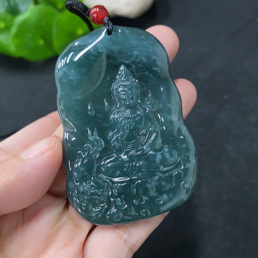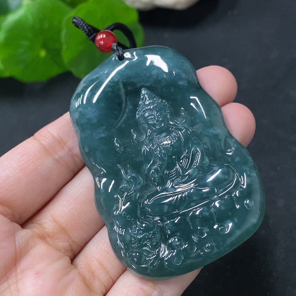 Jadeite Pendant of Manjushri, Total Weight Including Rope: 31.6g
