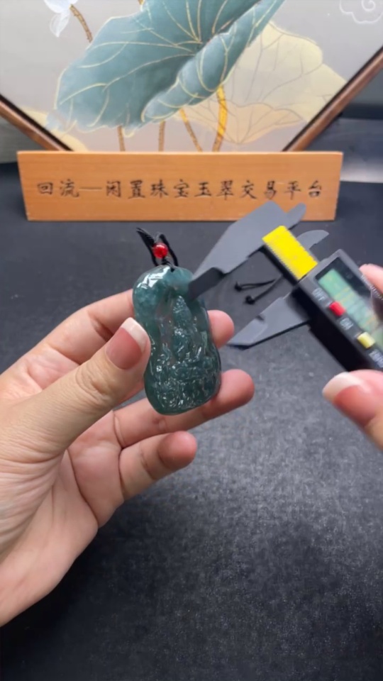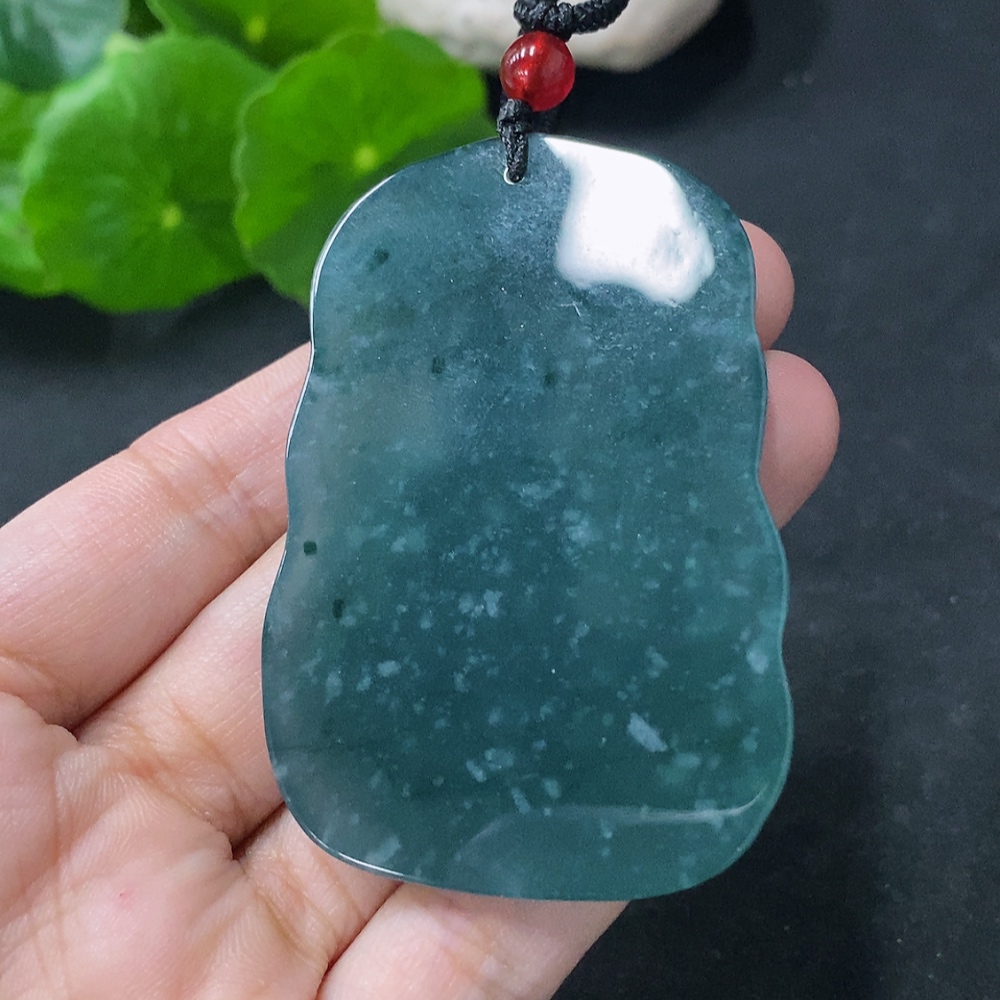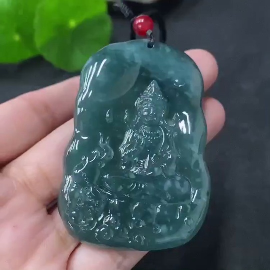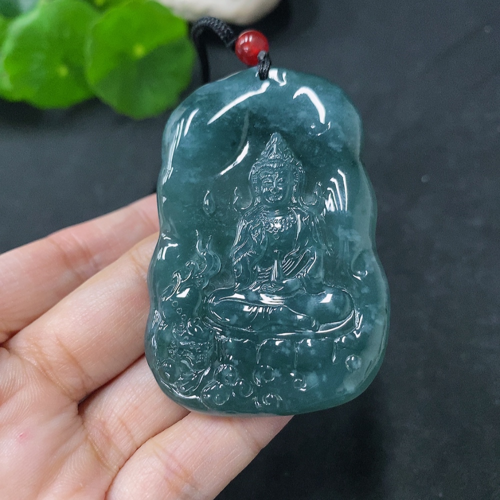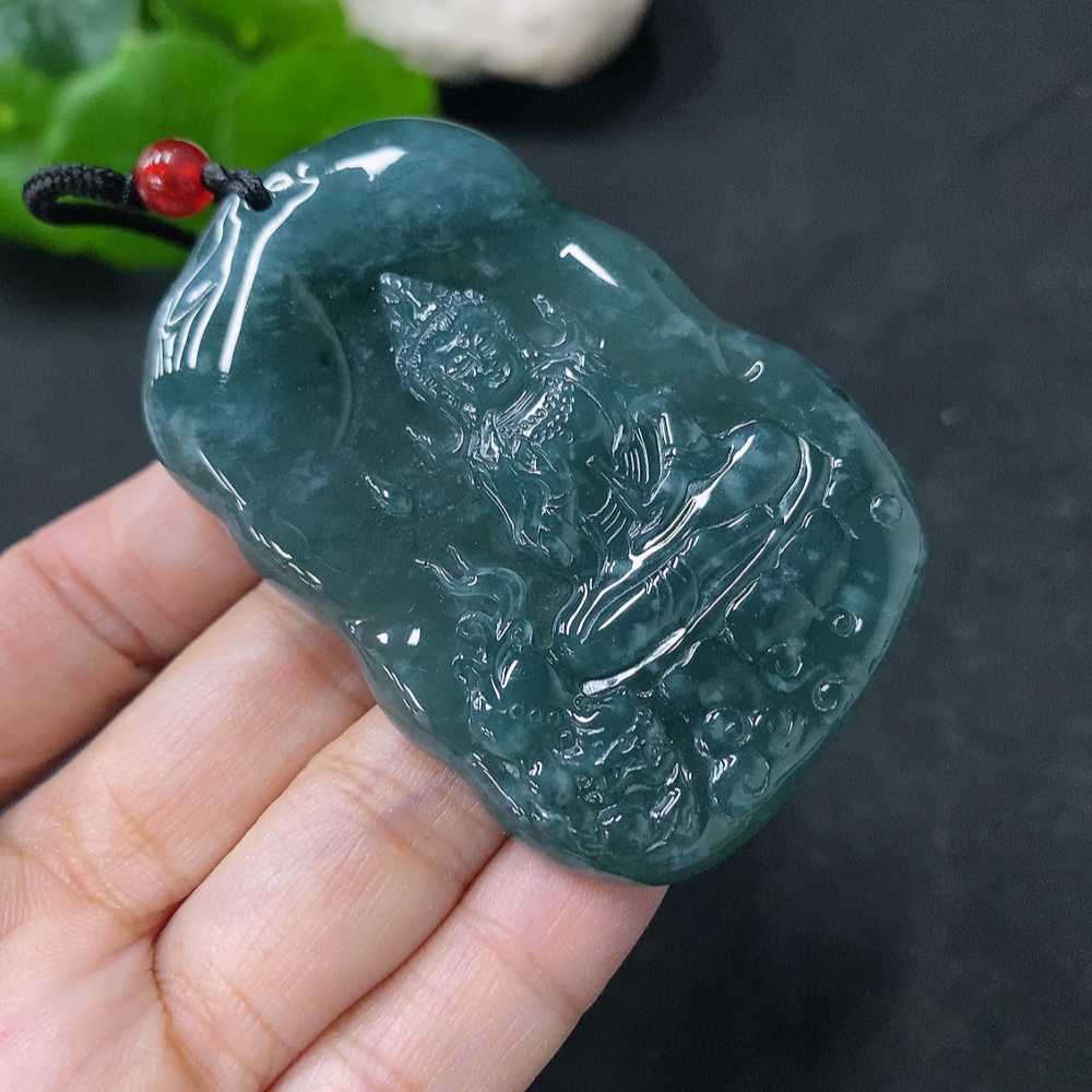 Jadeite Pendant of Manjushri, Total Weight Including Rope: 31.6g