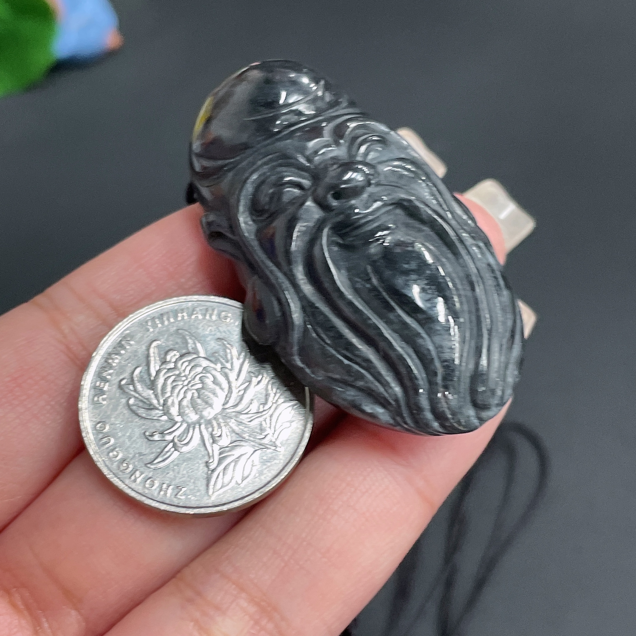 Hetian Jade Pendant, God of Longevity, with rope weight 39.85g