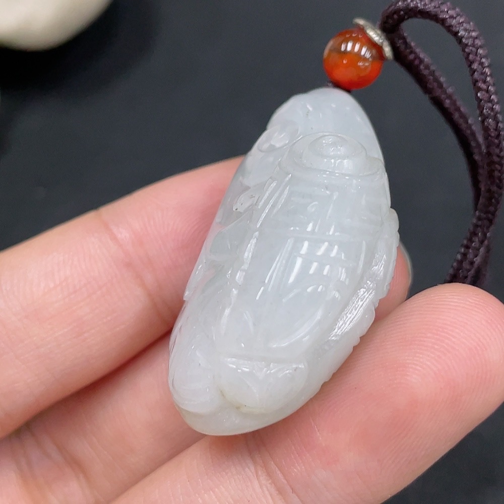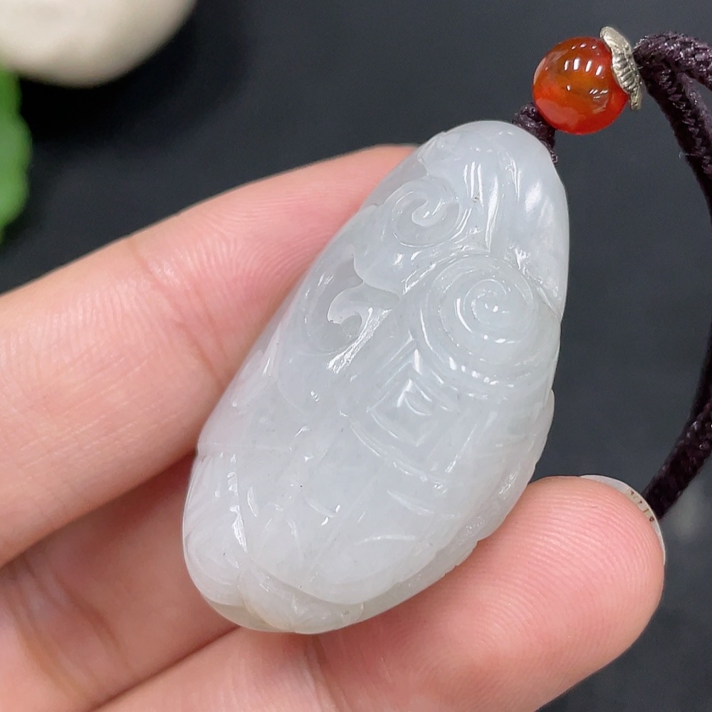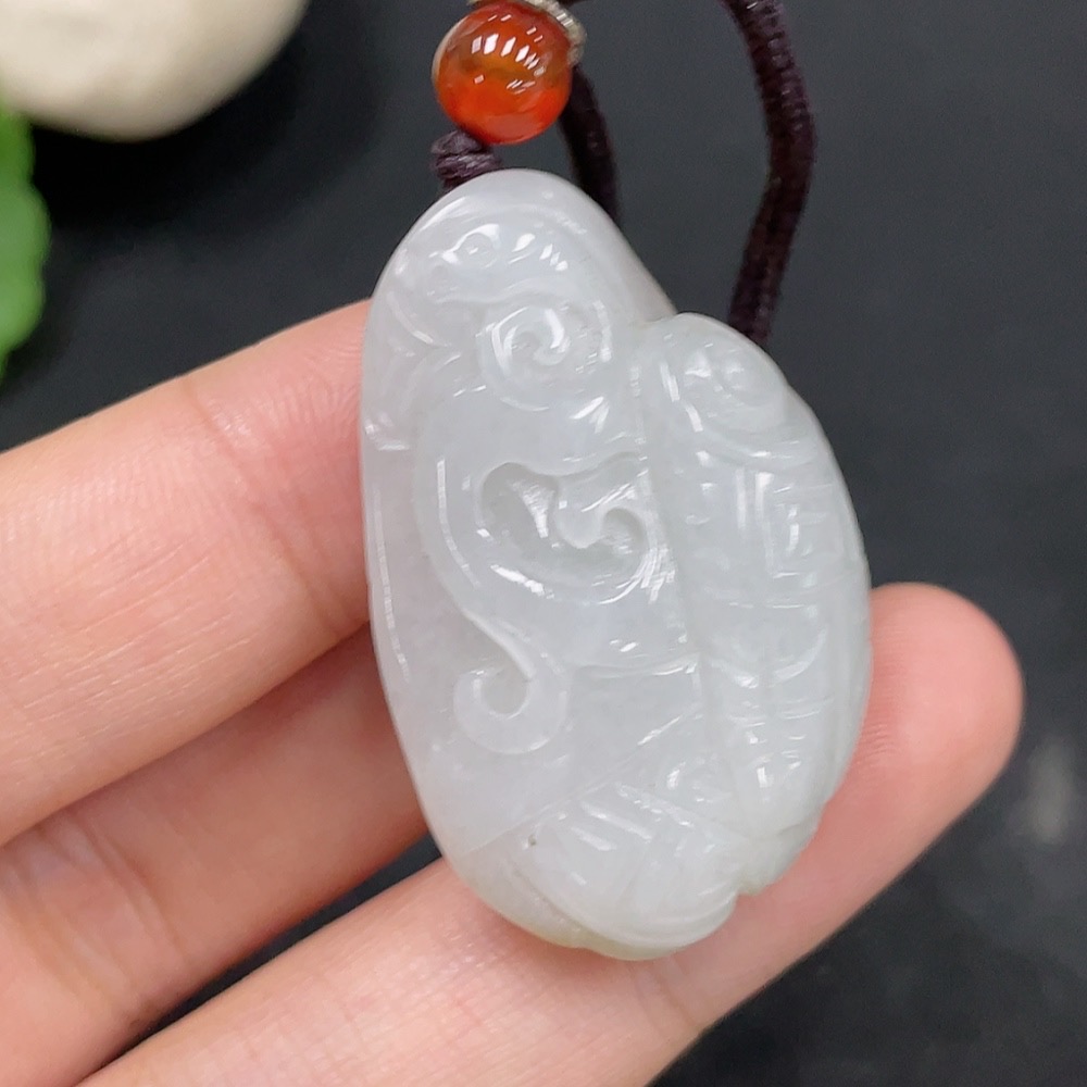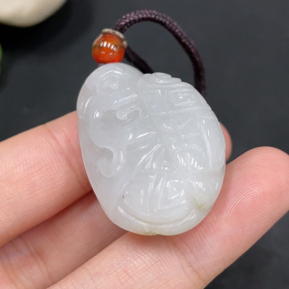 Hetian Jade Pendant, Antique Style, Undetermined Skin Color Origin, Total Weight Approximately (Including String) 18g