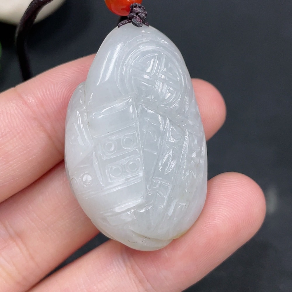 Trezaar - Hetian Jade Pendant, Antique Style, Undetermined Skin Color Origin, Total Weight Approximately (Including String) 18g