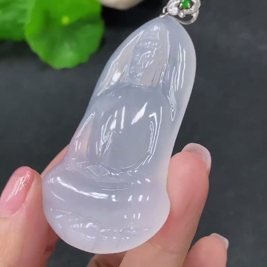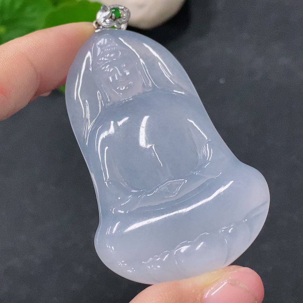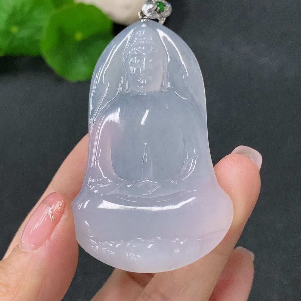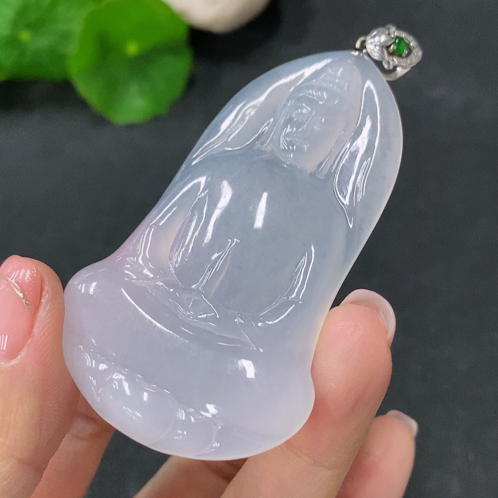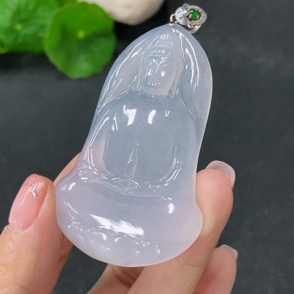 Jadeite Pendant Guanyin with 18K Gold and Diamond Accents, Total Weight Approx. 23.6g, Includes Collectible Certificate (Ruiguang)