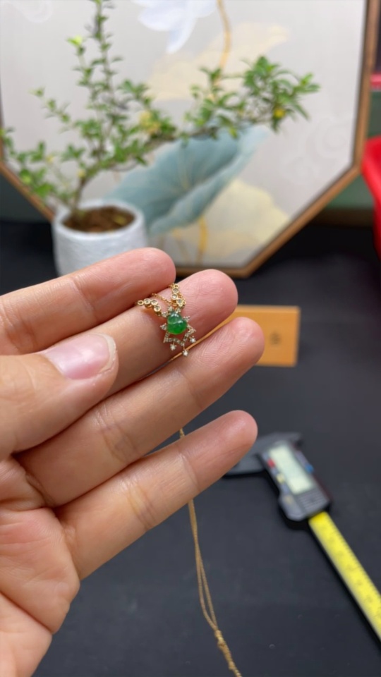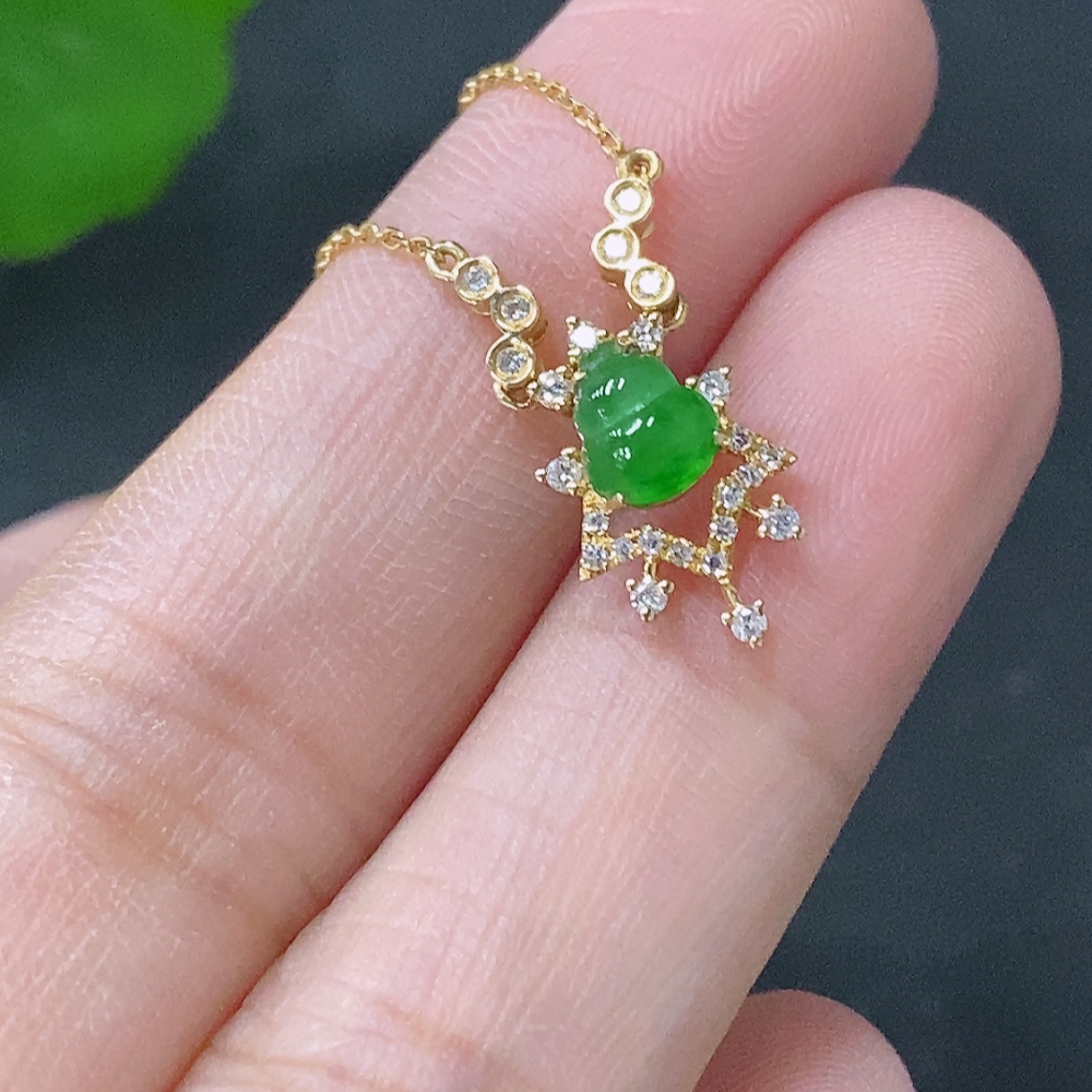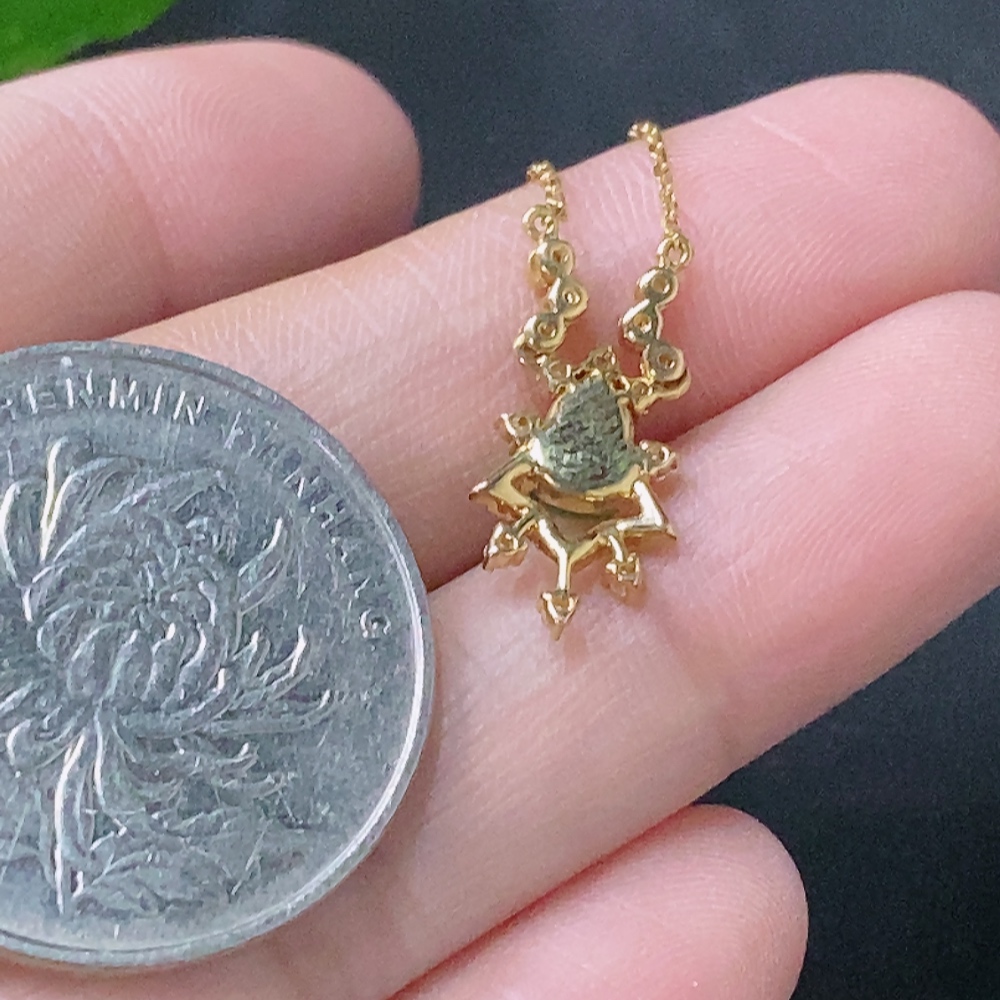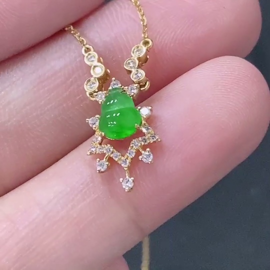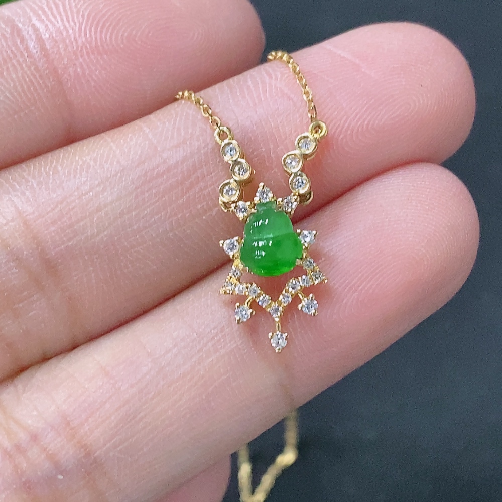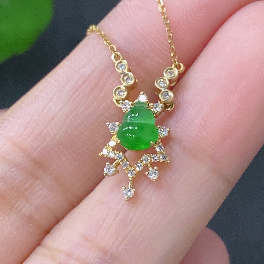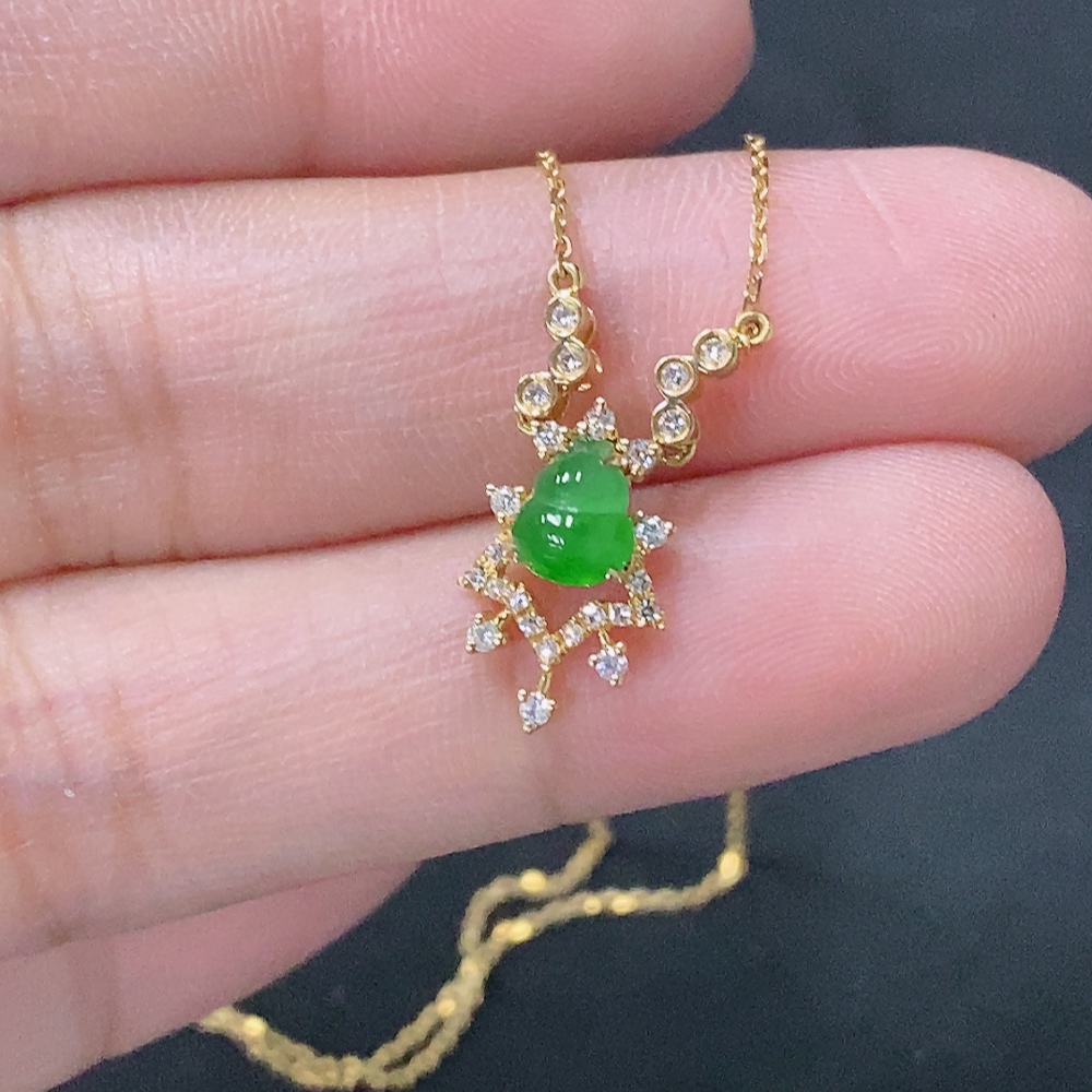 Jadeite Pendant with 18K Gold and Diamond Accents, Total Weight Approx. 2.25g (Including Chain)