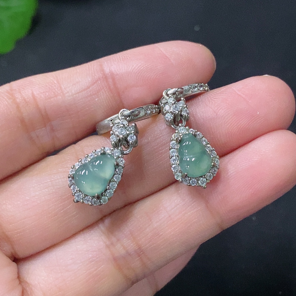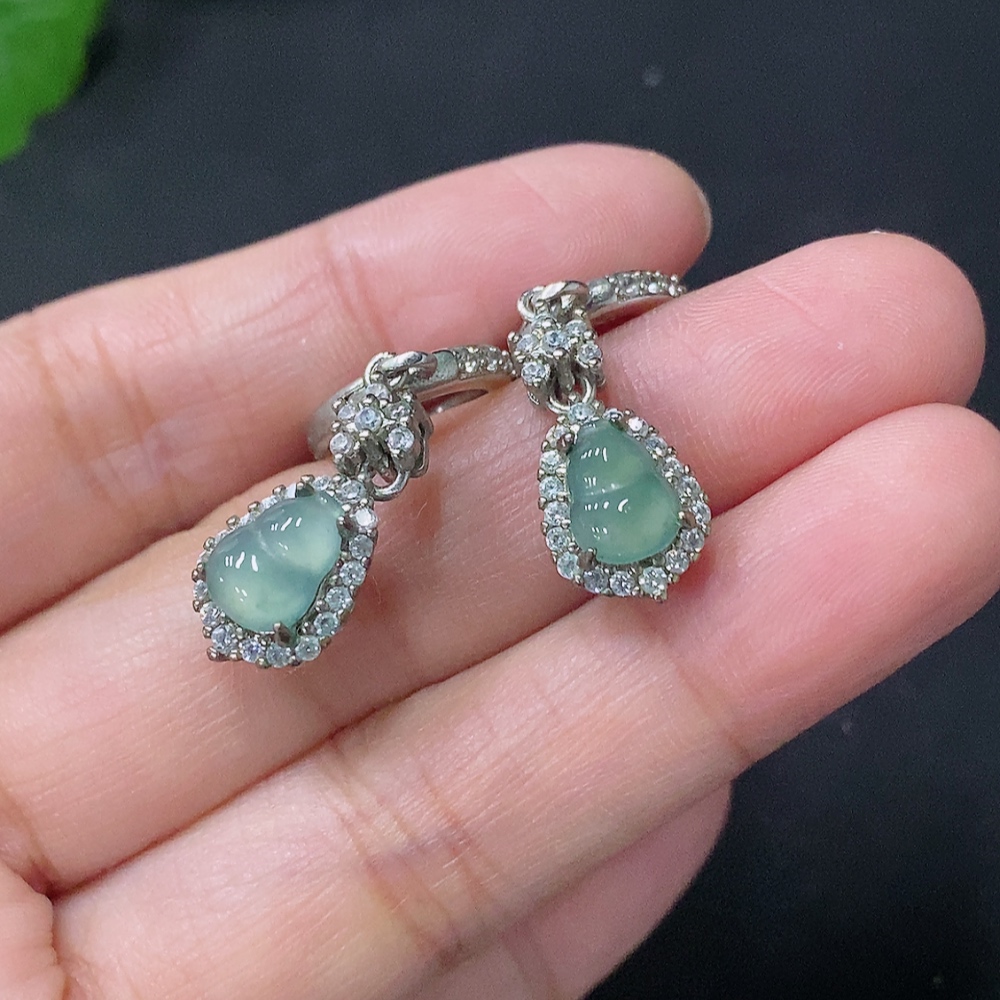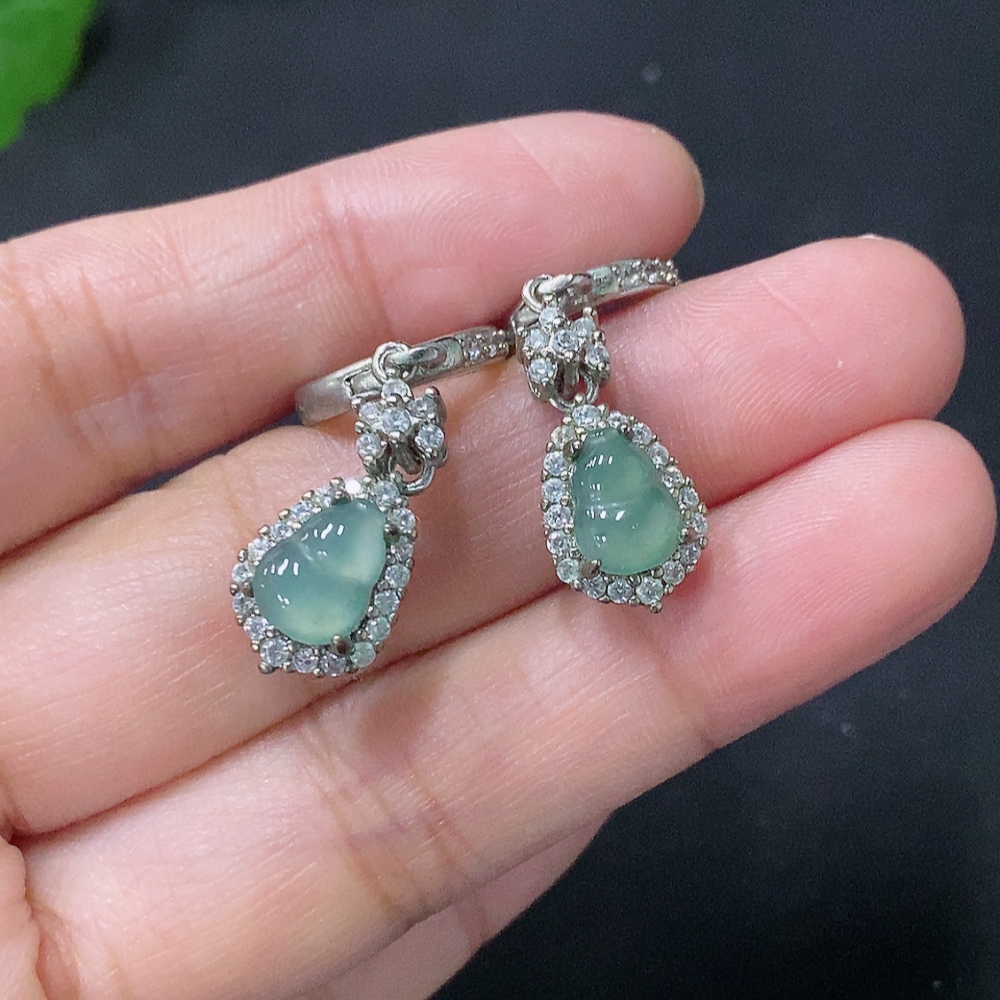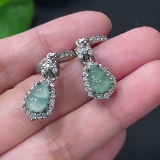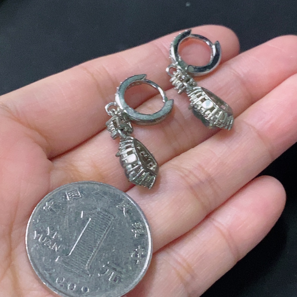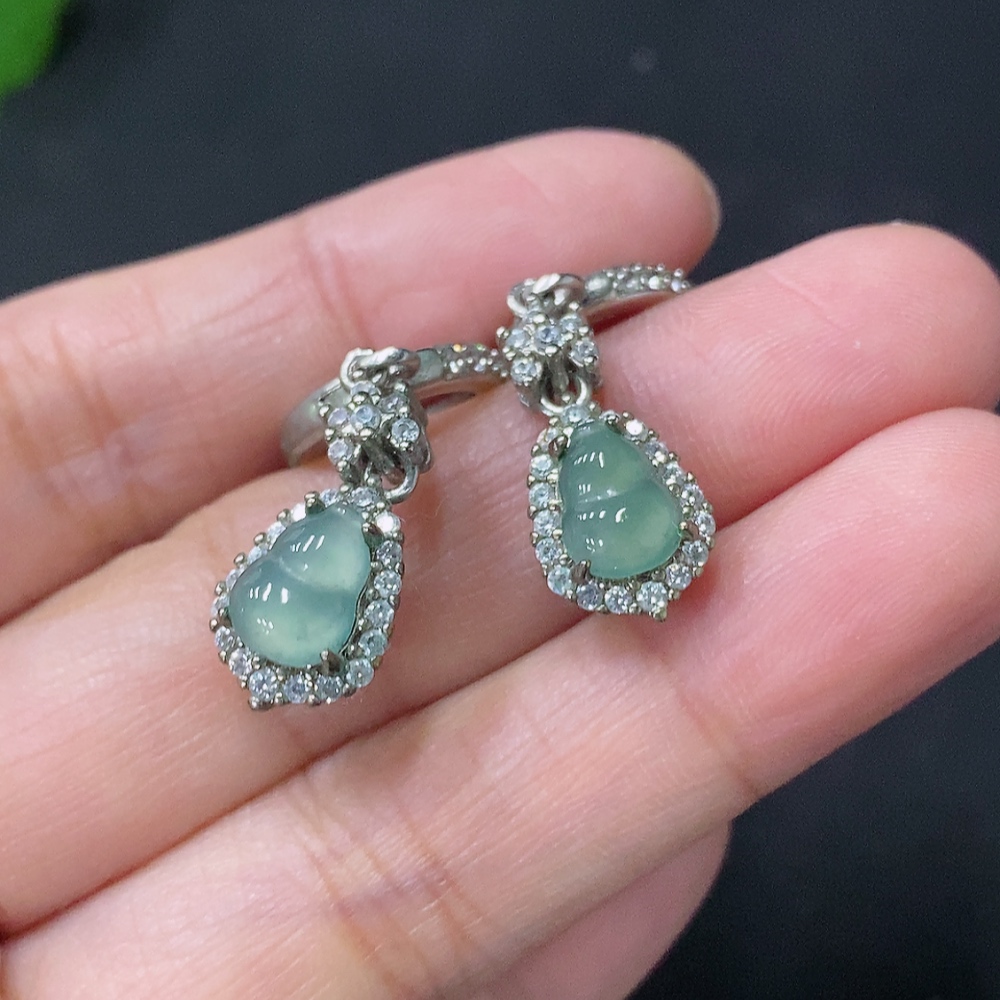 Jadeite Inlaid Earrings Non-Gold Total Weight Approx. 4.77g