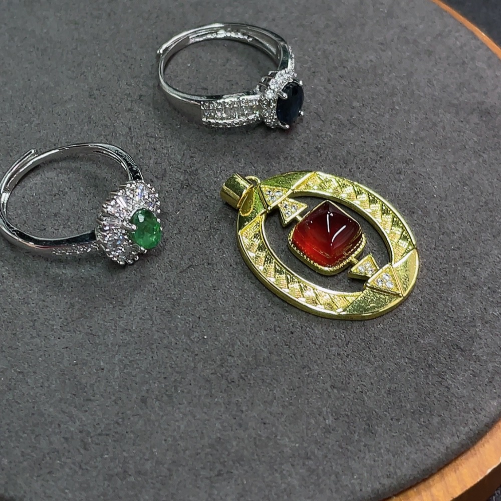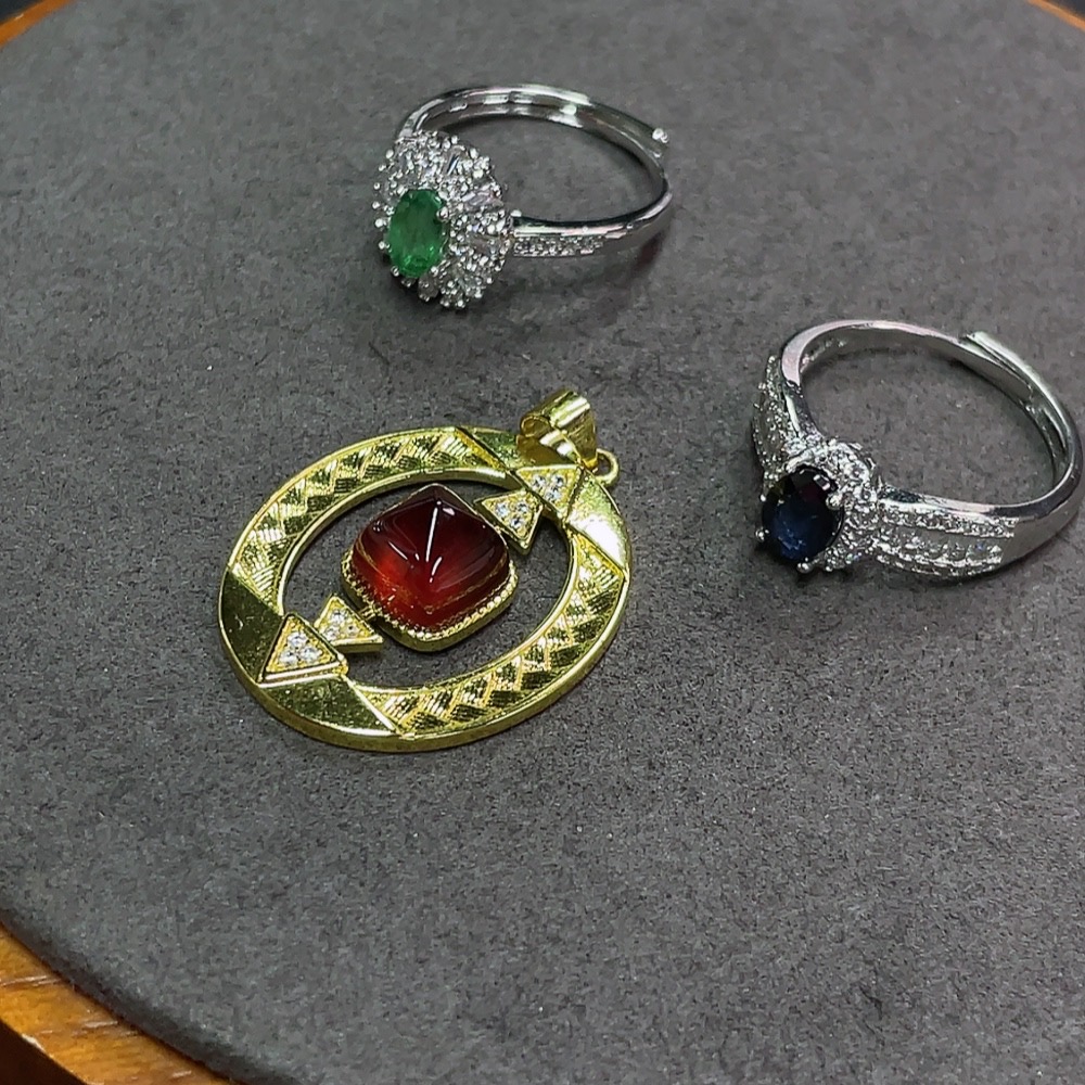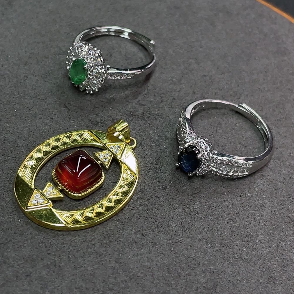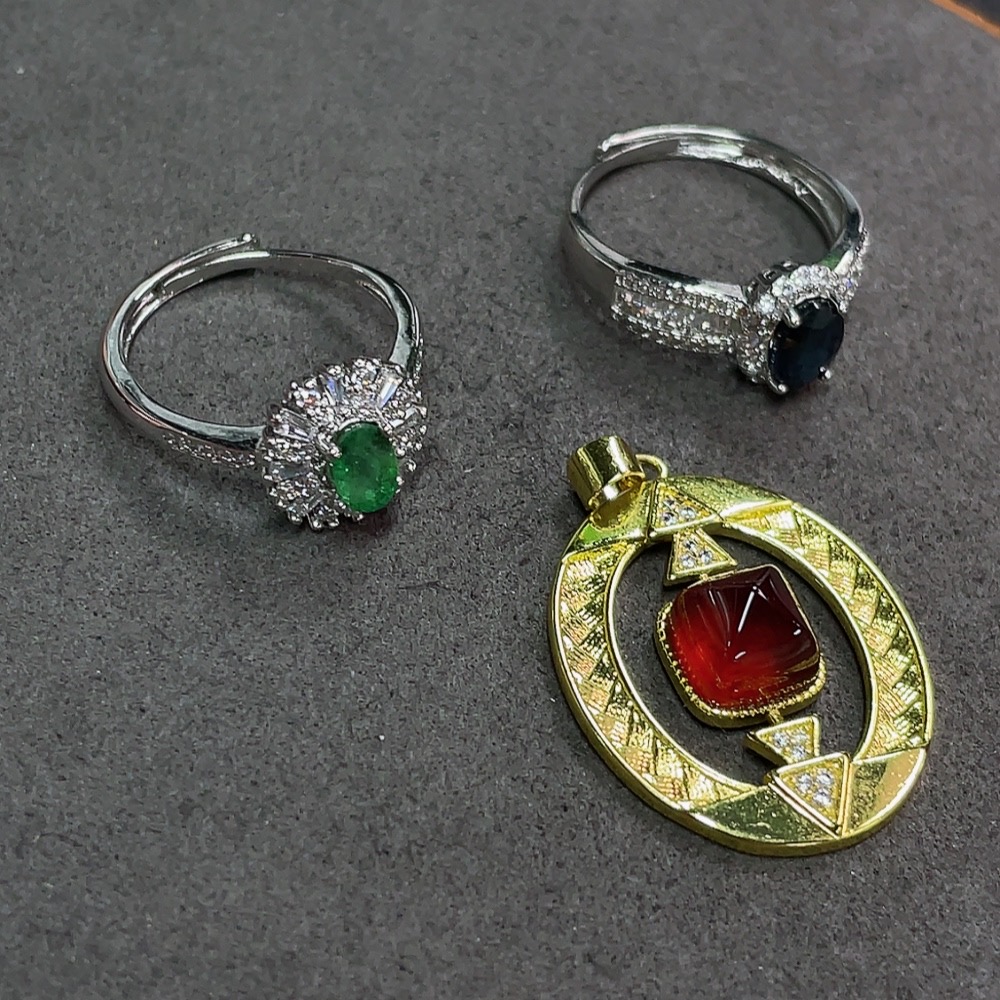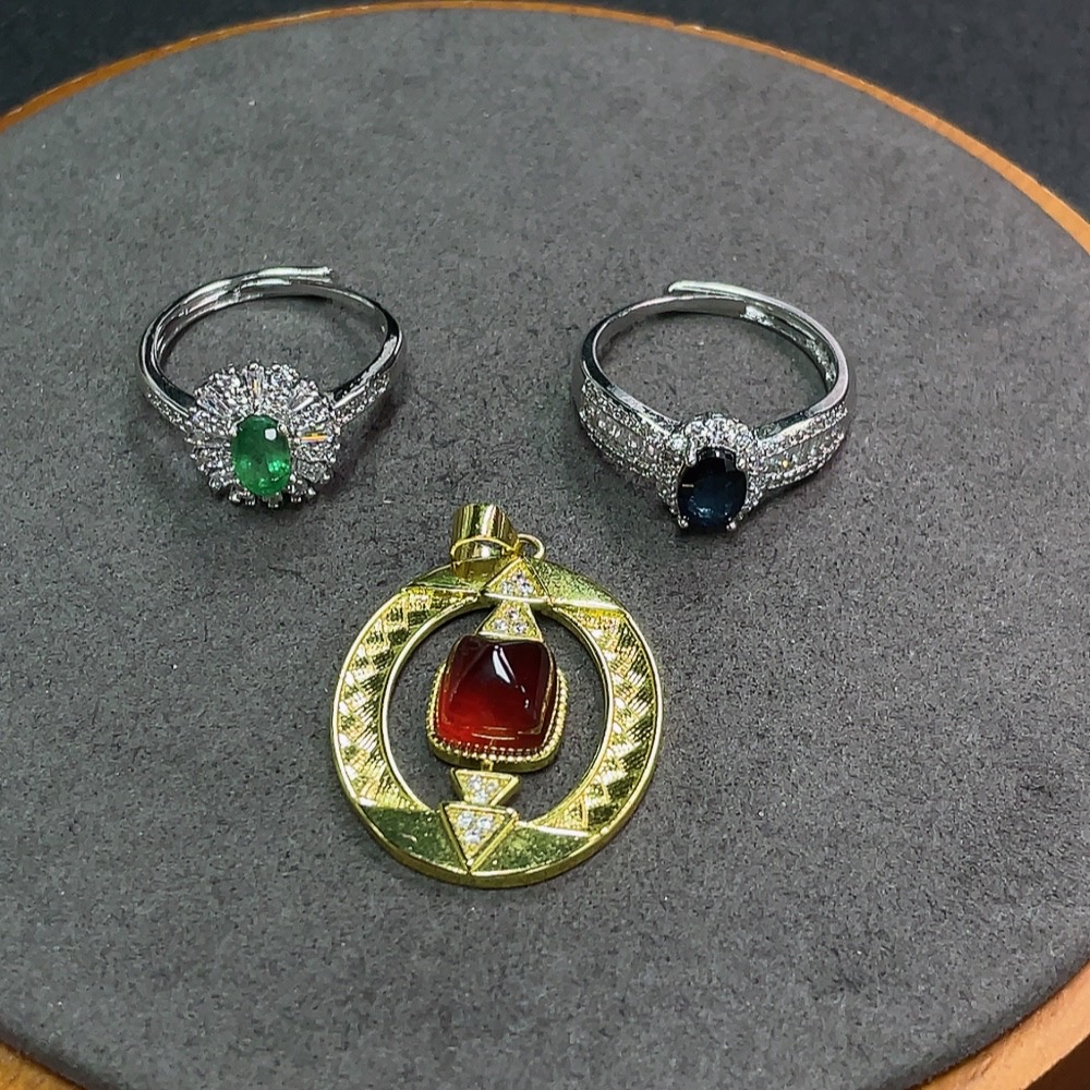 Garnet + Sapphire + Emerald (Clarity Enhanced) Jewelry Non-Gold Total Weight Approx. 9.33g Sell as a Lot