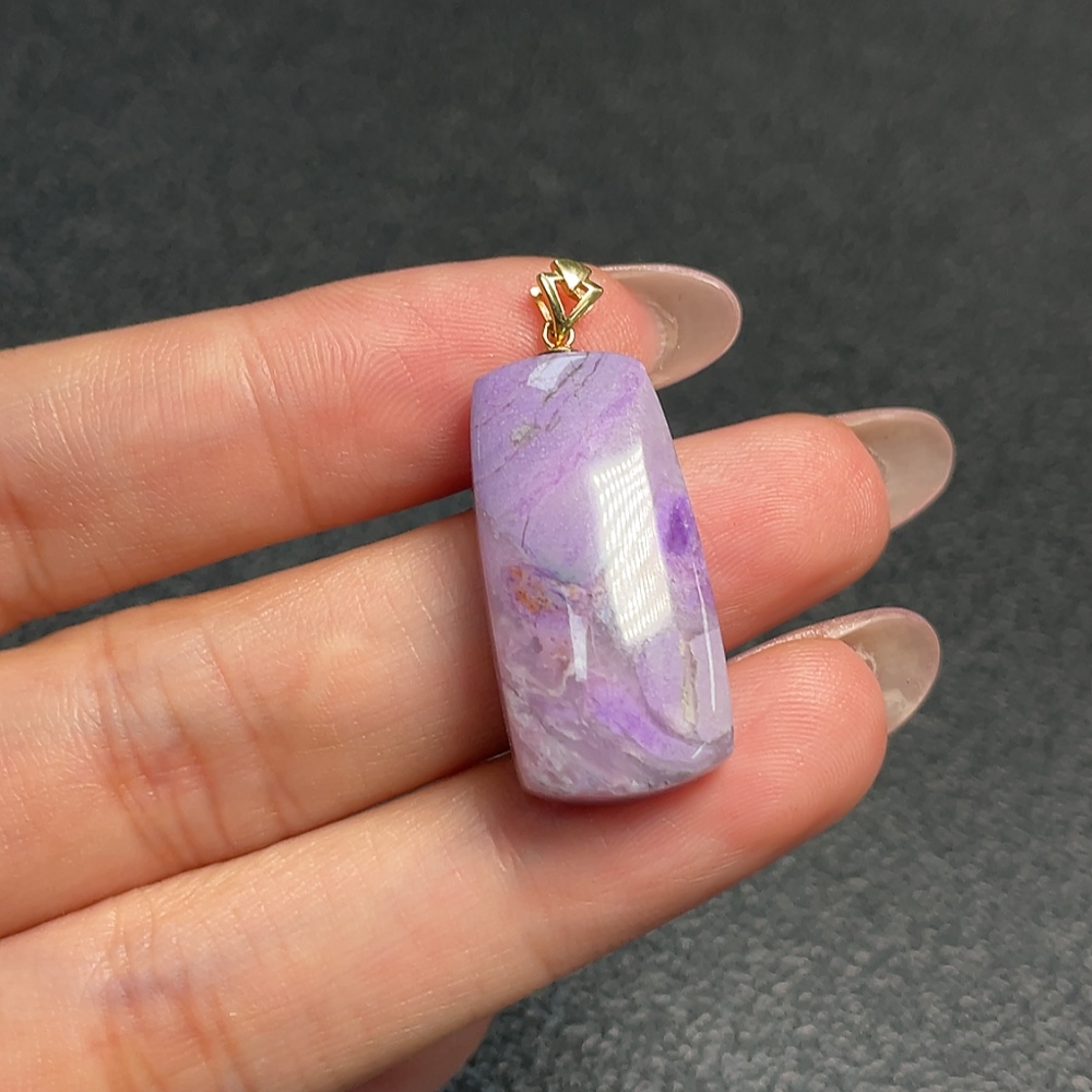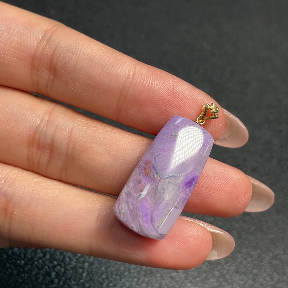 18K Gold Sugilite Pendant Only This Purple Containing Other Mineral Components Total Weight Approximately 4.89g