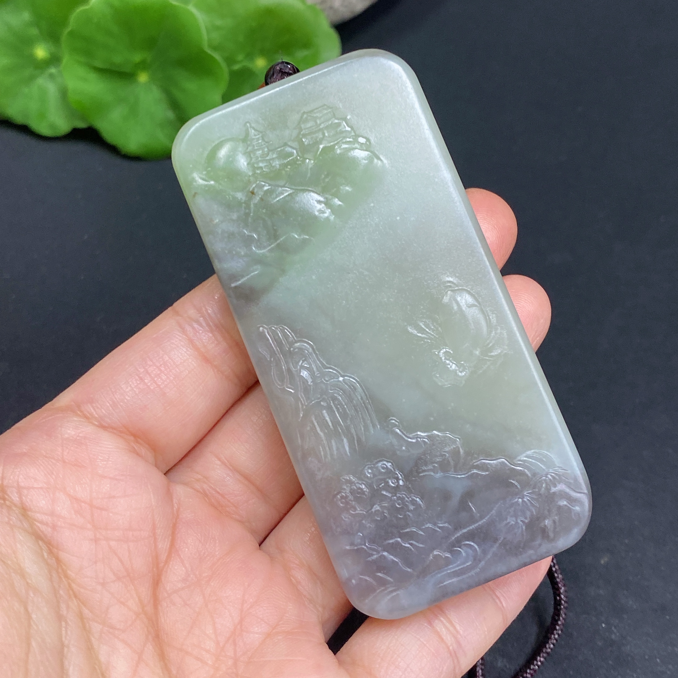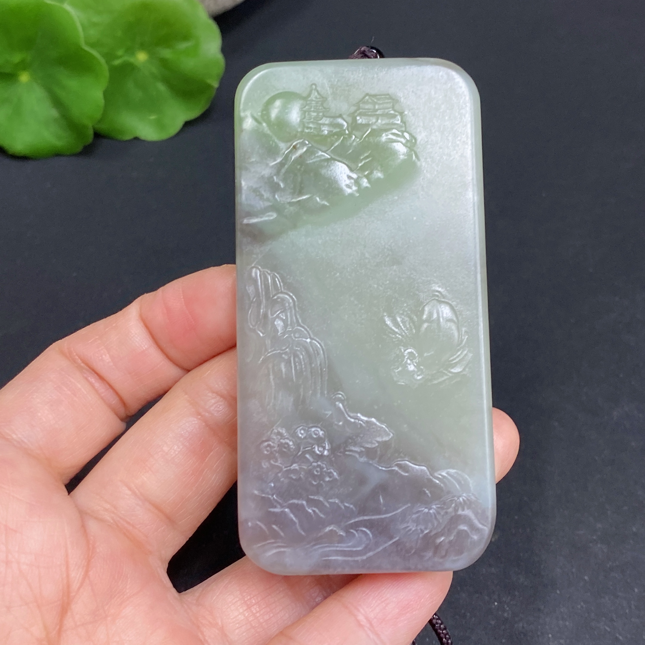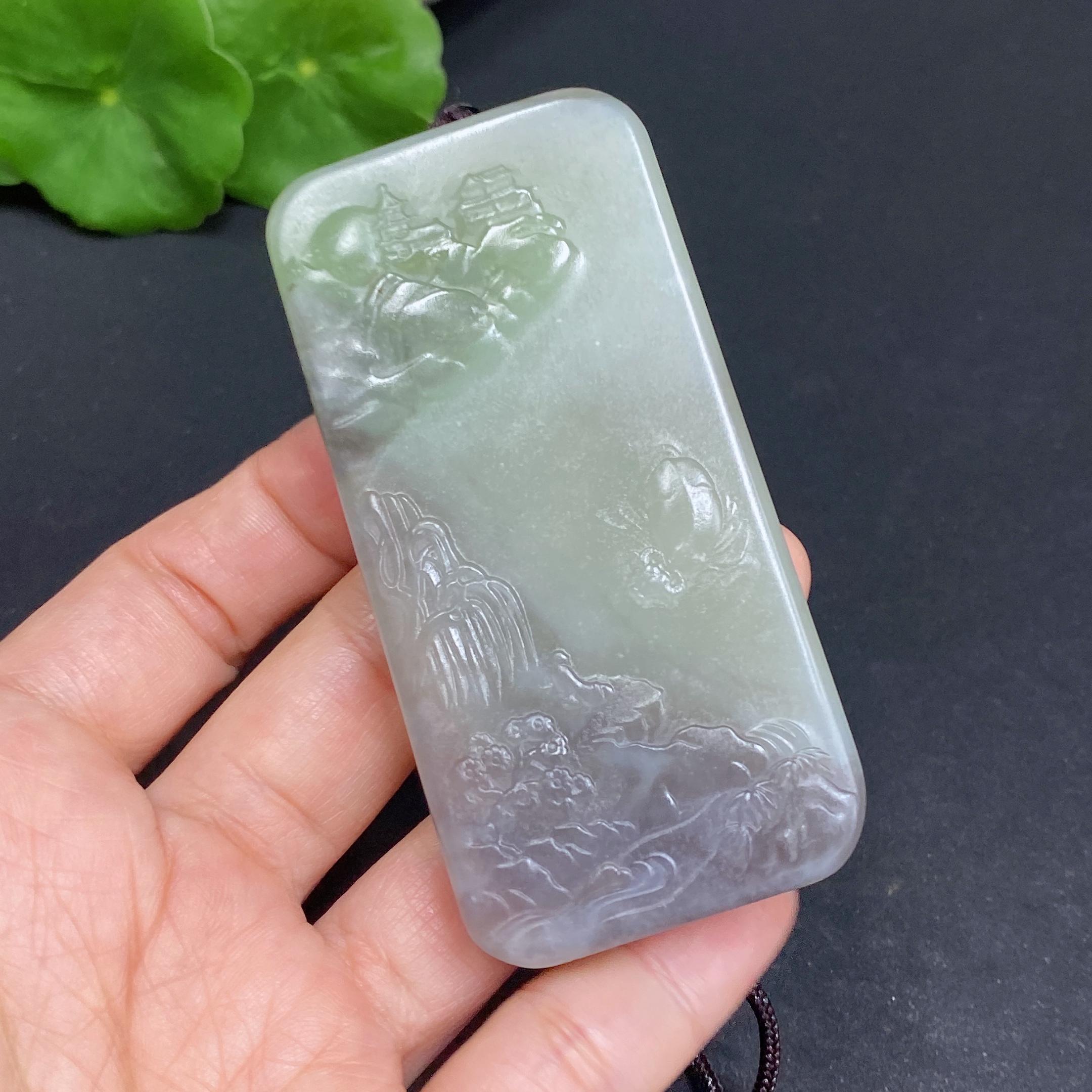 Hetian Jade Pendant - Landscape Plaque, Total Weight (Including Rope): 78.3g
