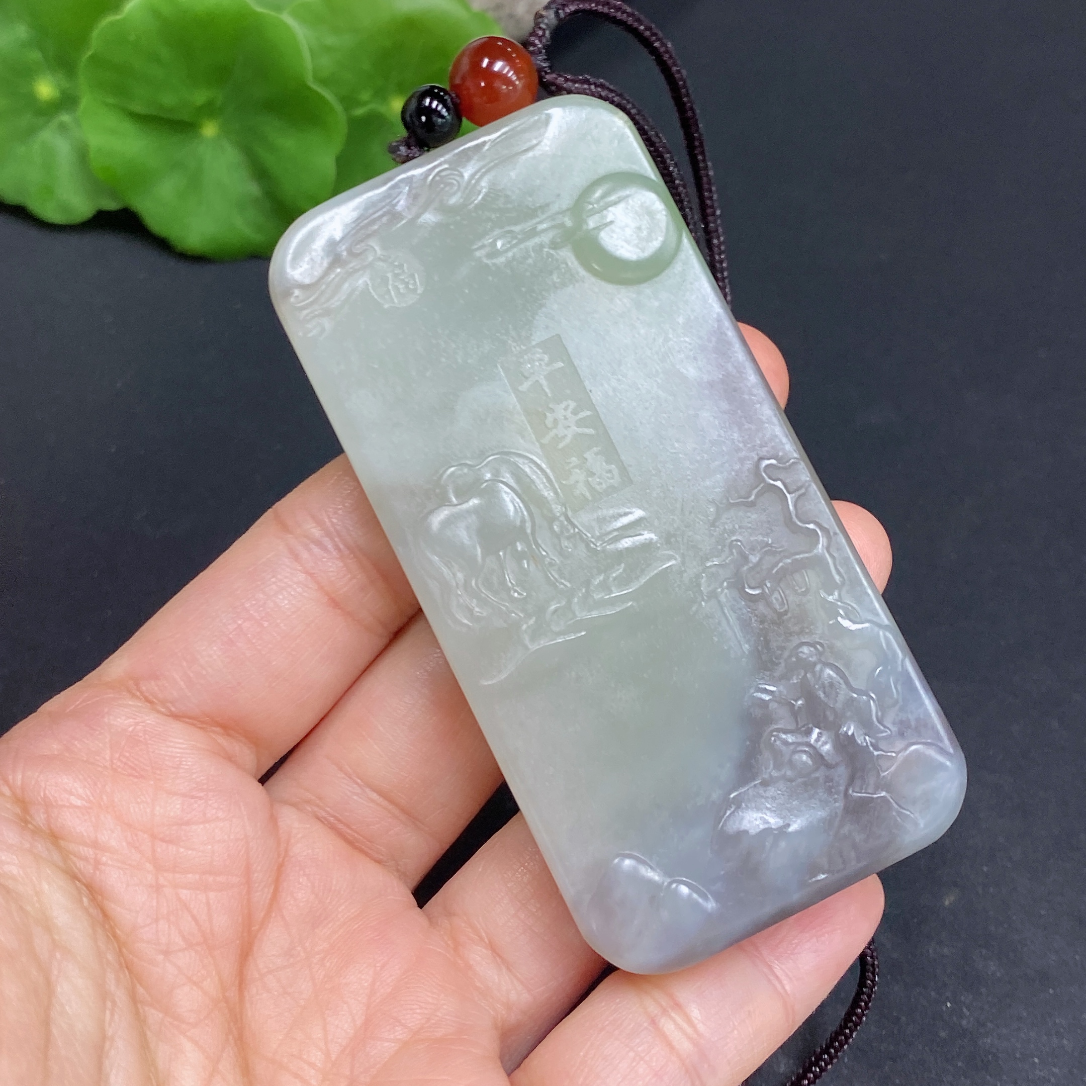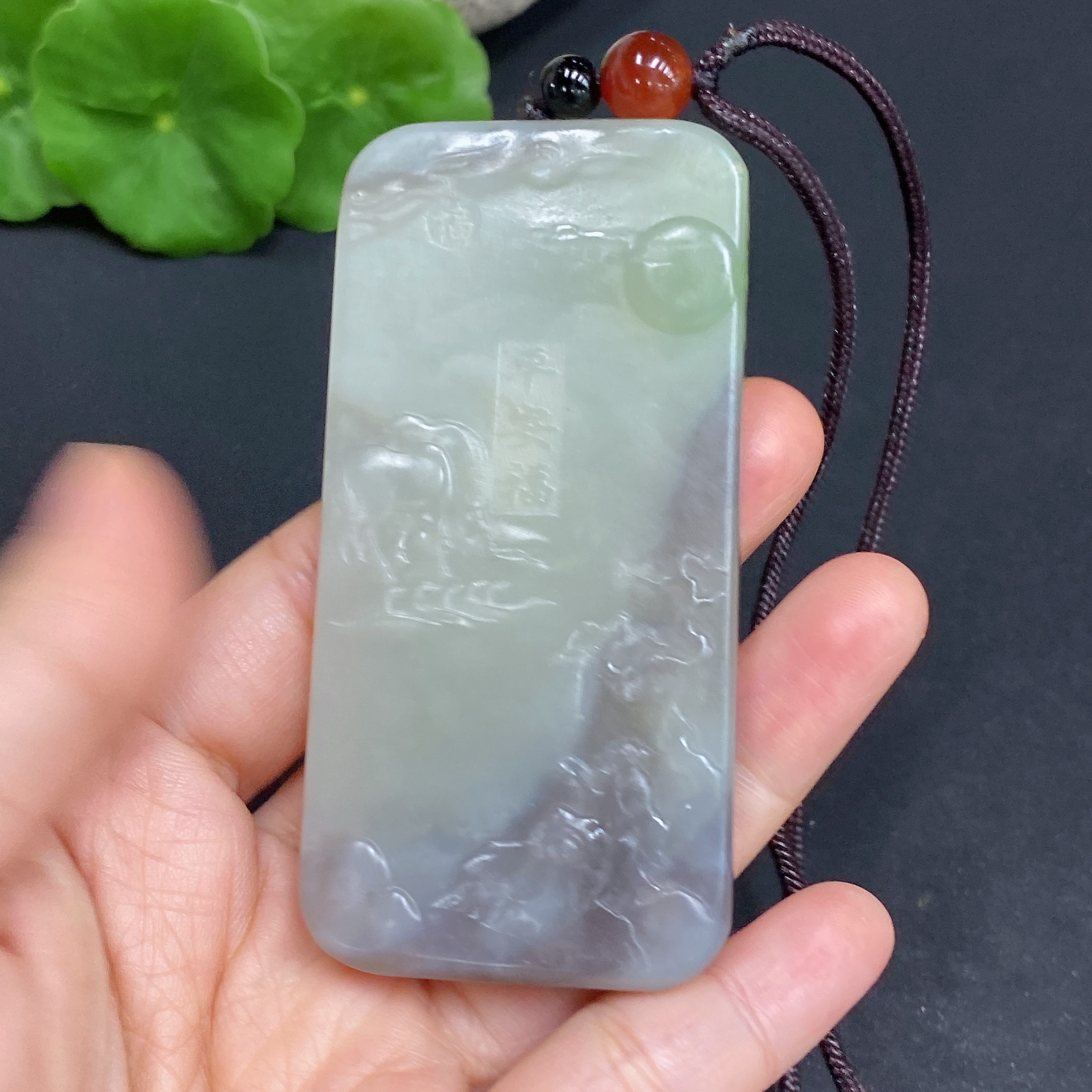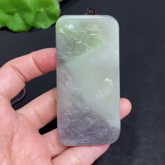 Hetian Jade Pendant - Landscape Plaque, Total Weight (Including Rope): 78.3g