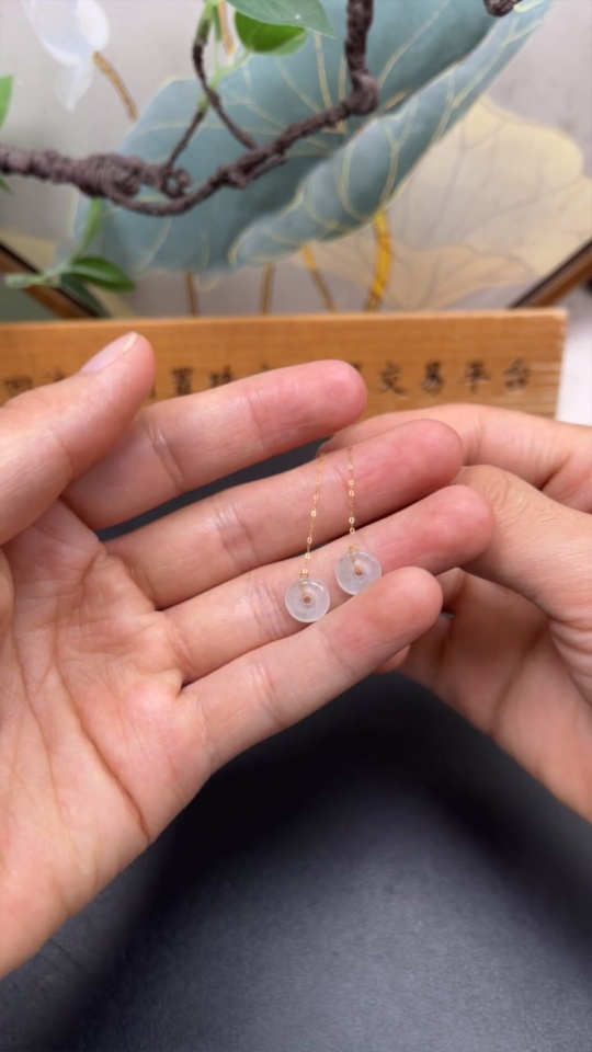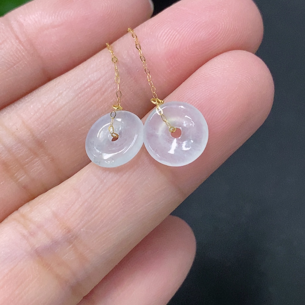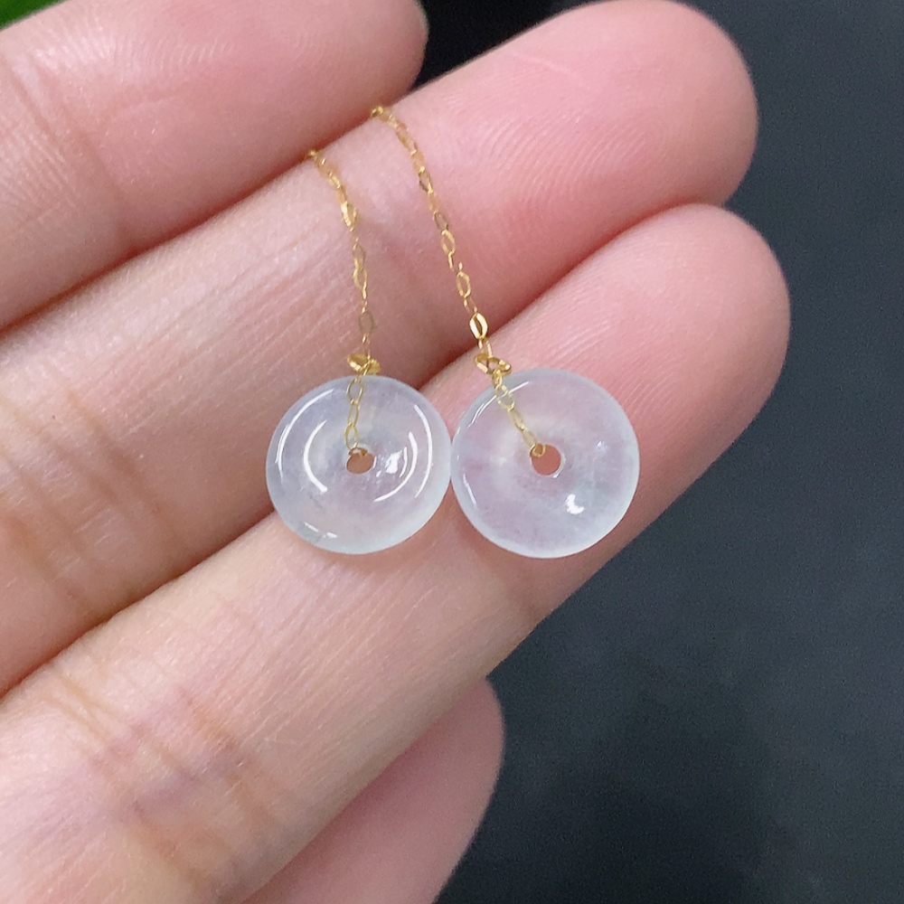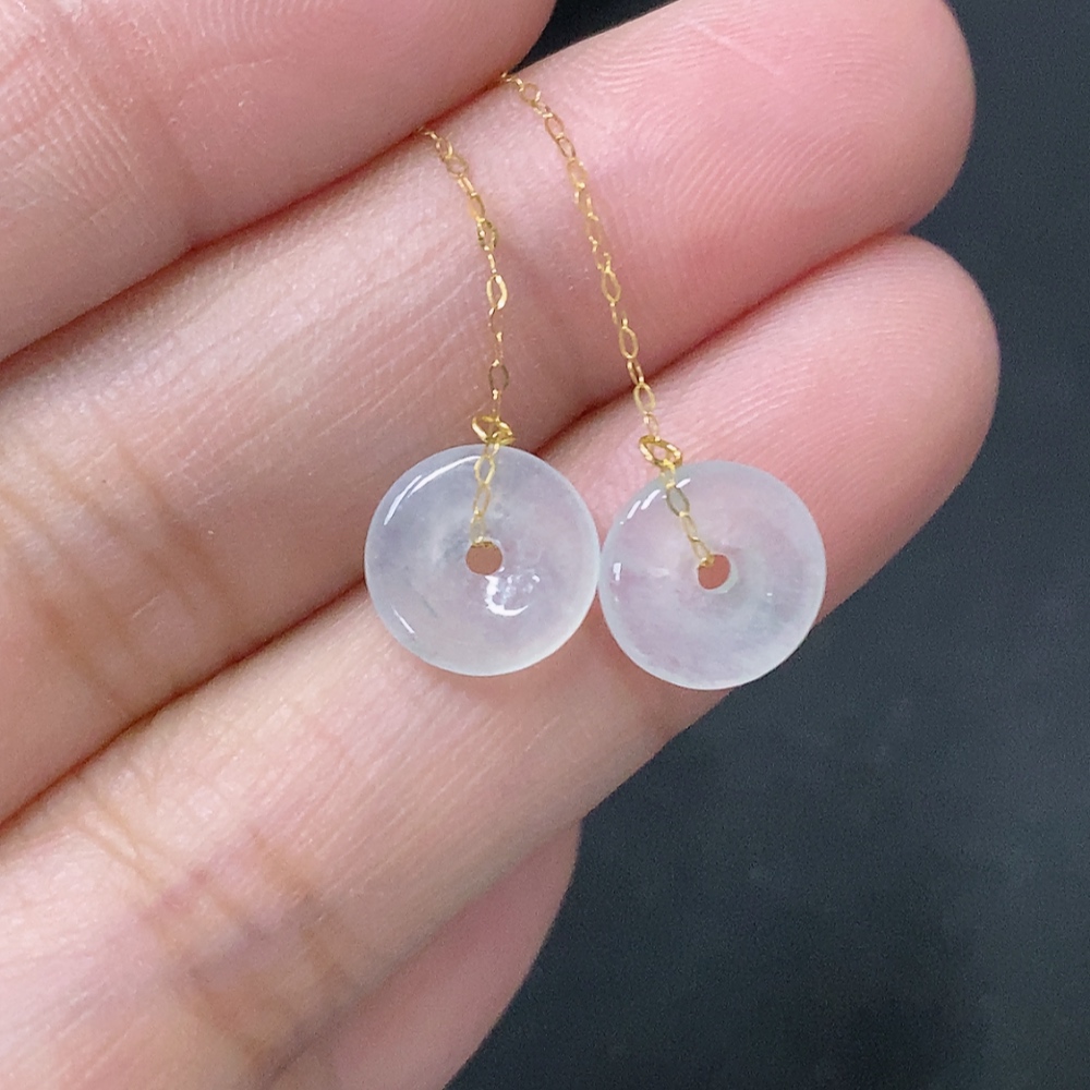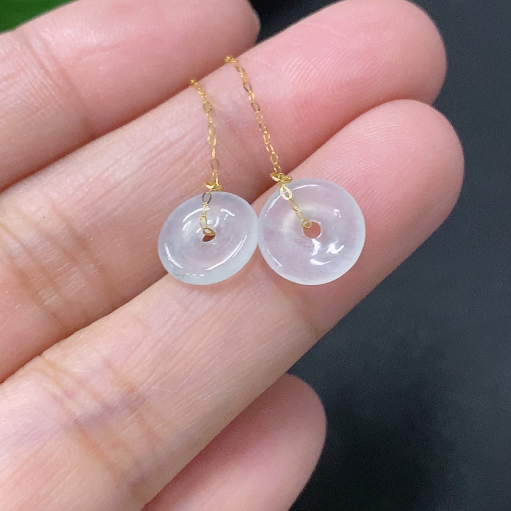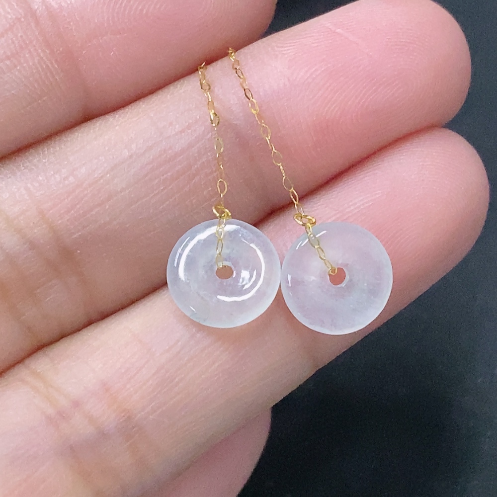 Jadeite Earrings with 18k Gold Setting, Total Weight Approx. 0.77g