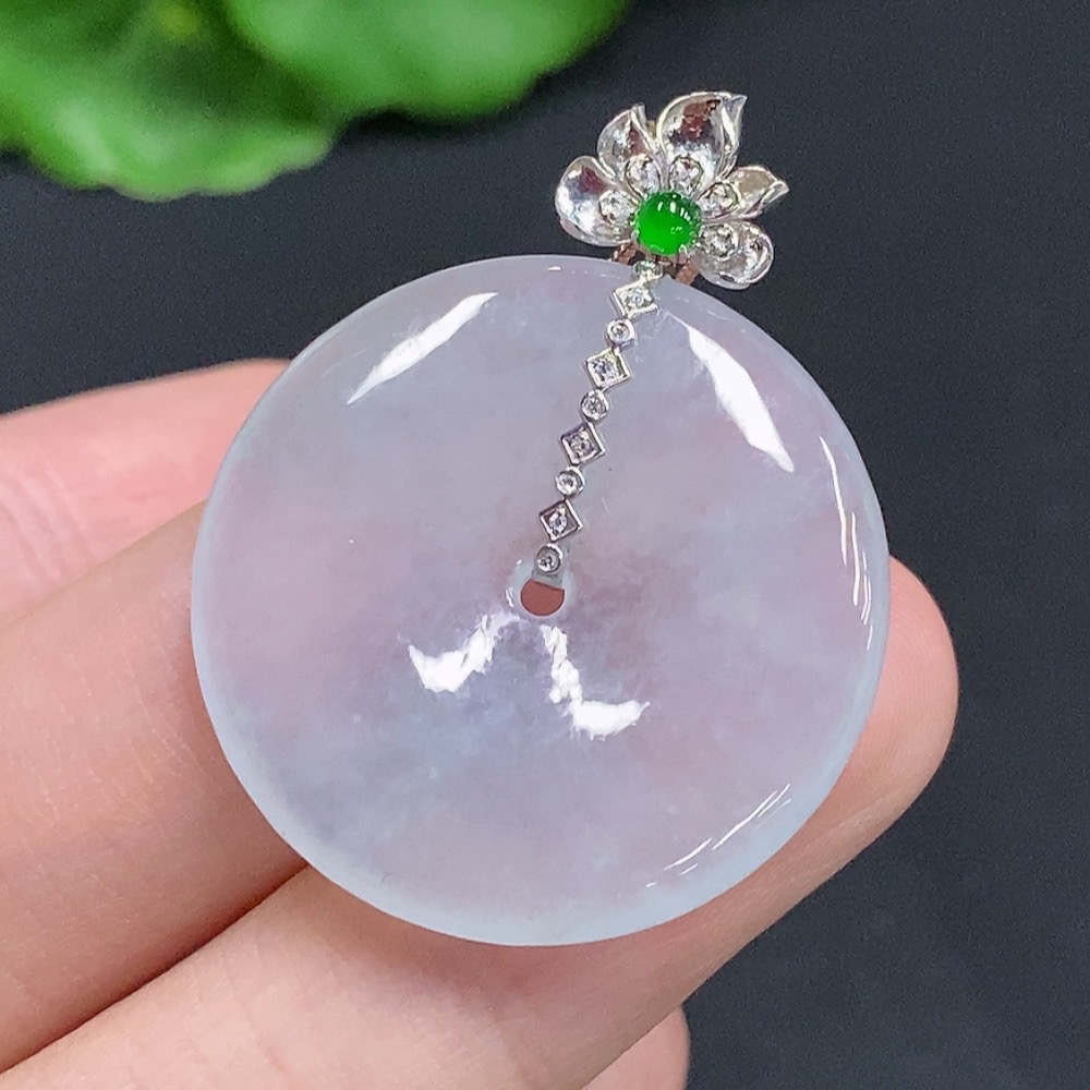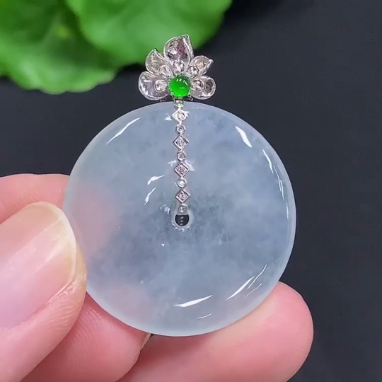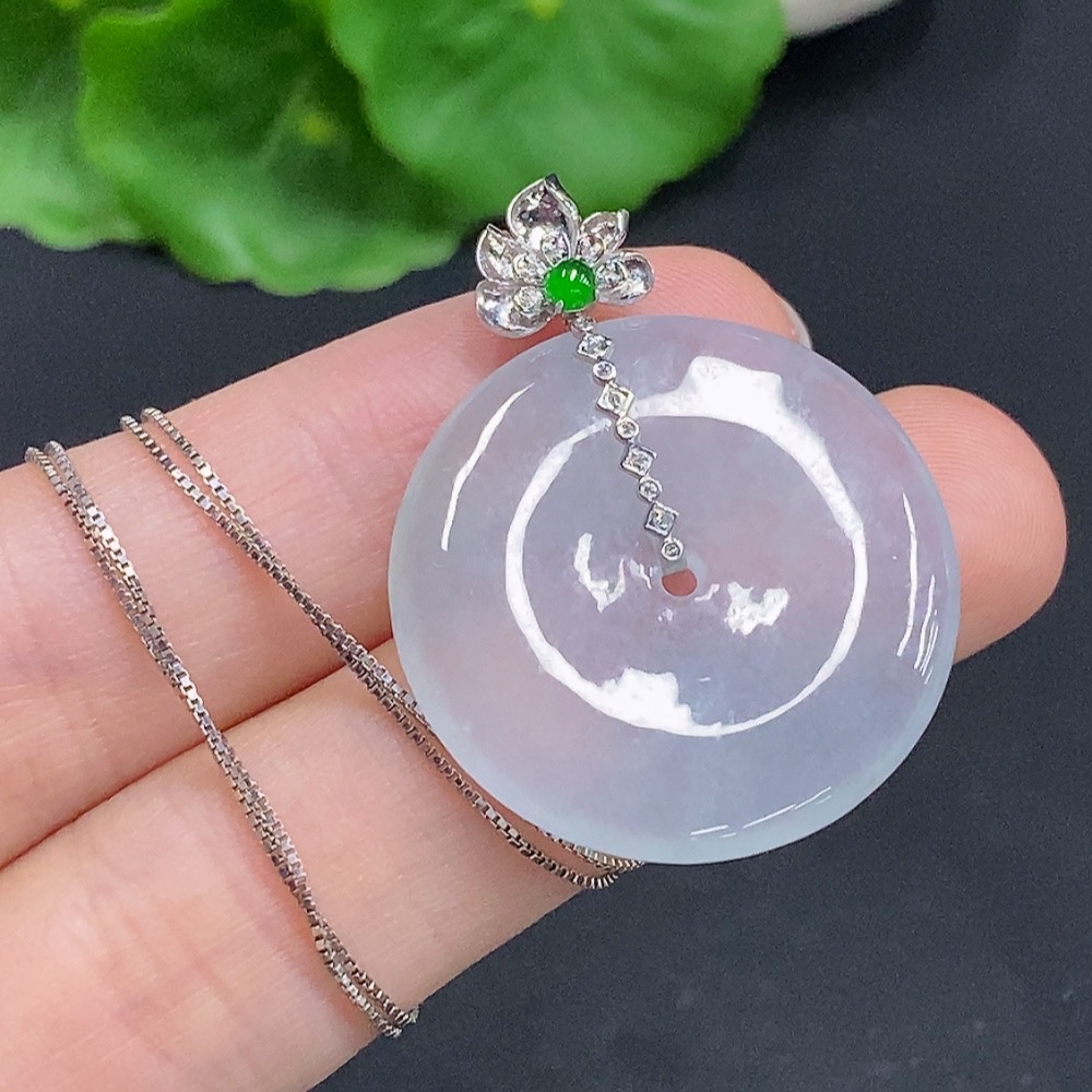 Jadeite Safety Buckle with 18K Gold Clasp Non-Gold-Inlaid Chain Total Weight Approx. 7.4g (Excluding Chain) Diamond Accents