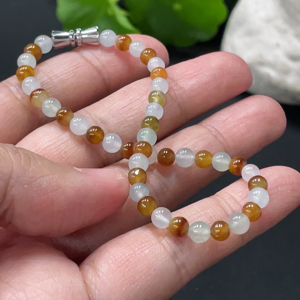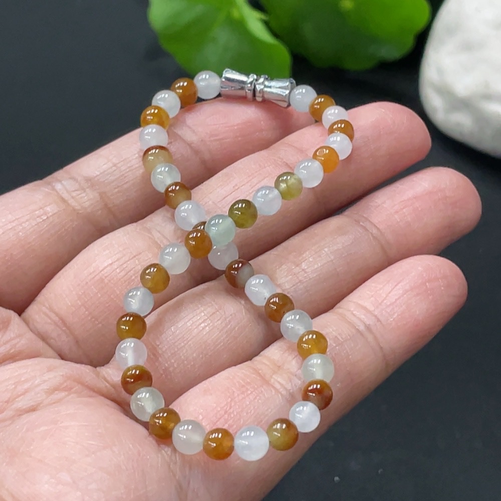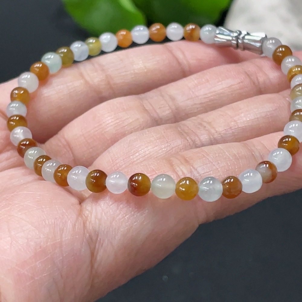 JadeiteBead Bracelet Approx. 4.1mm Non-gold Clasp Total Weight ~6.43g Color Origin Undetermined