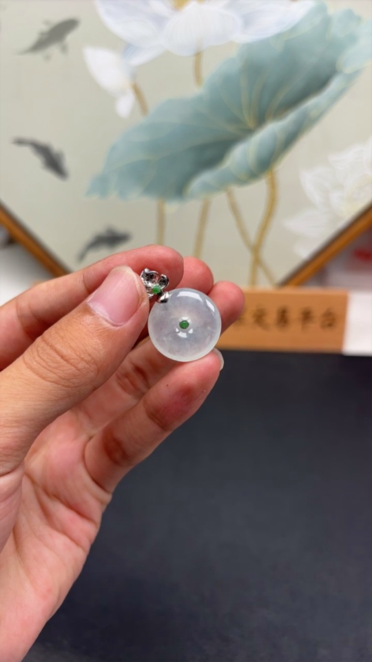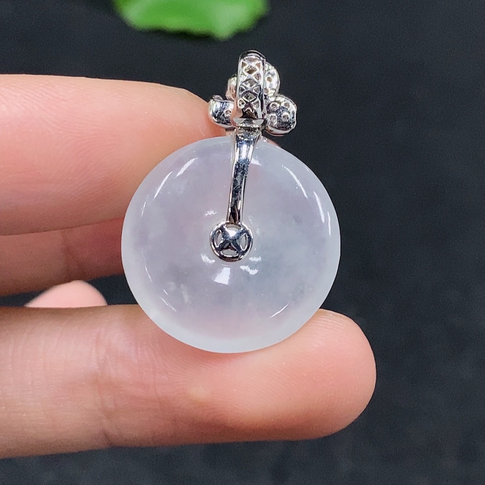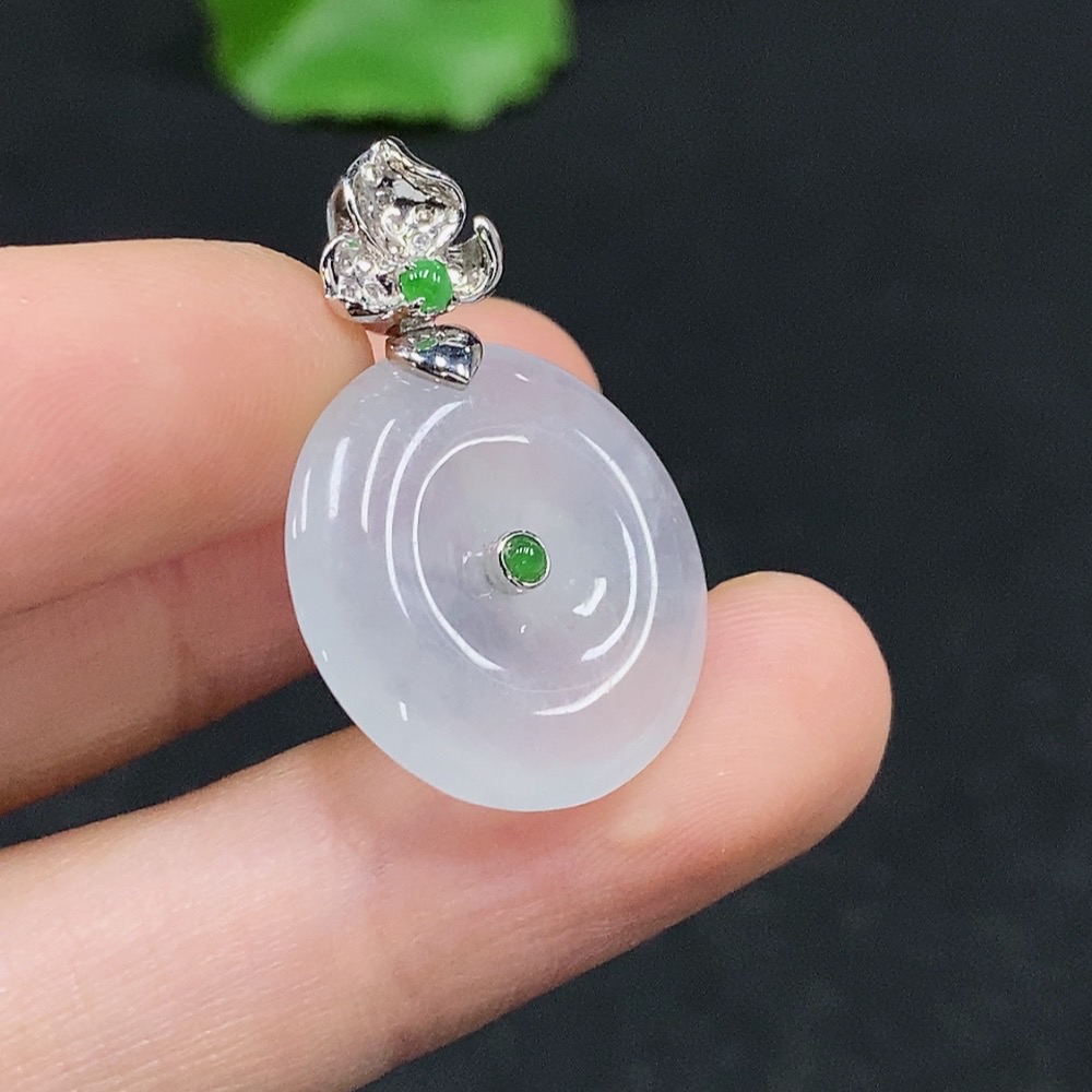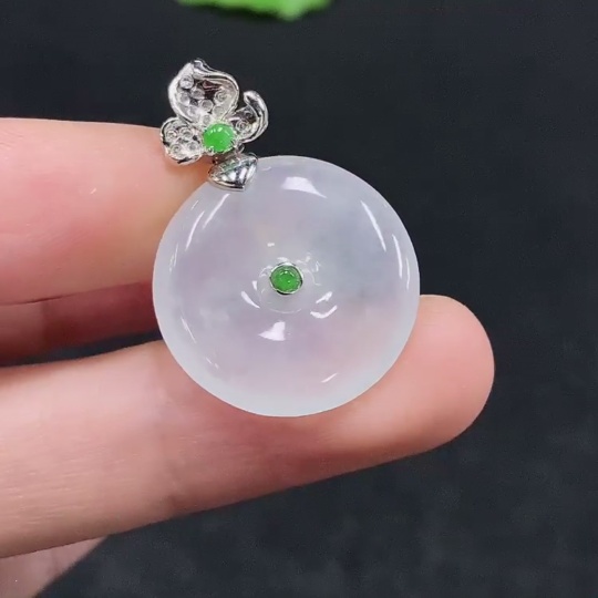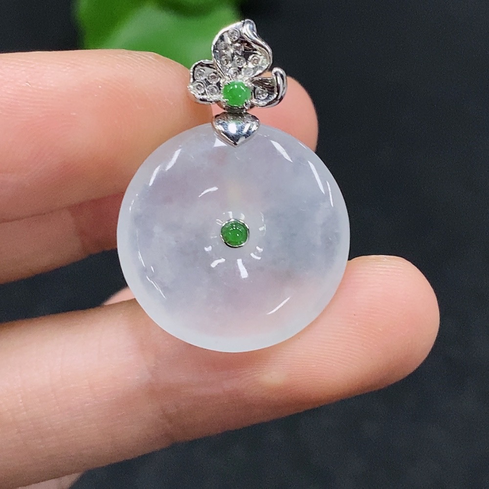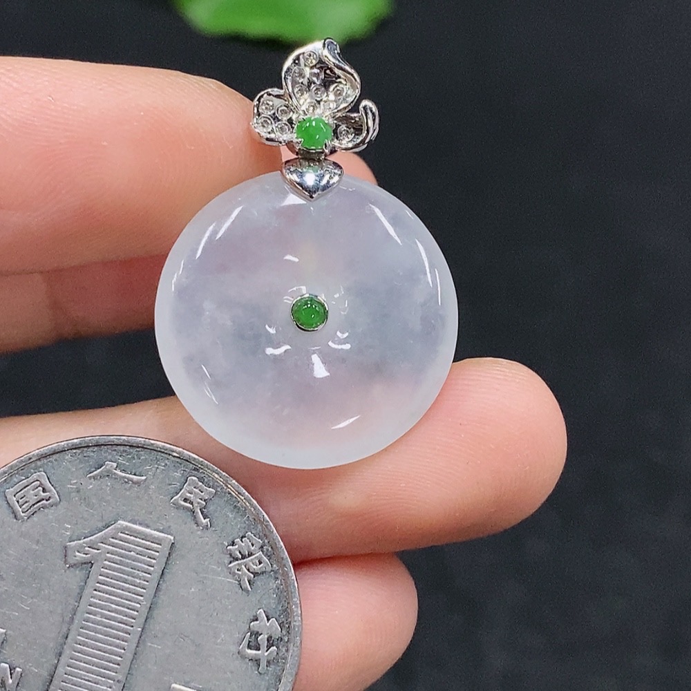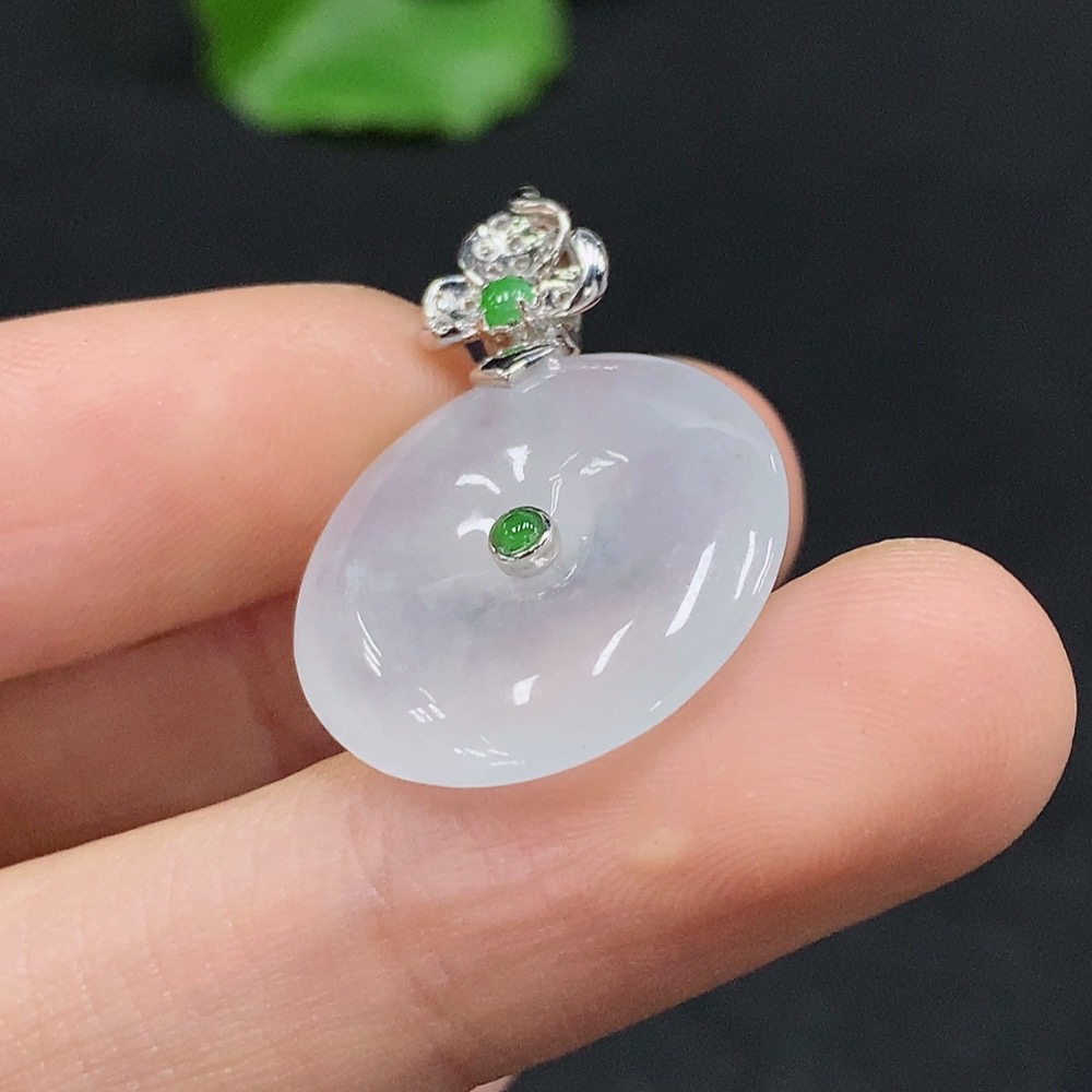 Jadeite Safety Pendant with 18K Gold, Total Weight Approx. 4g, Diamond Accents