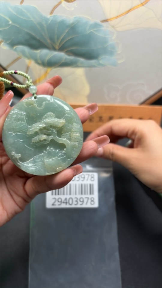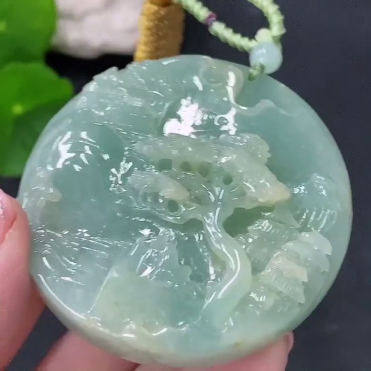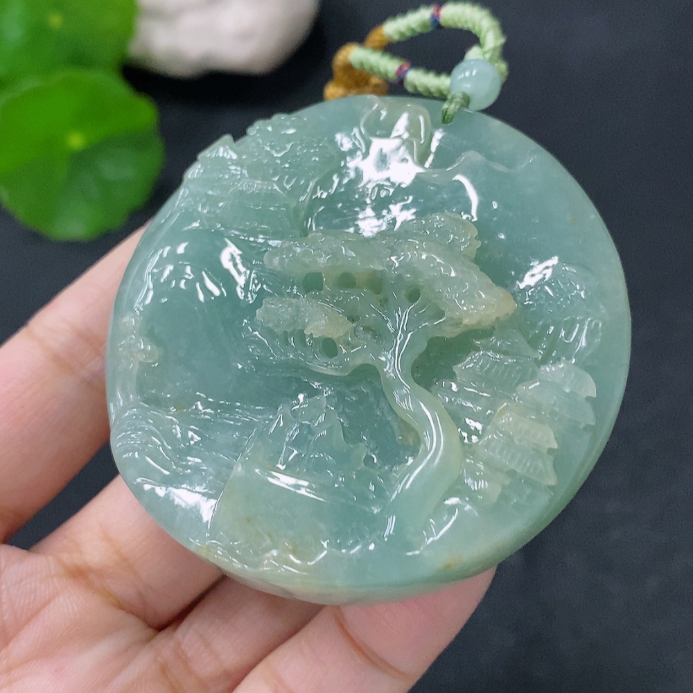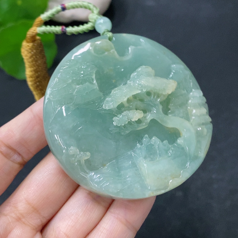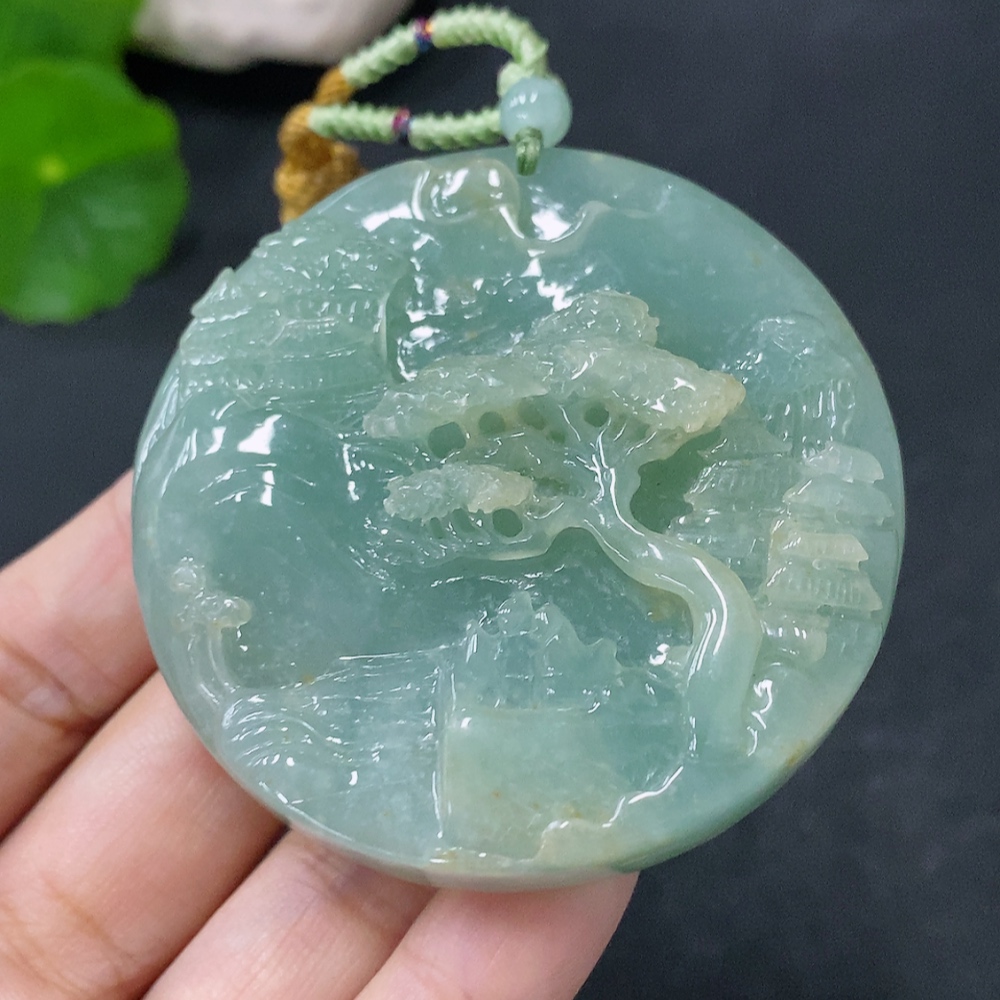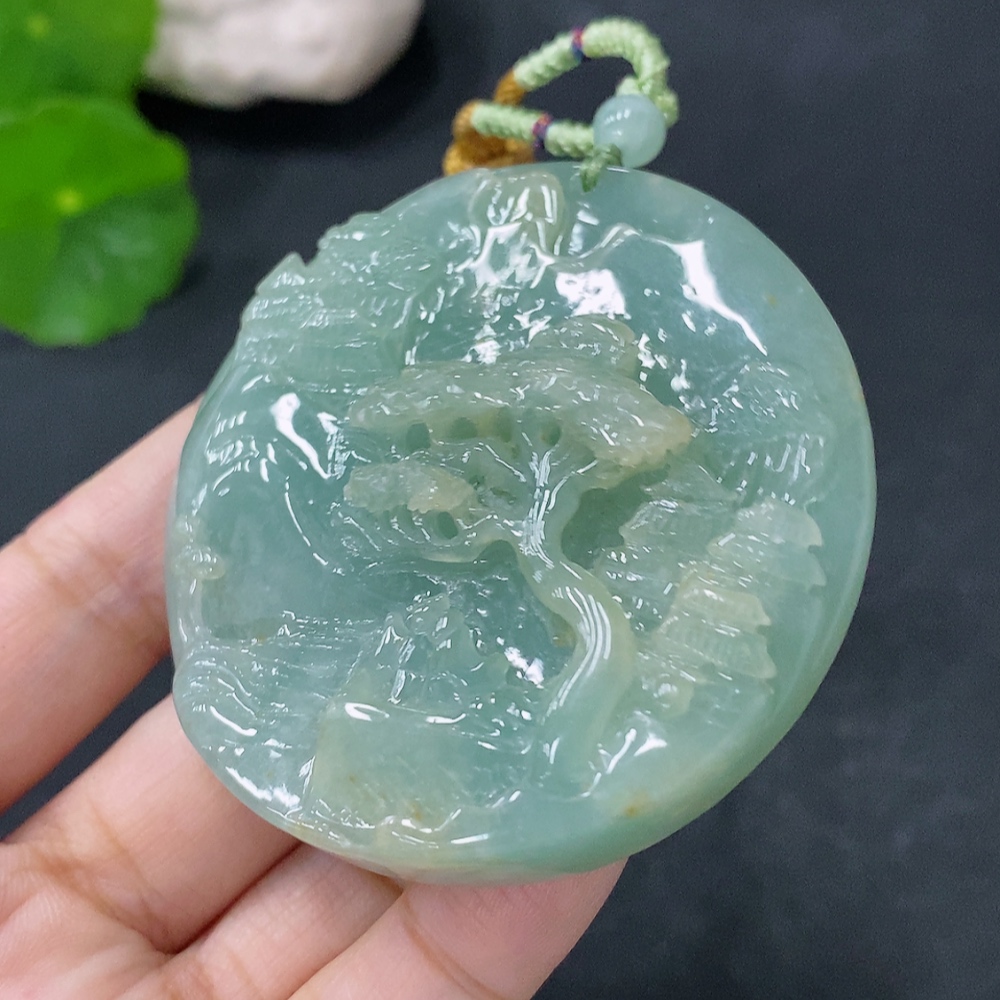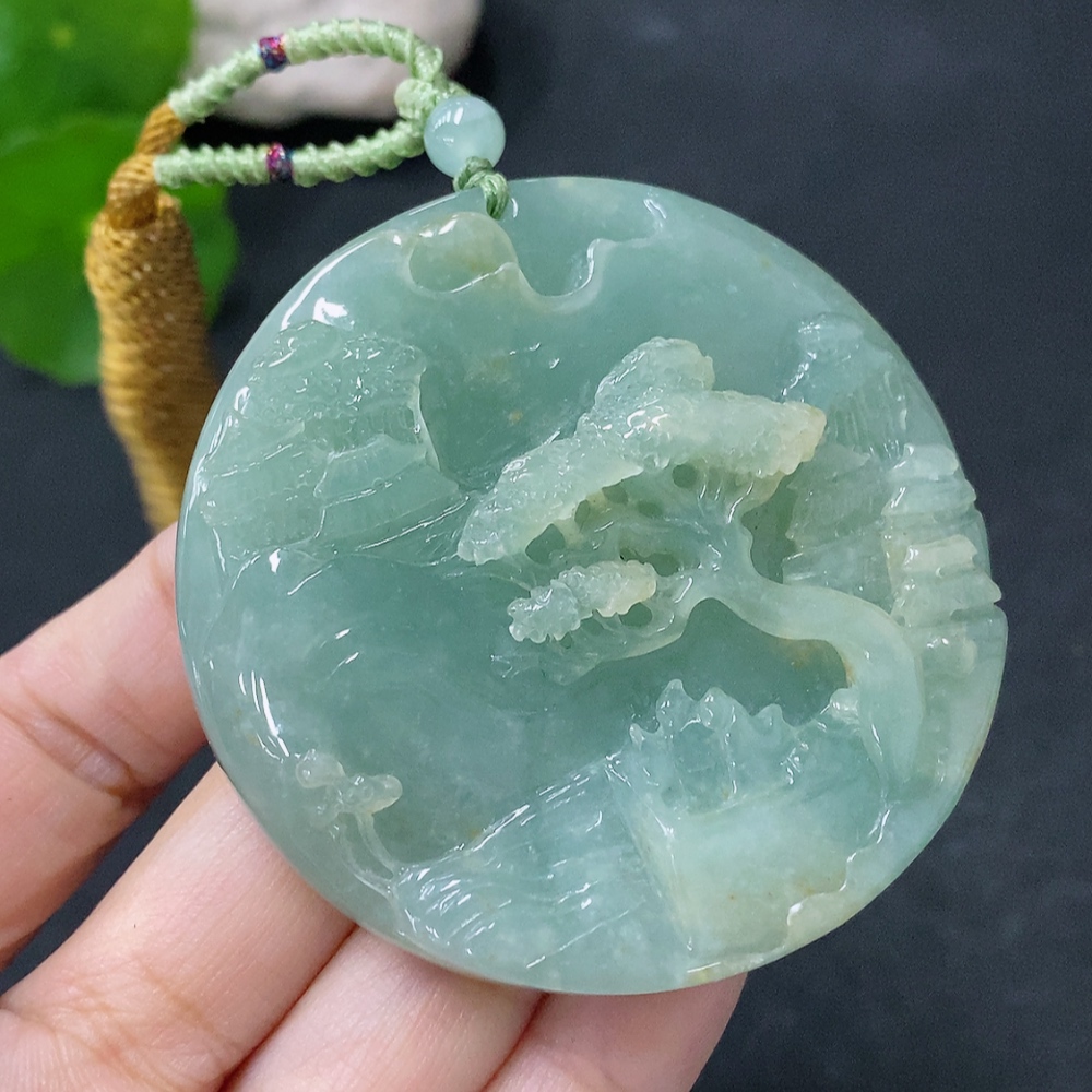 Jadeite Pendant Landscape Plaque Total Weight Including Rope 70.82g