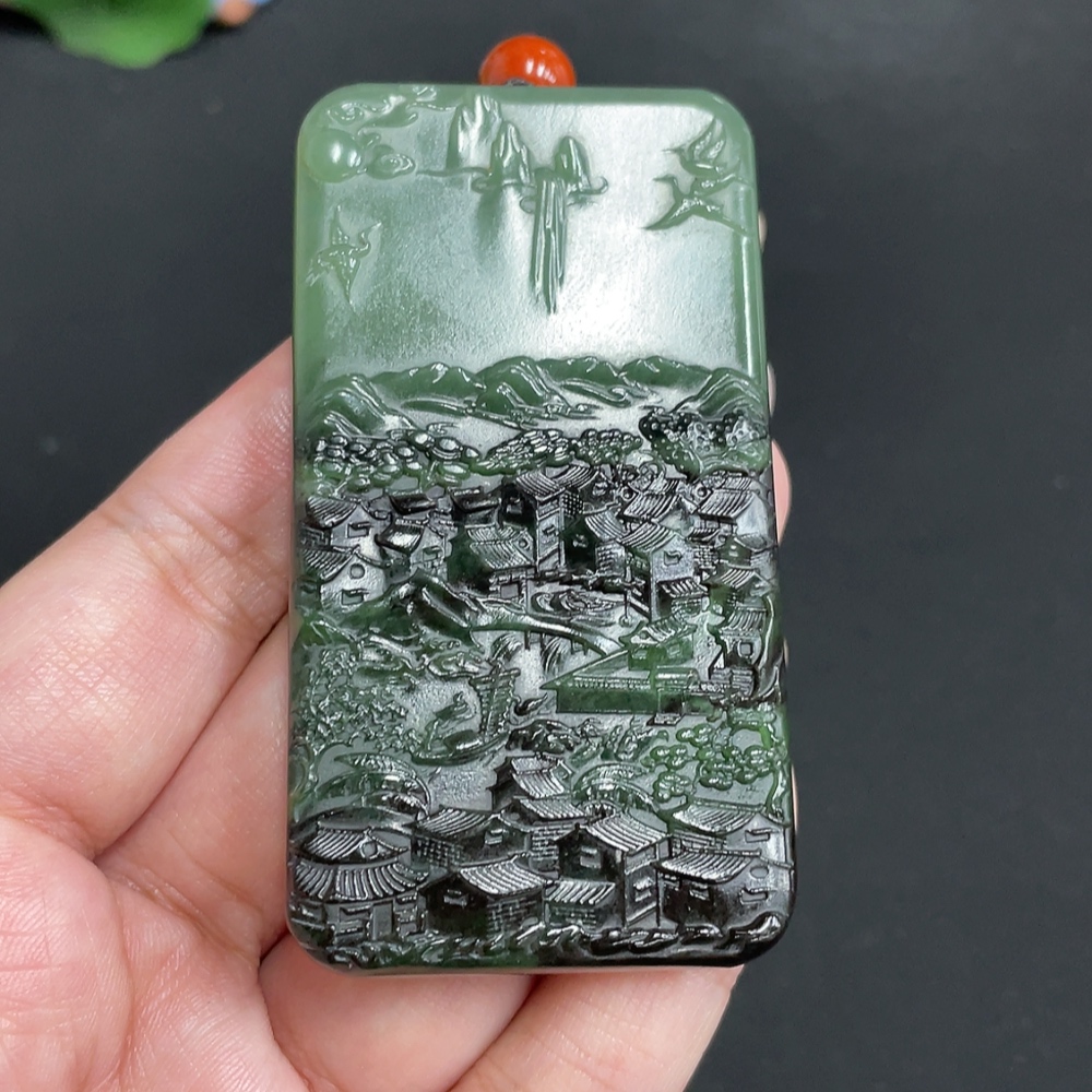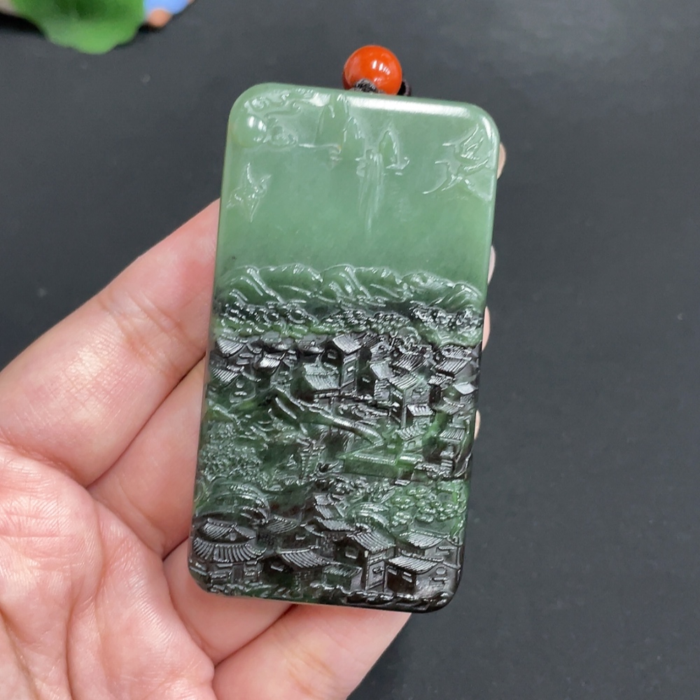 Hetian Jade Pendant Landscape Total Weight Approx. [with rope] 83.7g