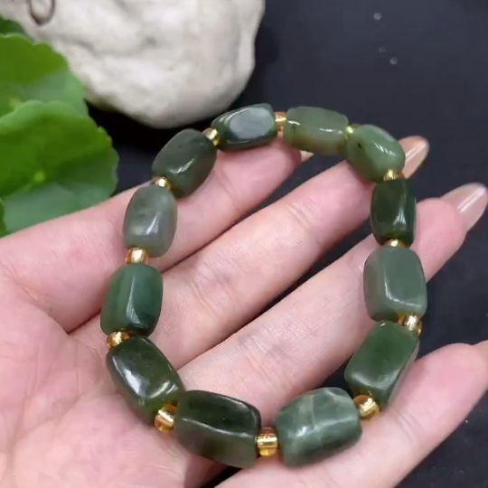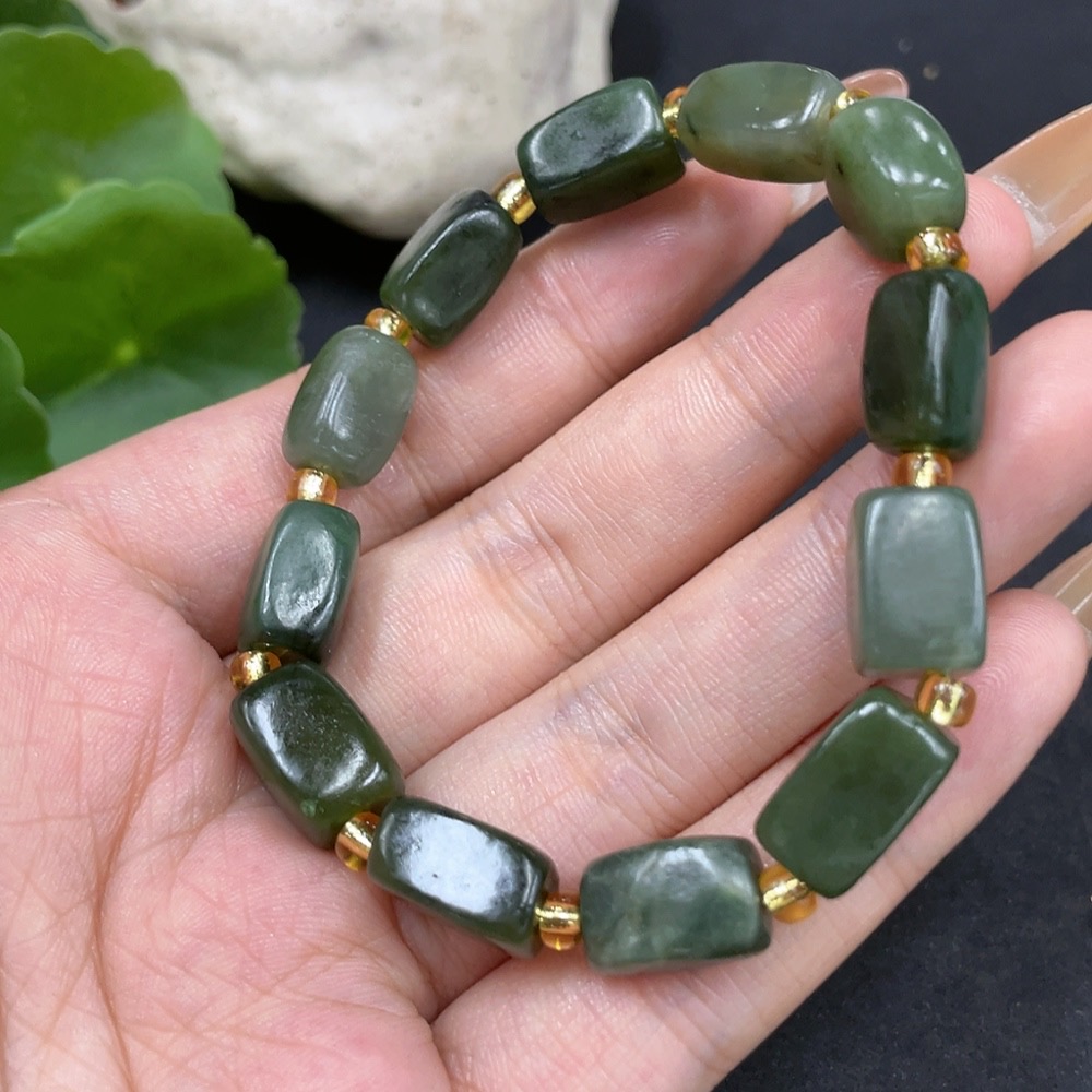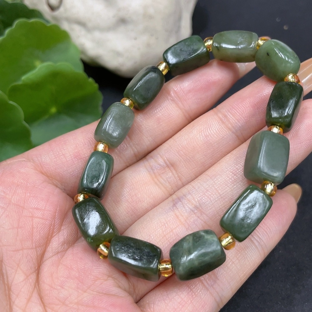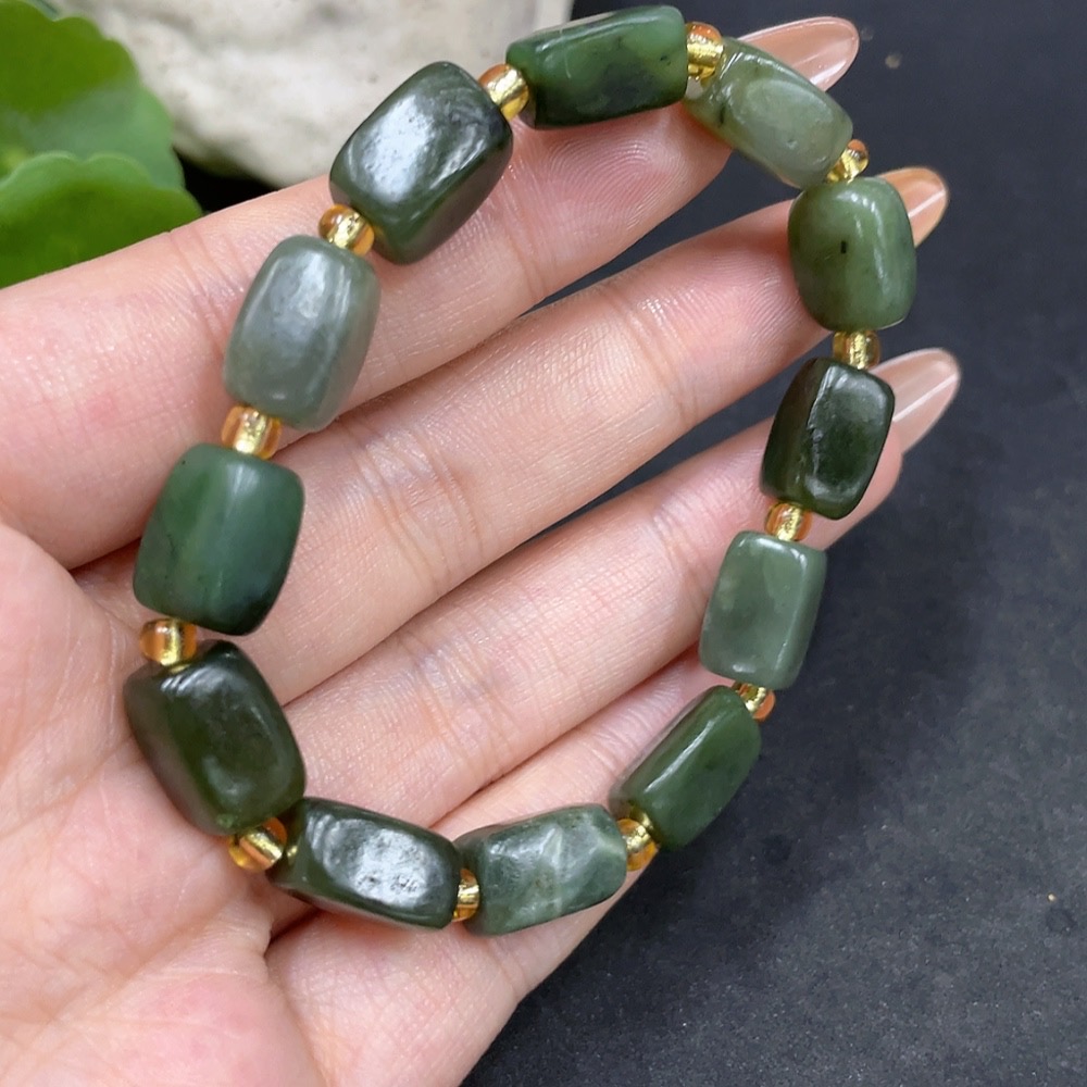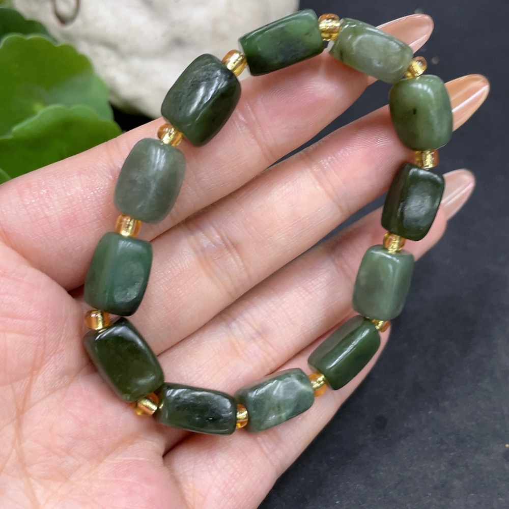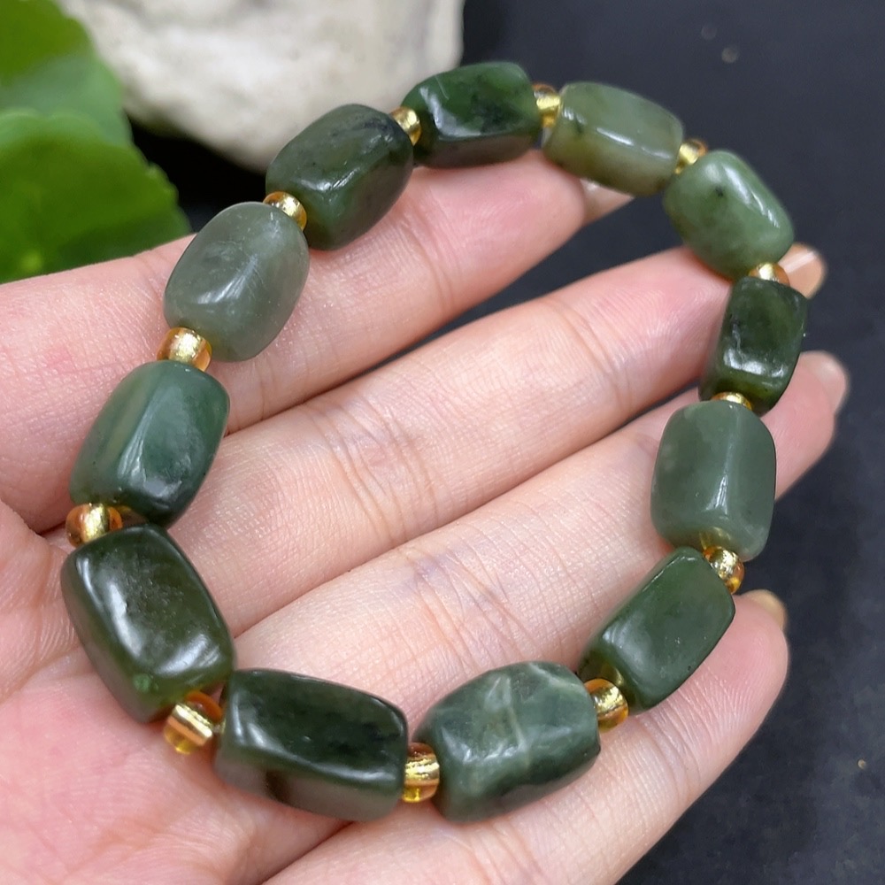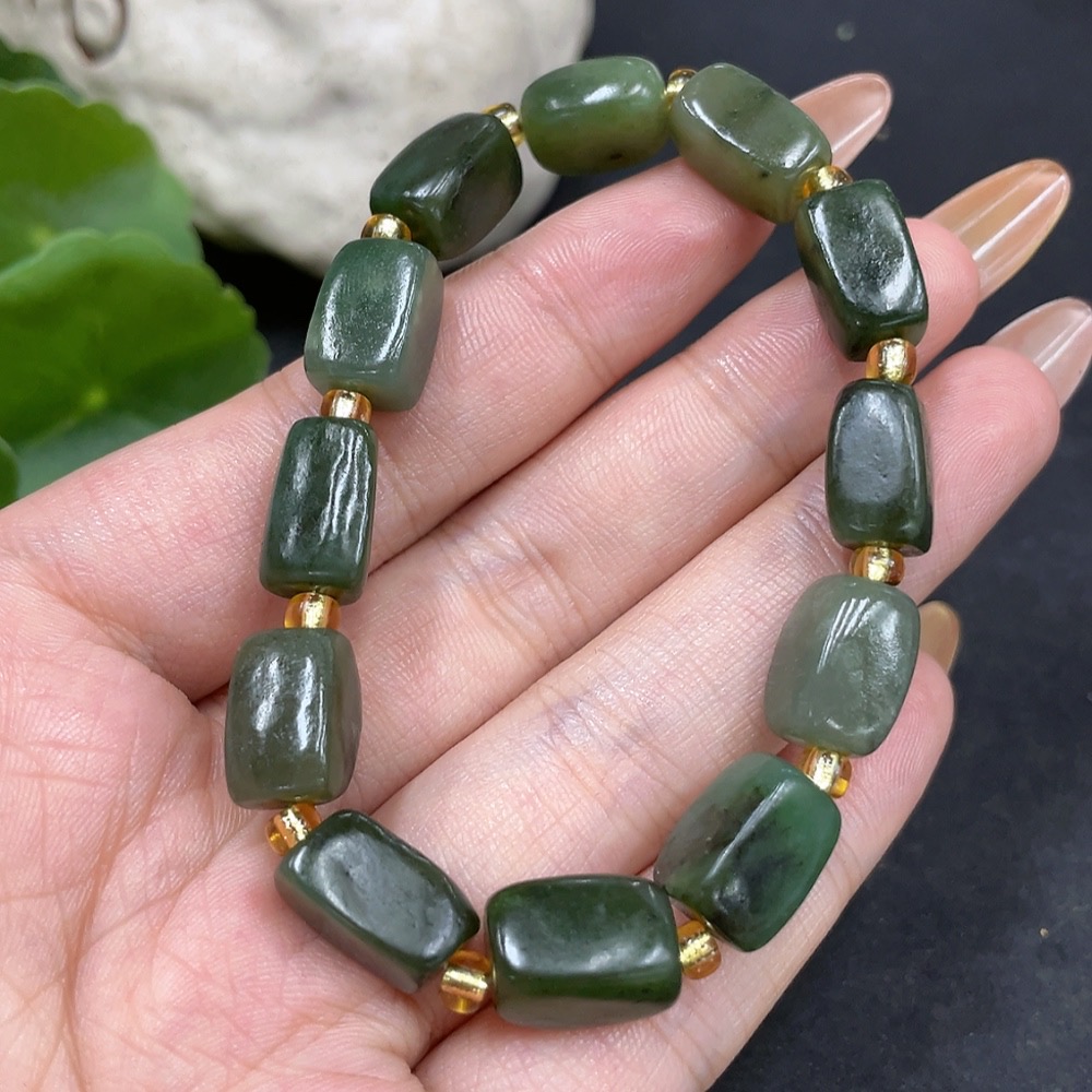 Hetian Jade Bead Bracelet with Non-Hetian Jade Beads, Total Weight Approx. 23.4g