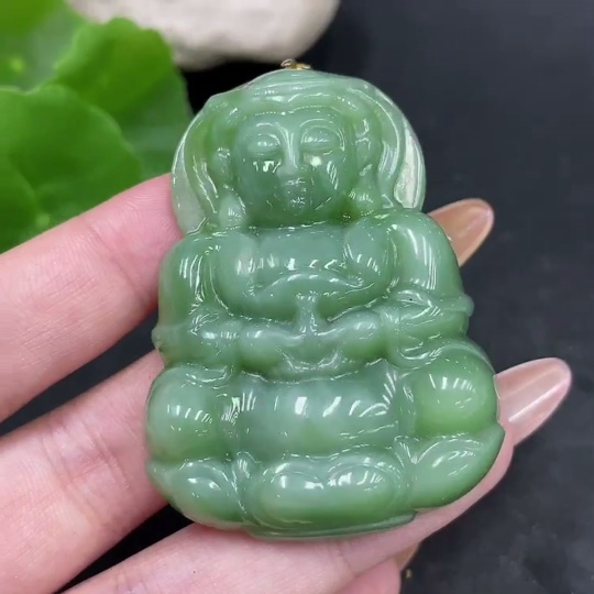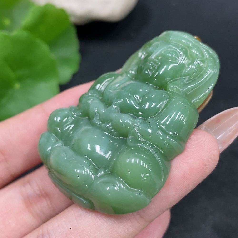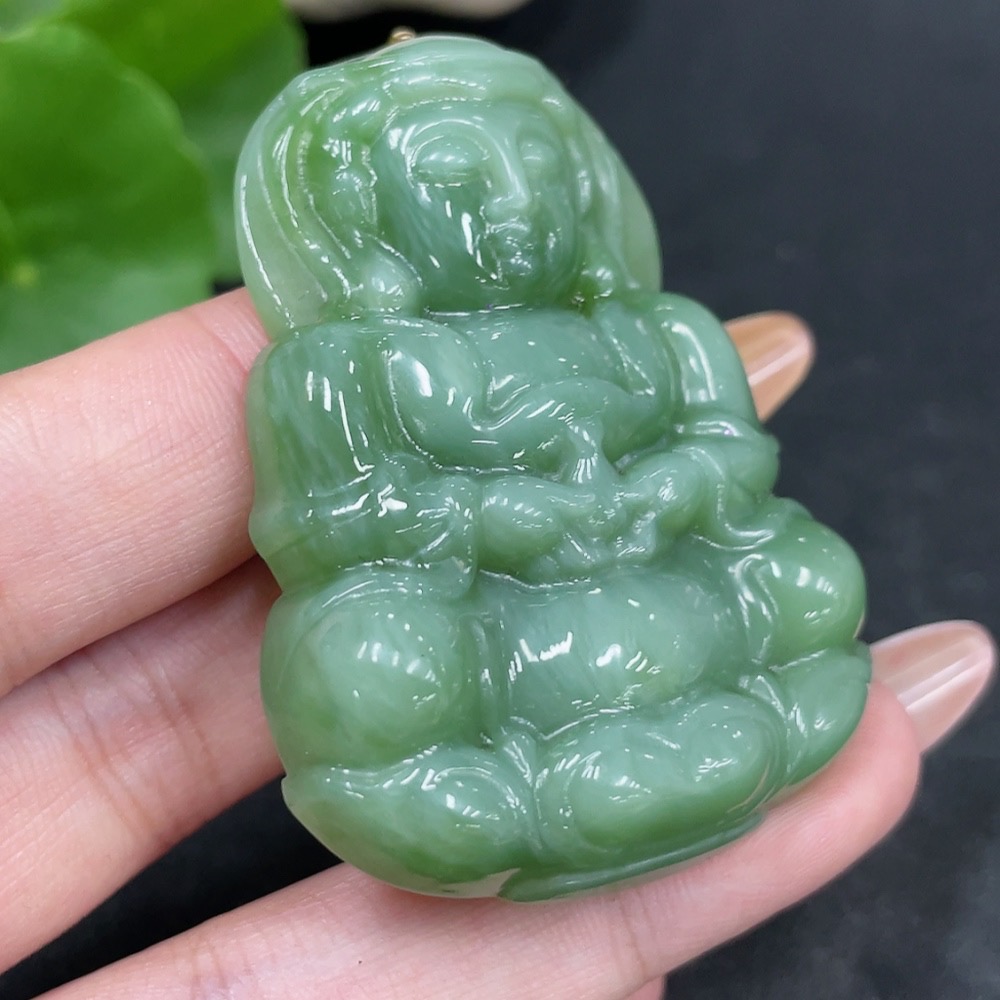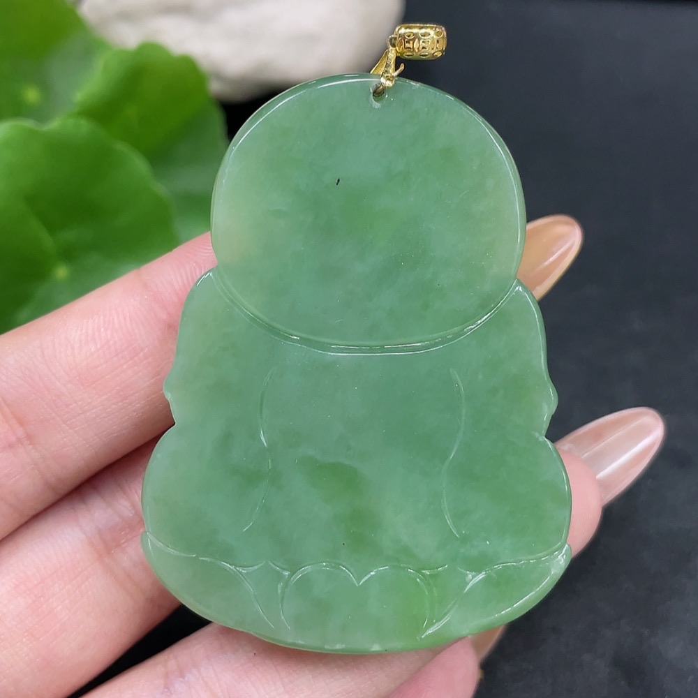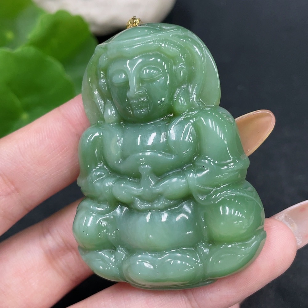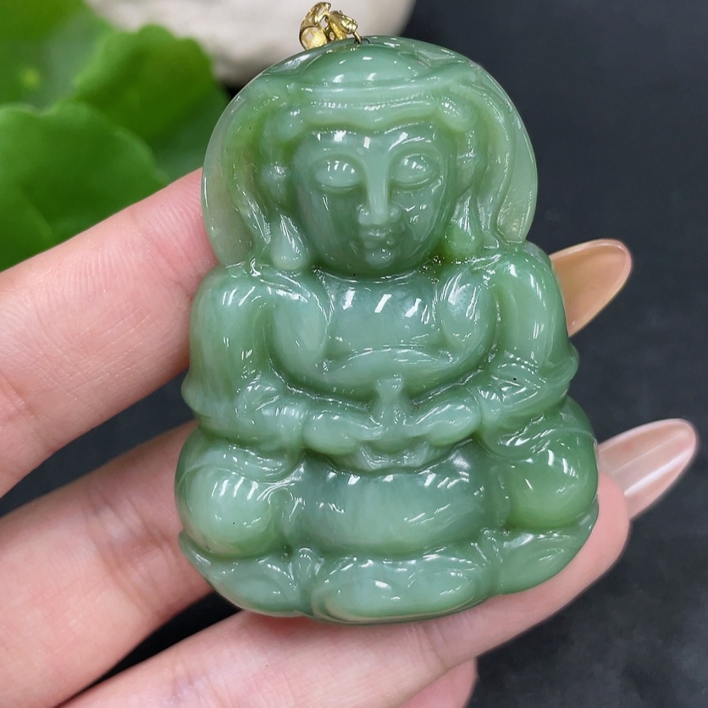 Hetian Jade Pendant Guanyin with 18K Gold Clasp, Total Weight Approx. 36g