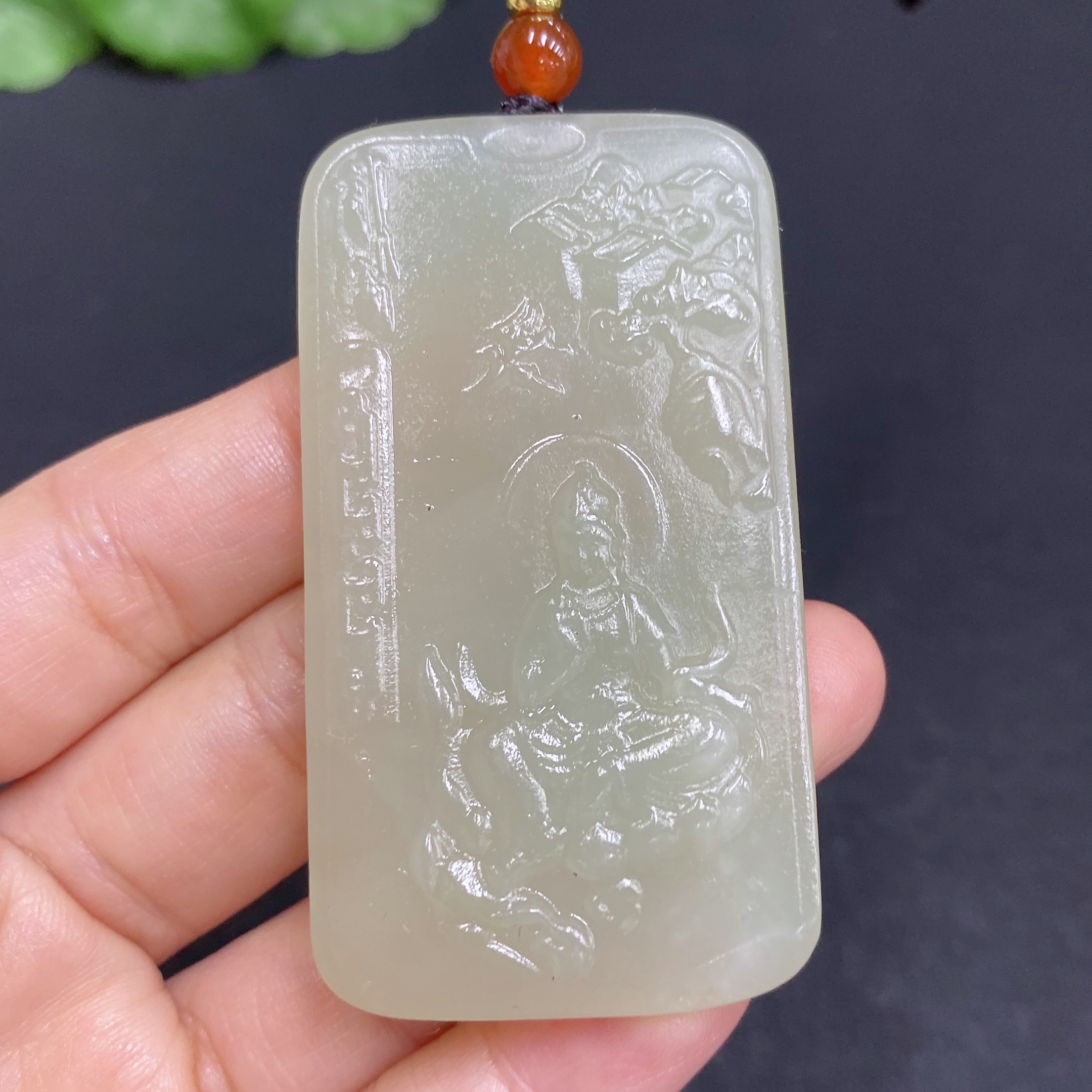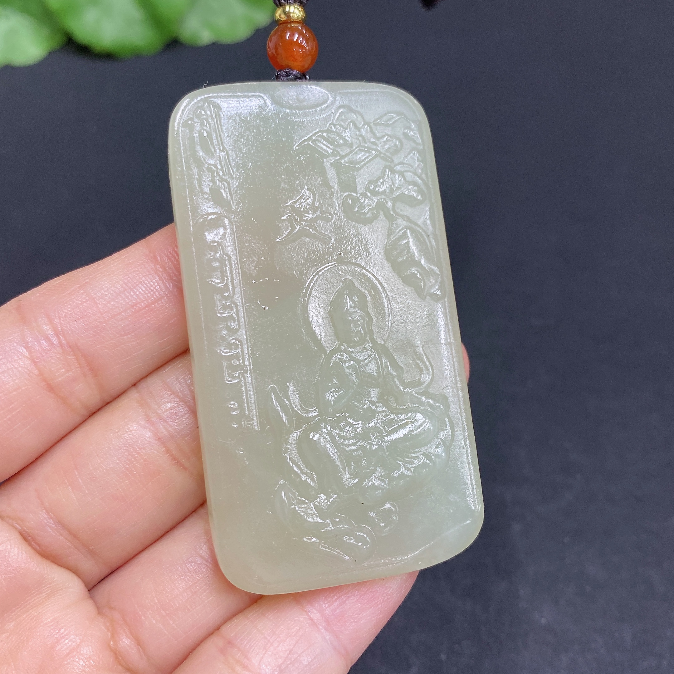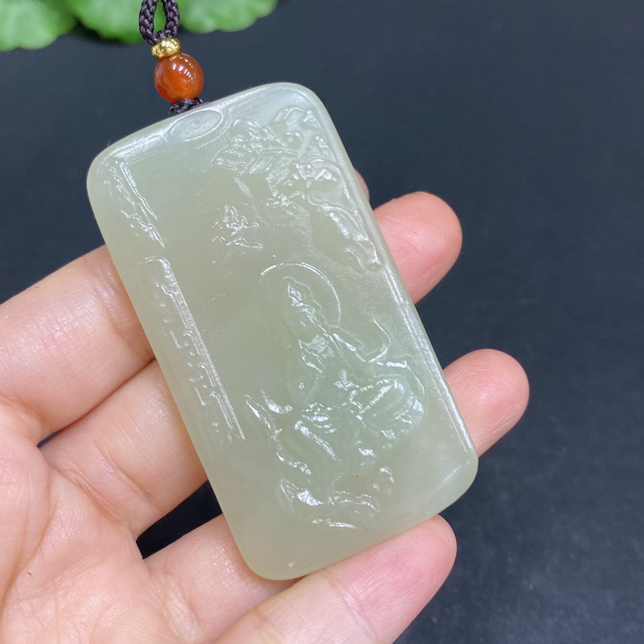 Hetian Jade Pendant Guanyin Total Weight (with rope) Approx. 30.6g