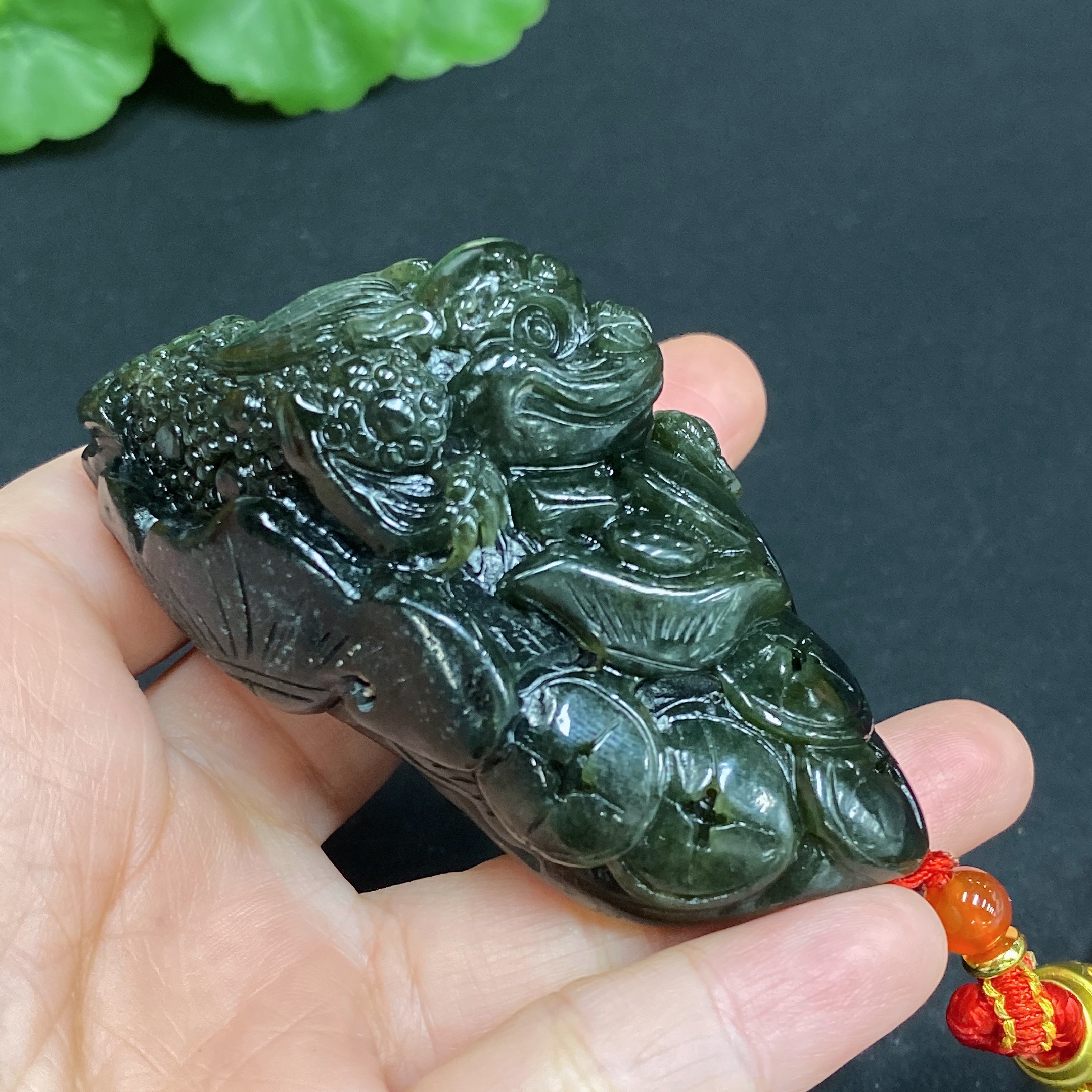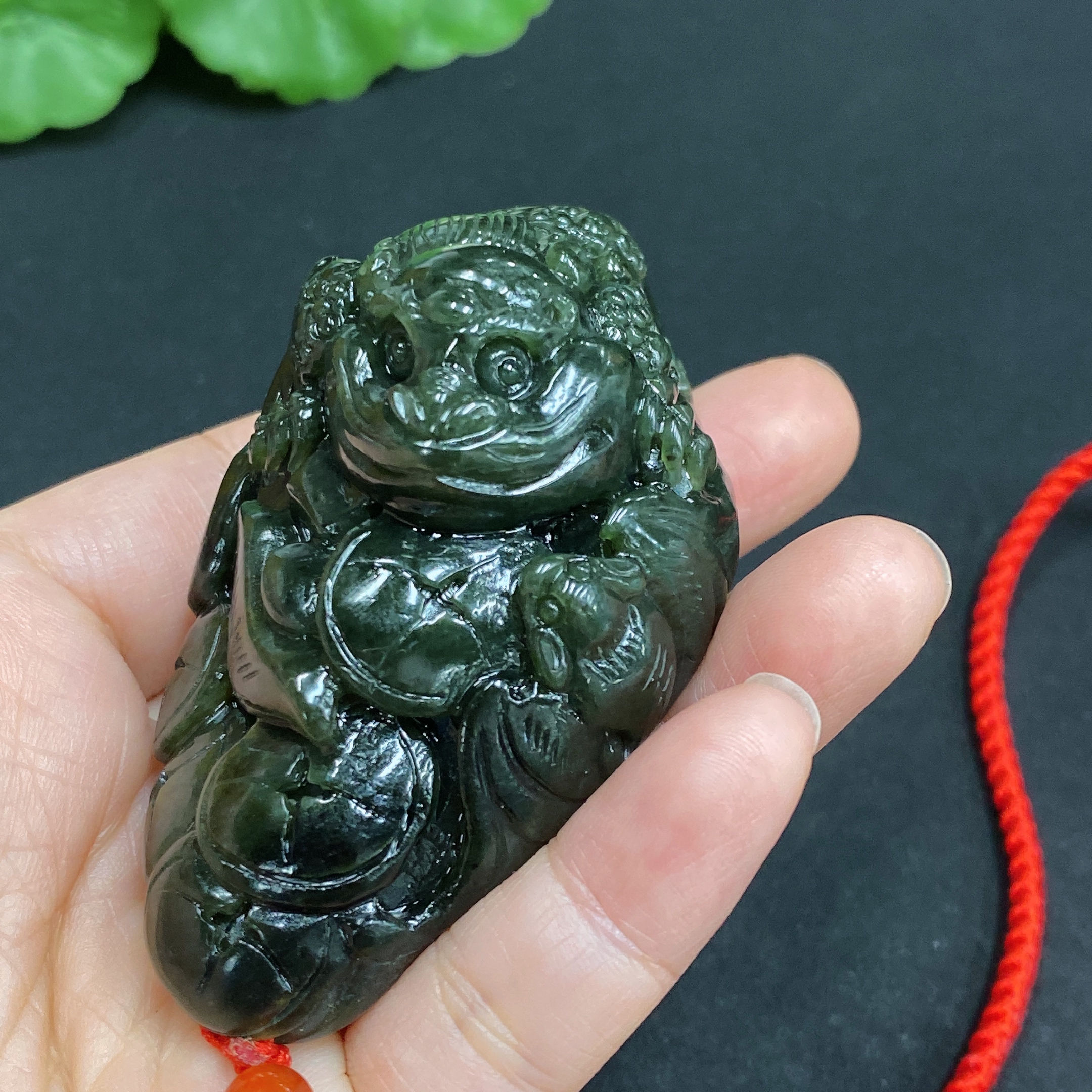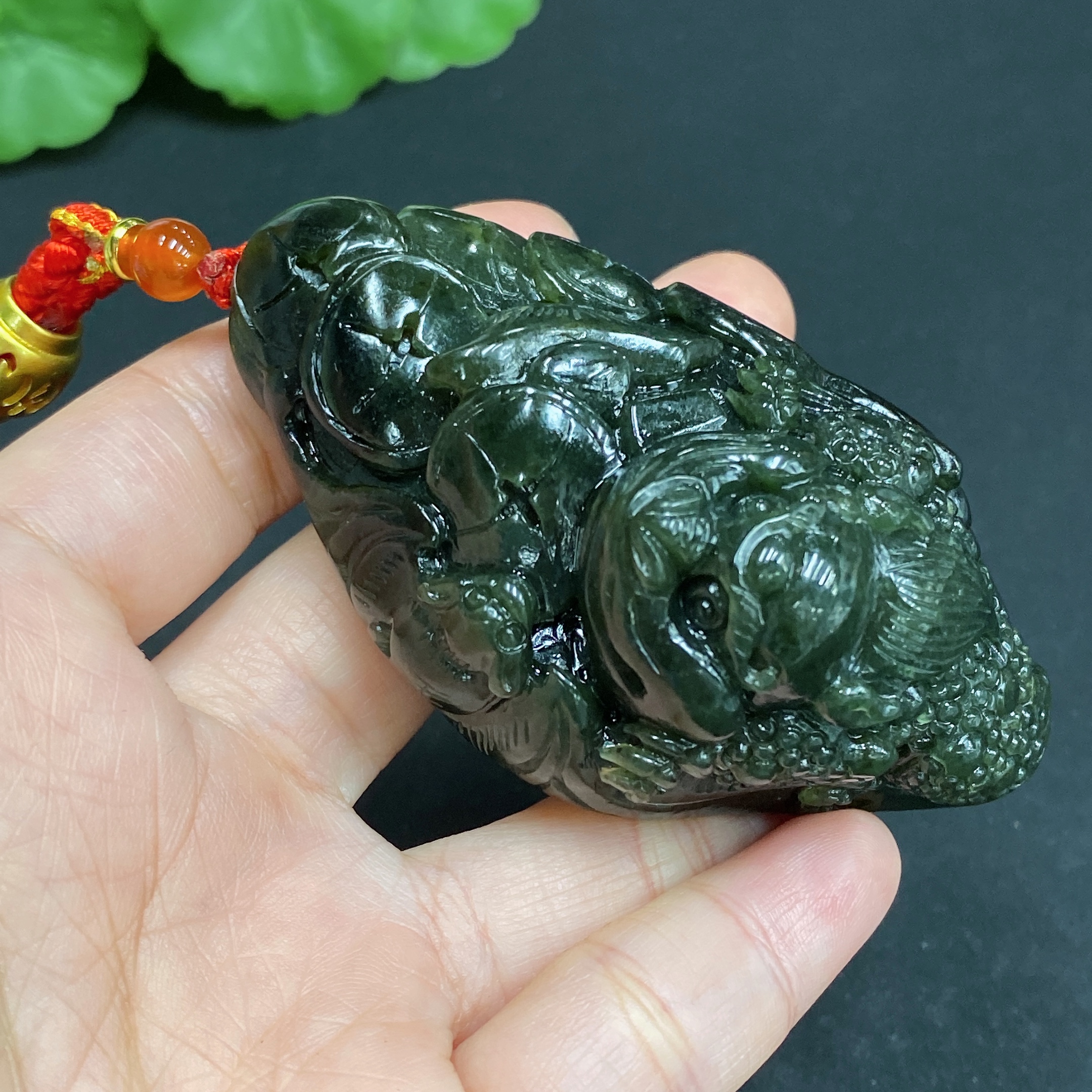 Hetian Jade Handheld Carving — Three-Legged Golden Toad