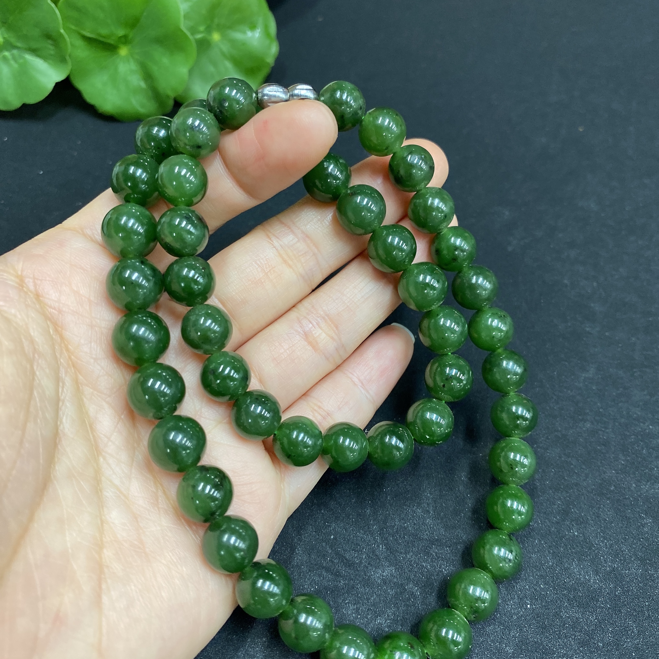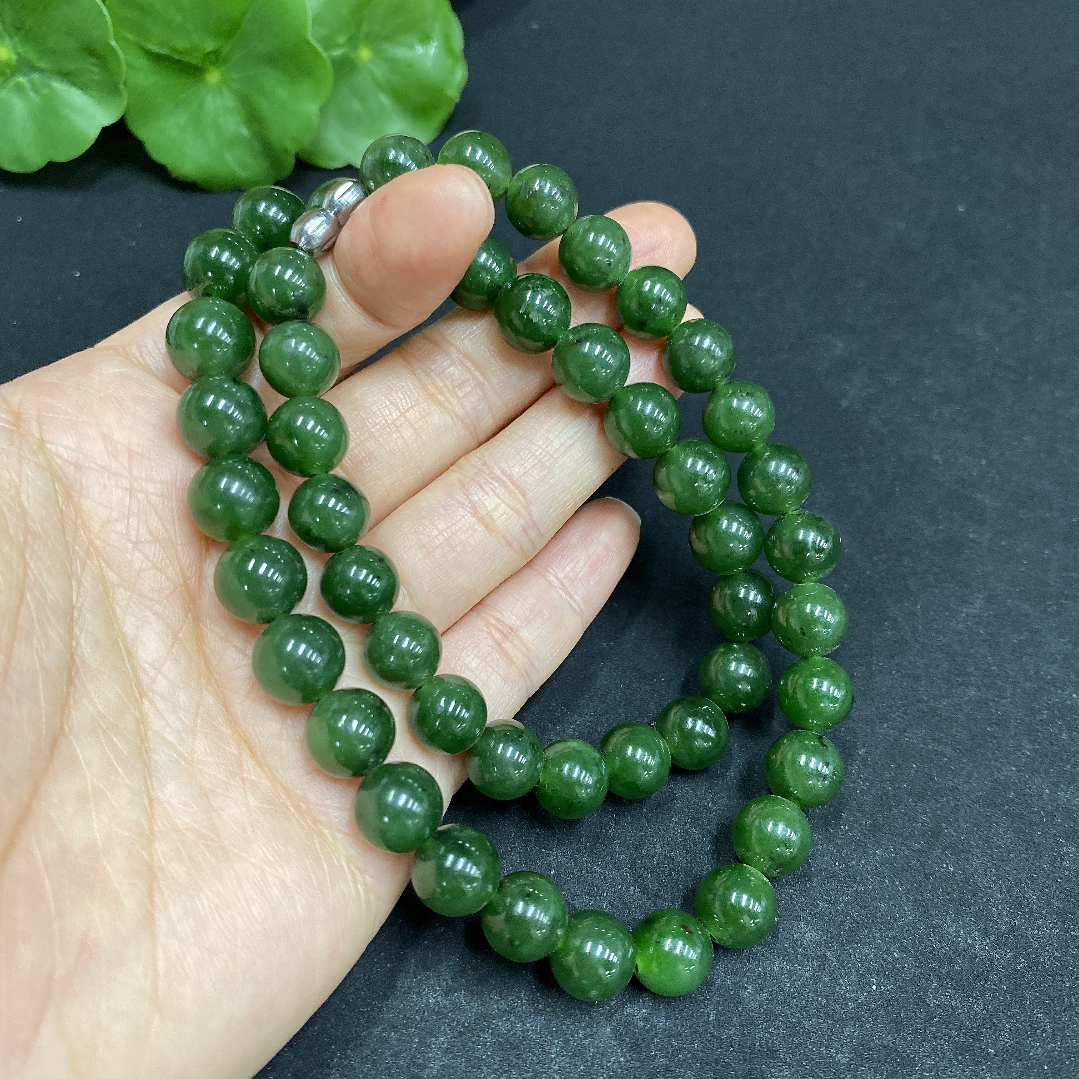 Hetian Jade Bead Necklace, approx. 8.9mm, total weight about 61.9g