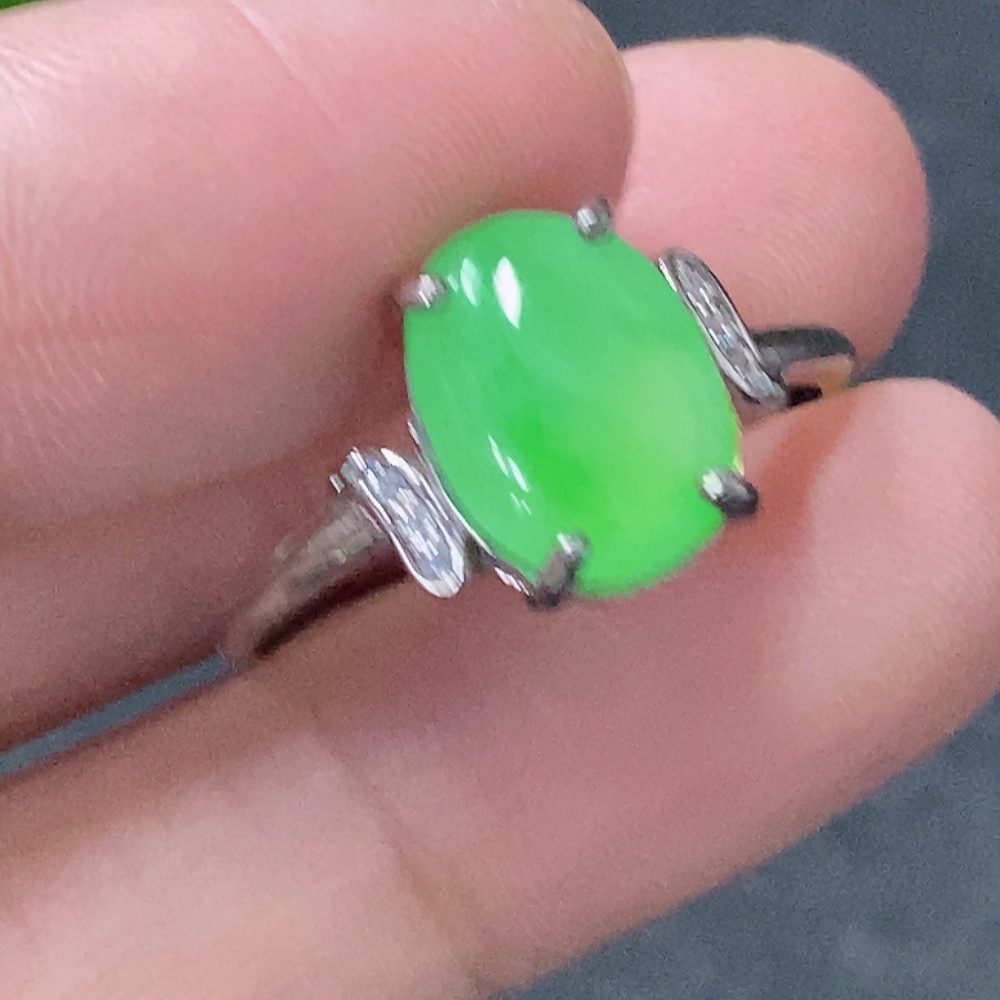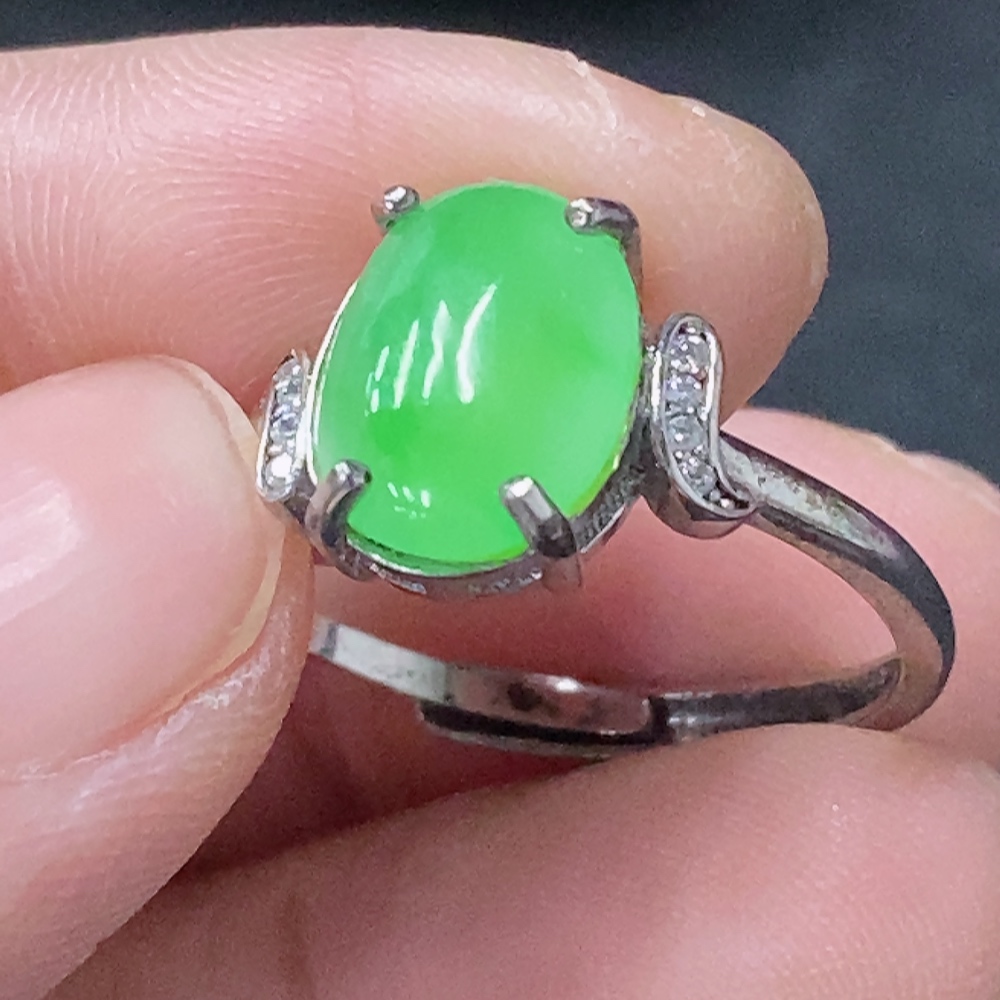 Jadeite Inlaid Ring Non-Gold Adjustable Total Weight Approx. 2.17g