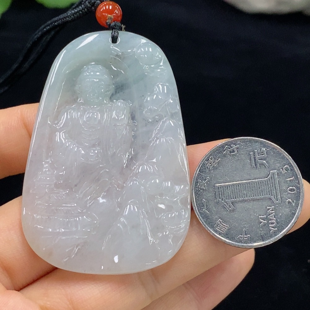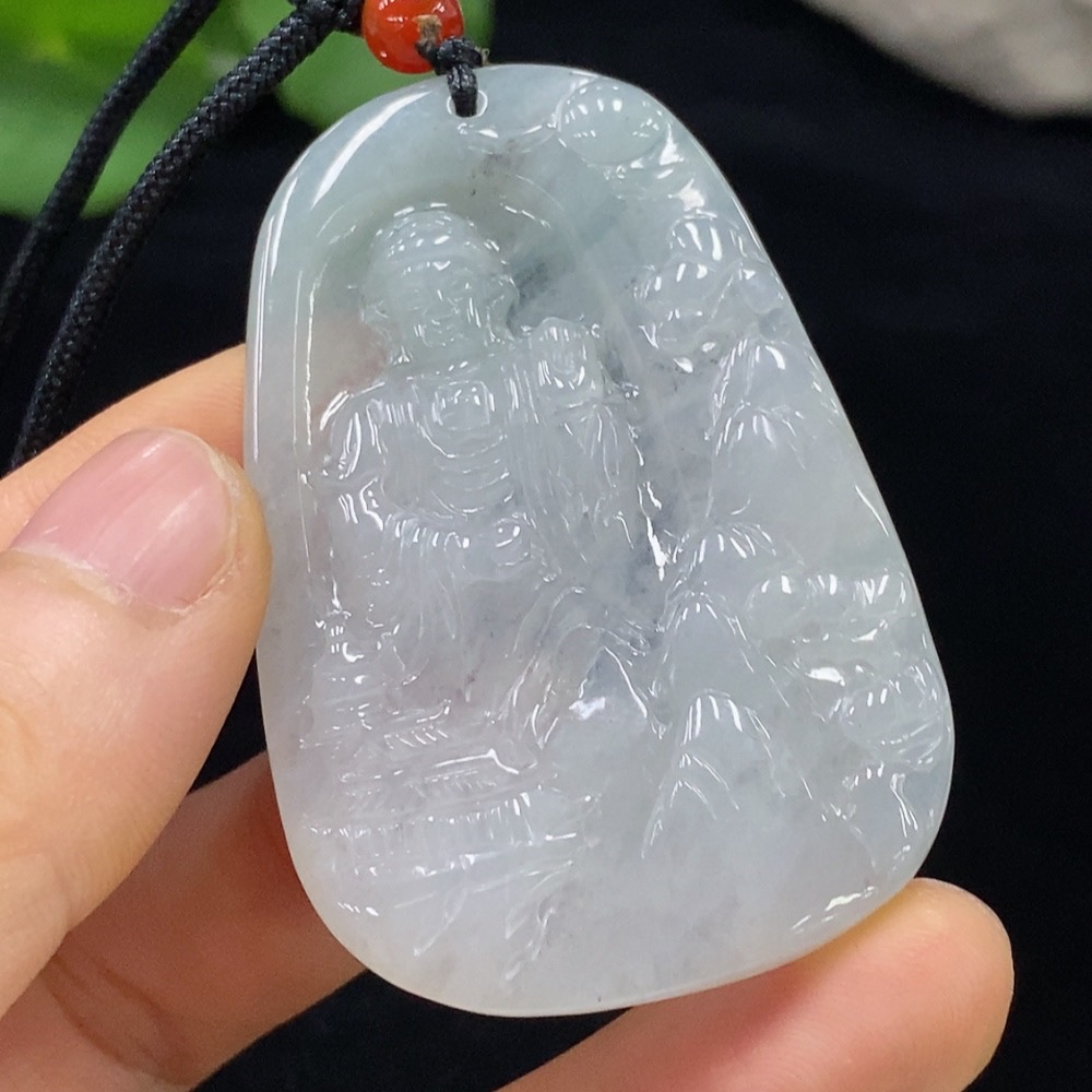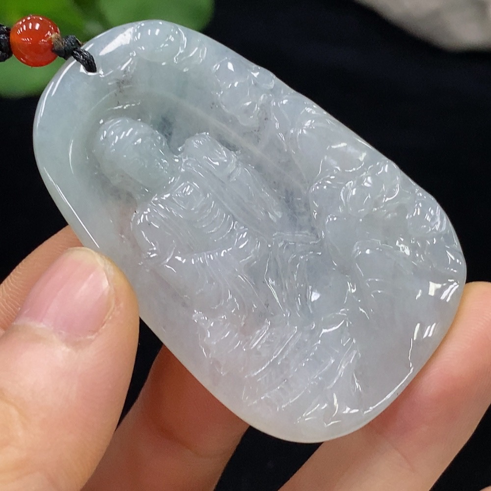 Jadeite Guanyin Pendant Total Weight Approx. 26.97g (including rope weight)