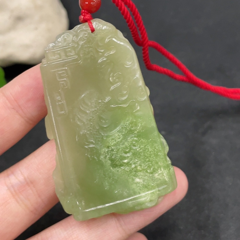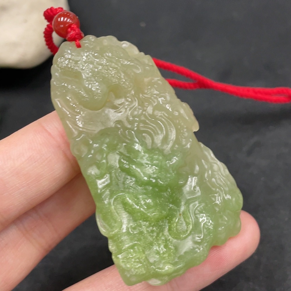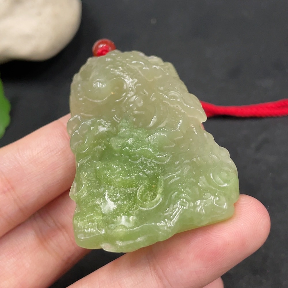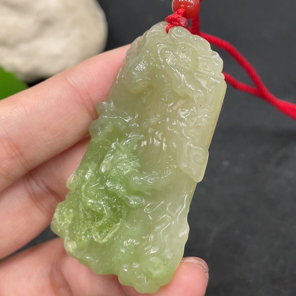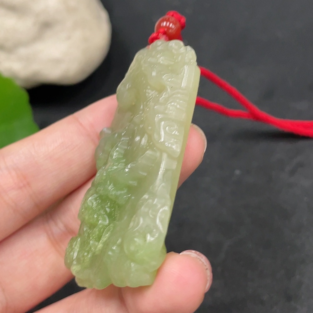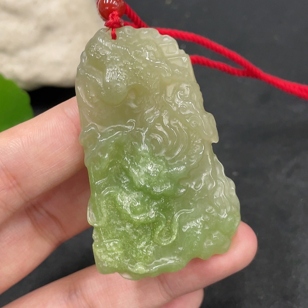 Hetian Jade Pendant - Dragon Roaming the World with Non-Hetian Jade Beads - Total Weight (including cord): 28g
