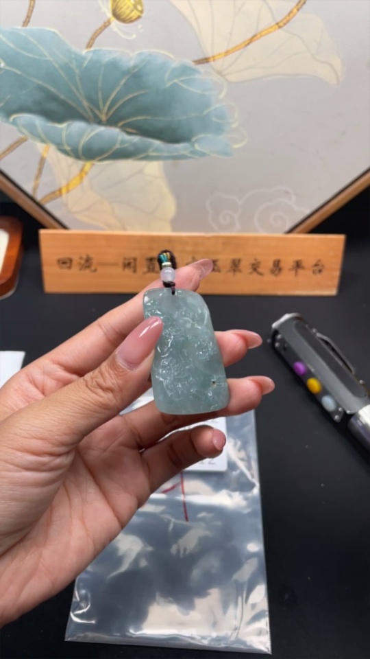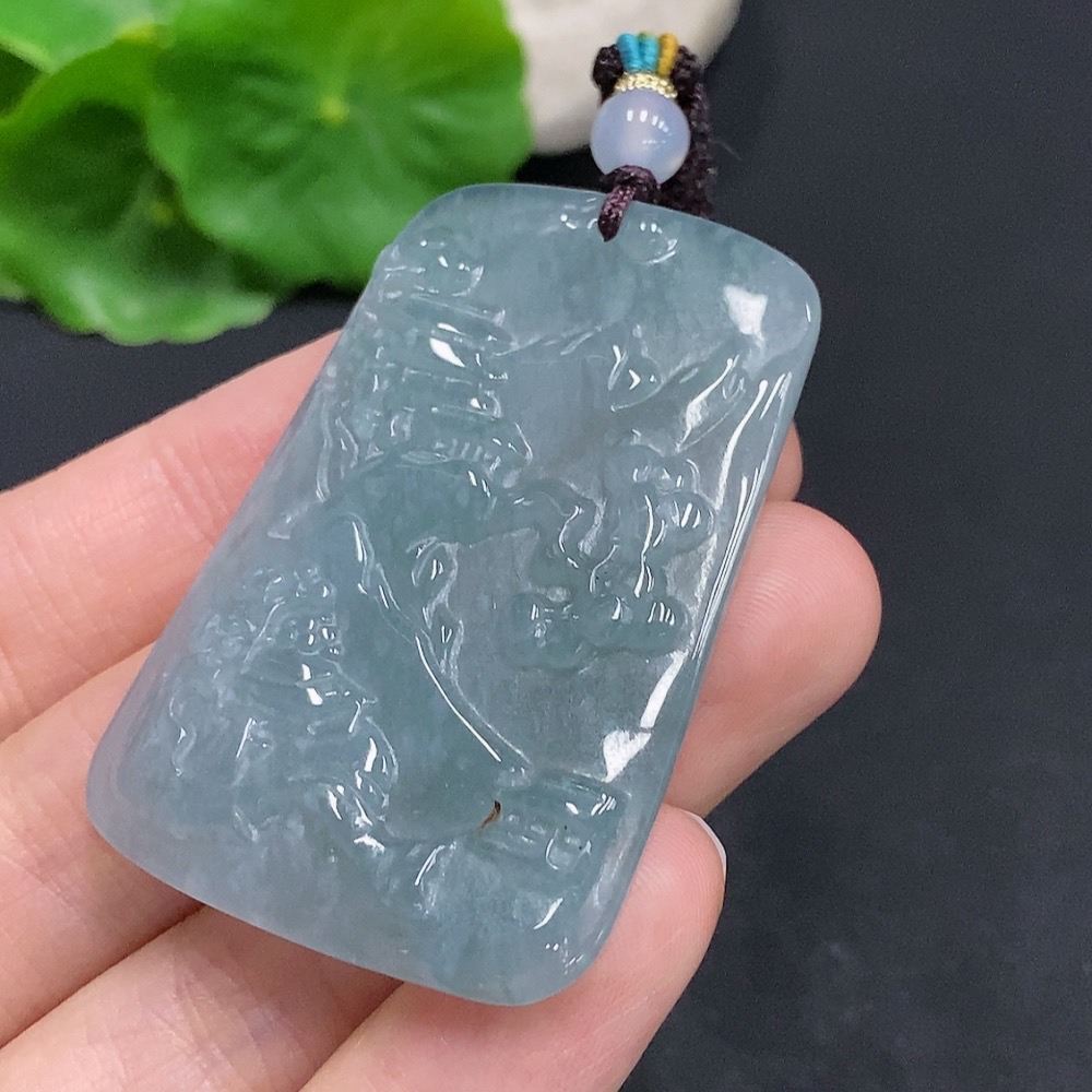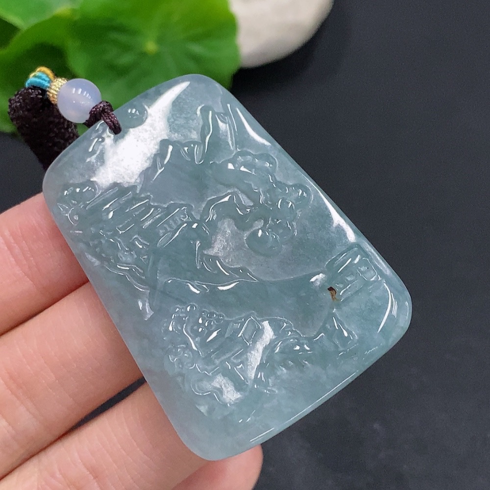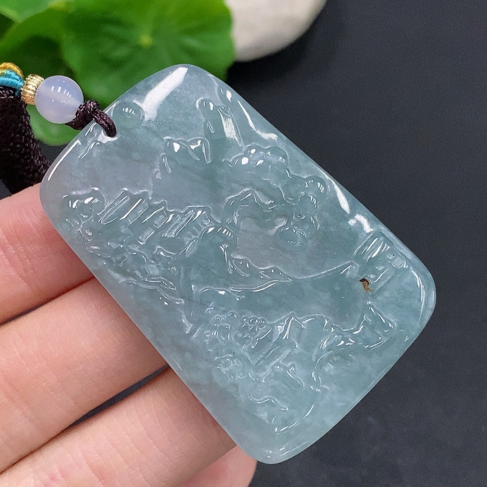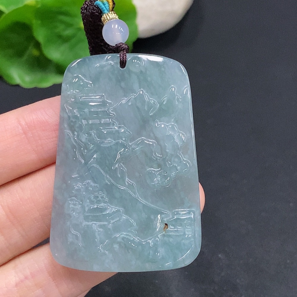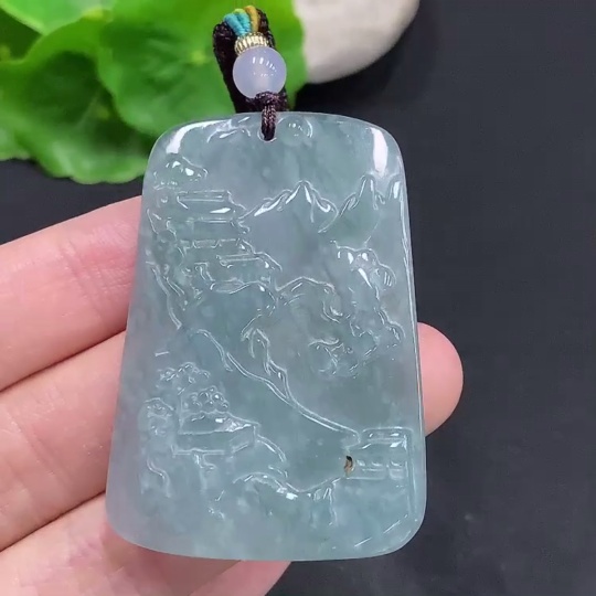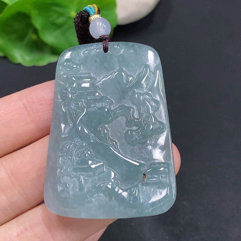 JadeiteLandscape Pendant with a total product weight of approximately 18 grams (including rope weight)