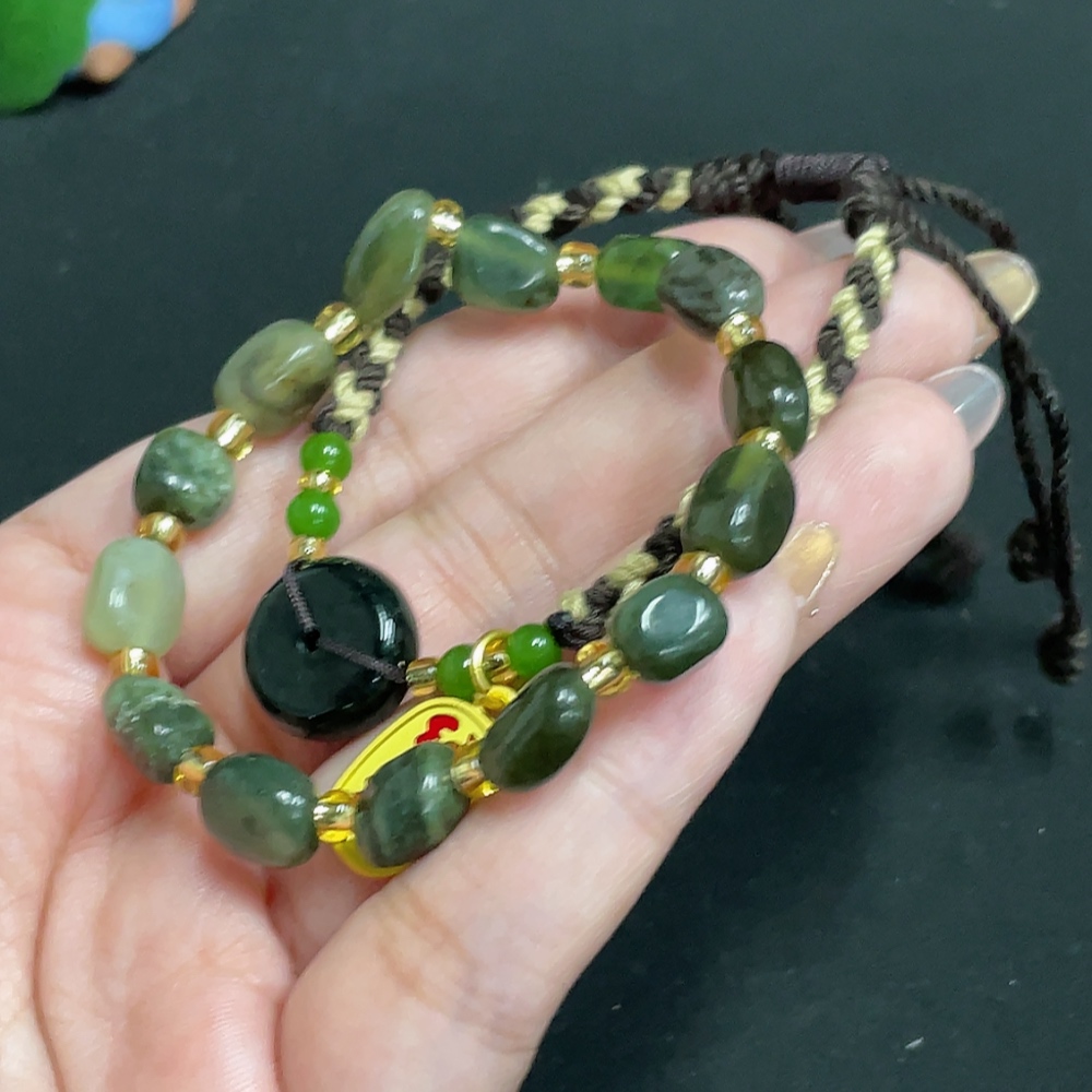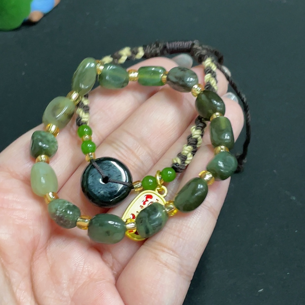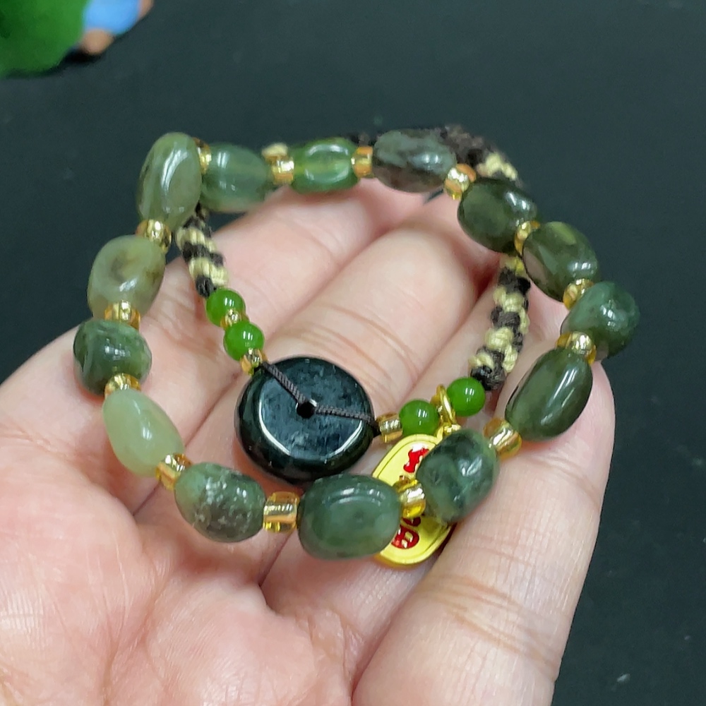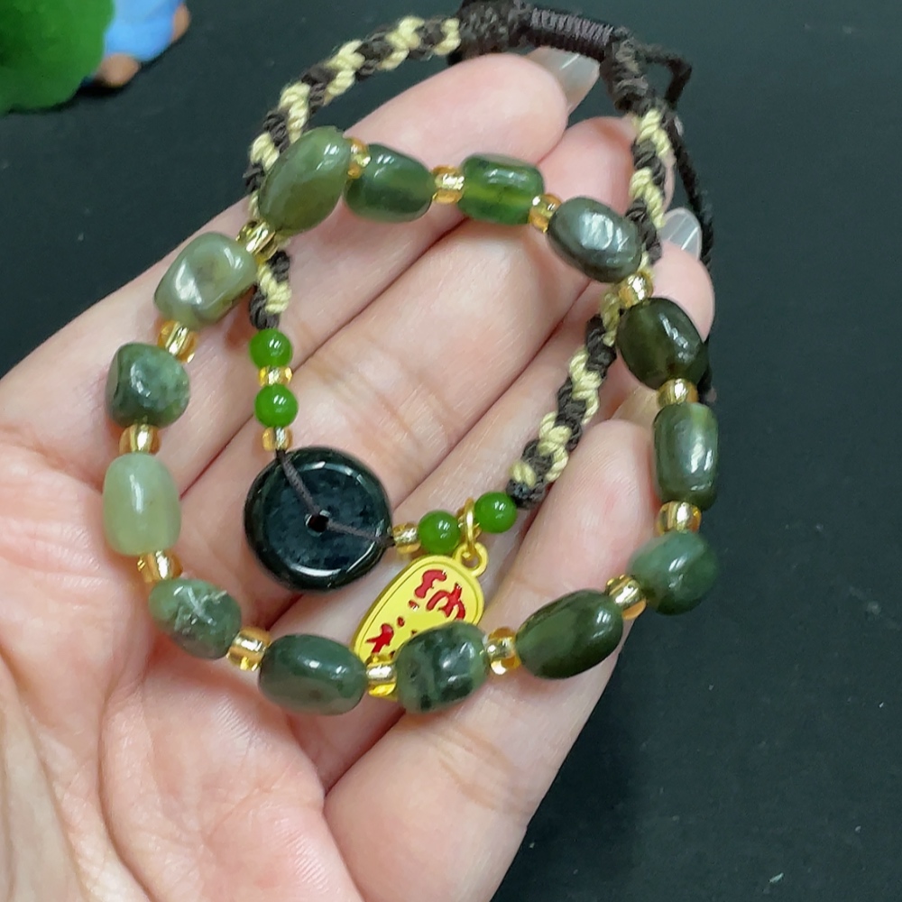 Hetian Jade Bracelet (Matching Beads Not Hetian Jade, Total Weight Approx. 18.9g, Non-Gold)