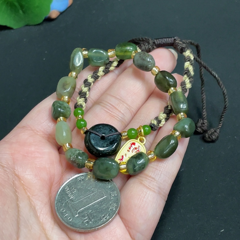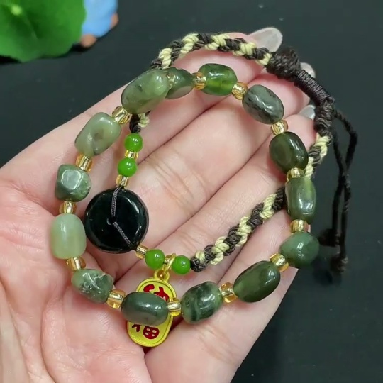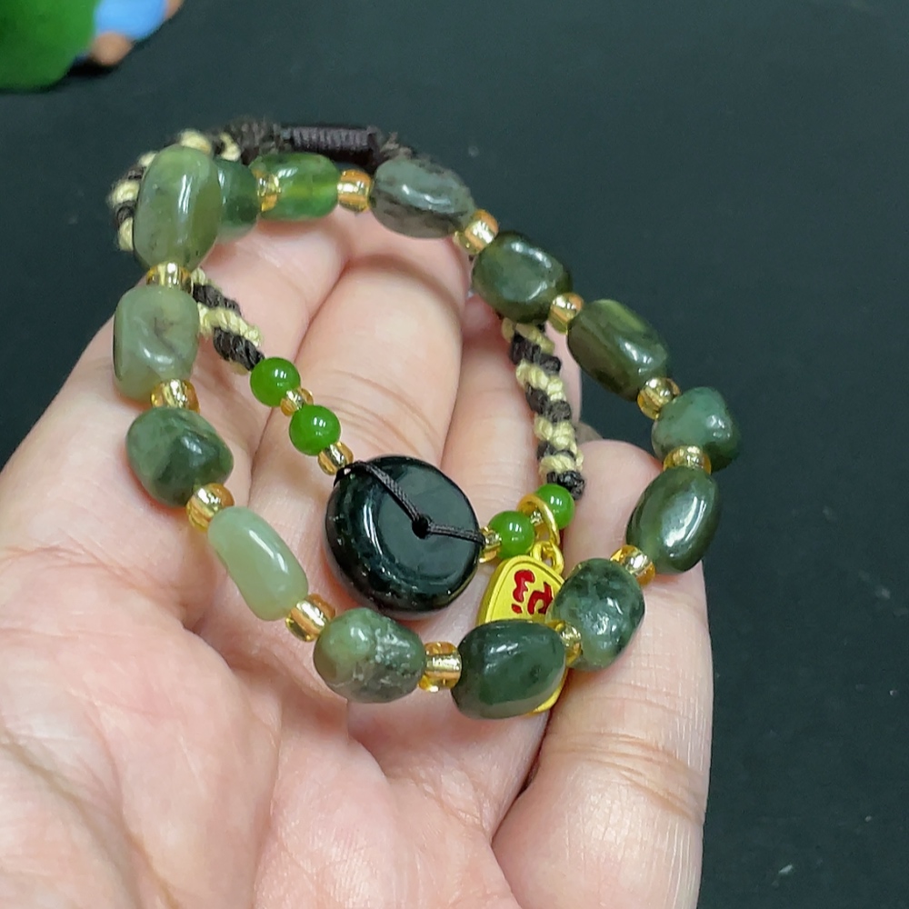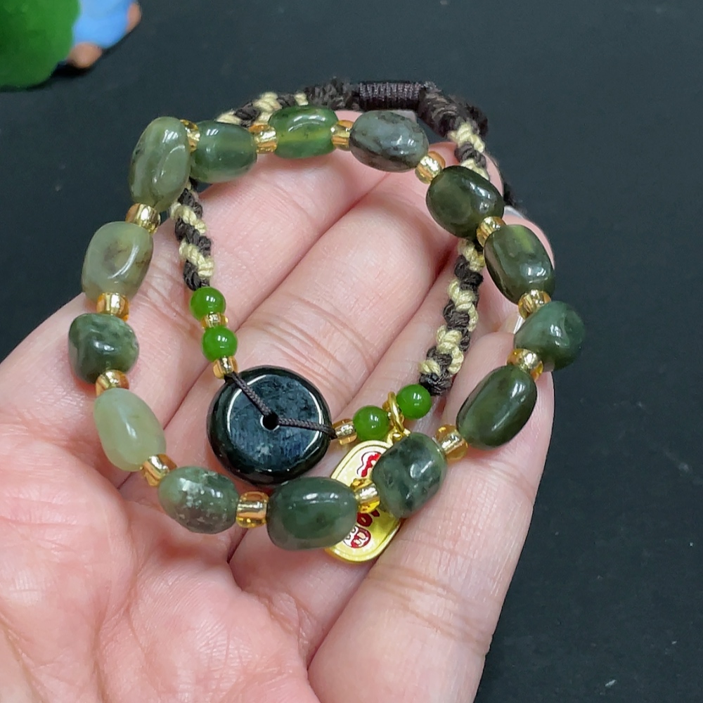 Hetian Jade Bracelet (Matching Beads Not Hetian Jade, Total Weight Approx. 18.9g, Non-Gold)