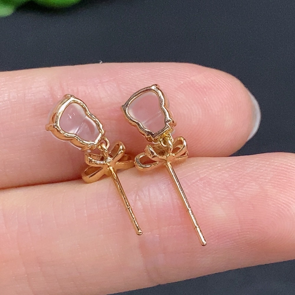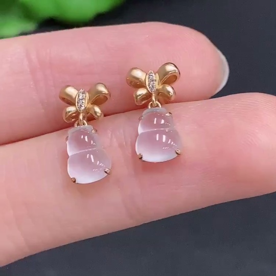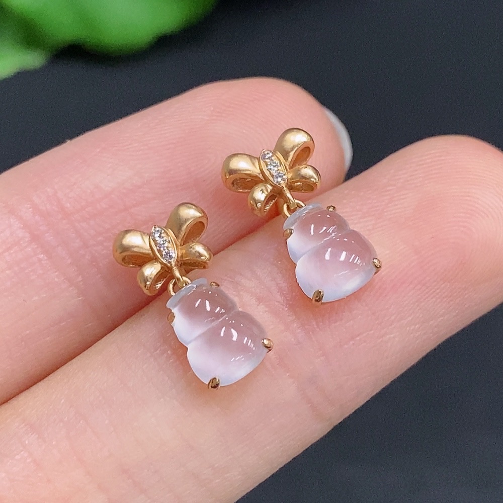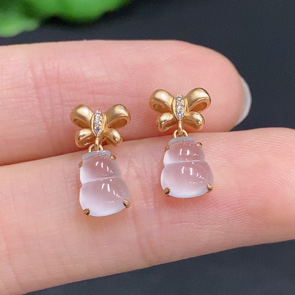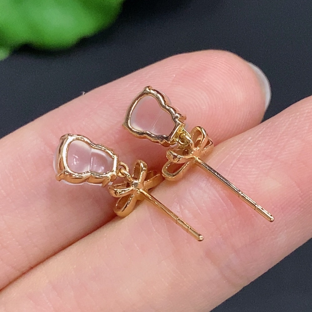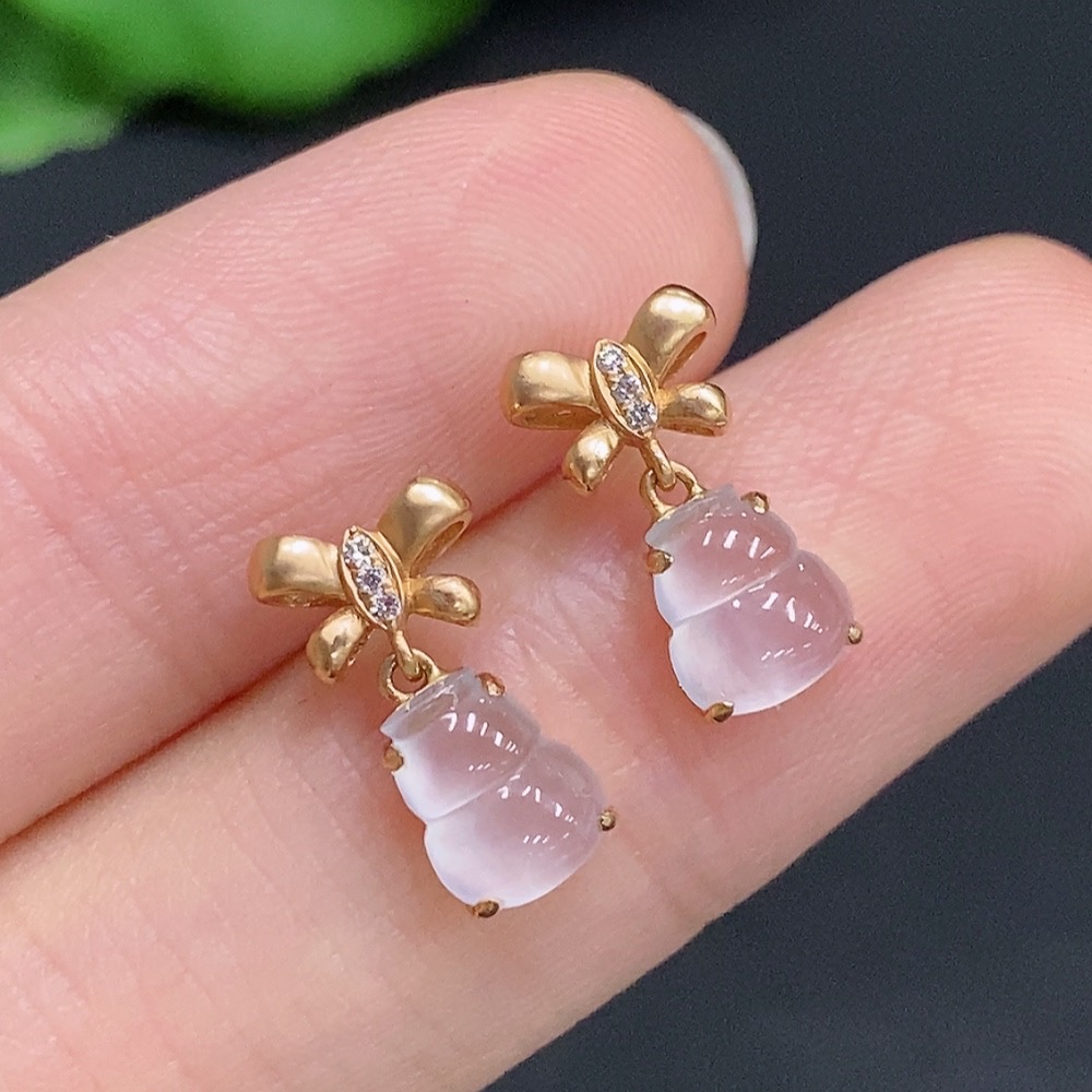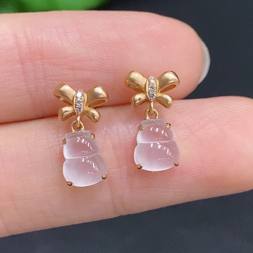 Jadeite Gourd Inlaid Earrings 18k Gold Total Weight Approx.1.6g With Diamond Accents