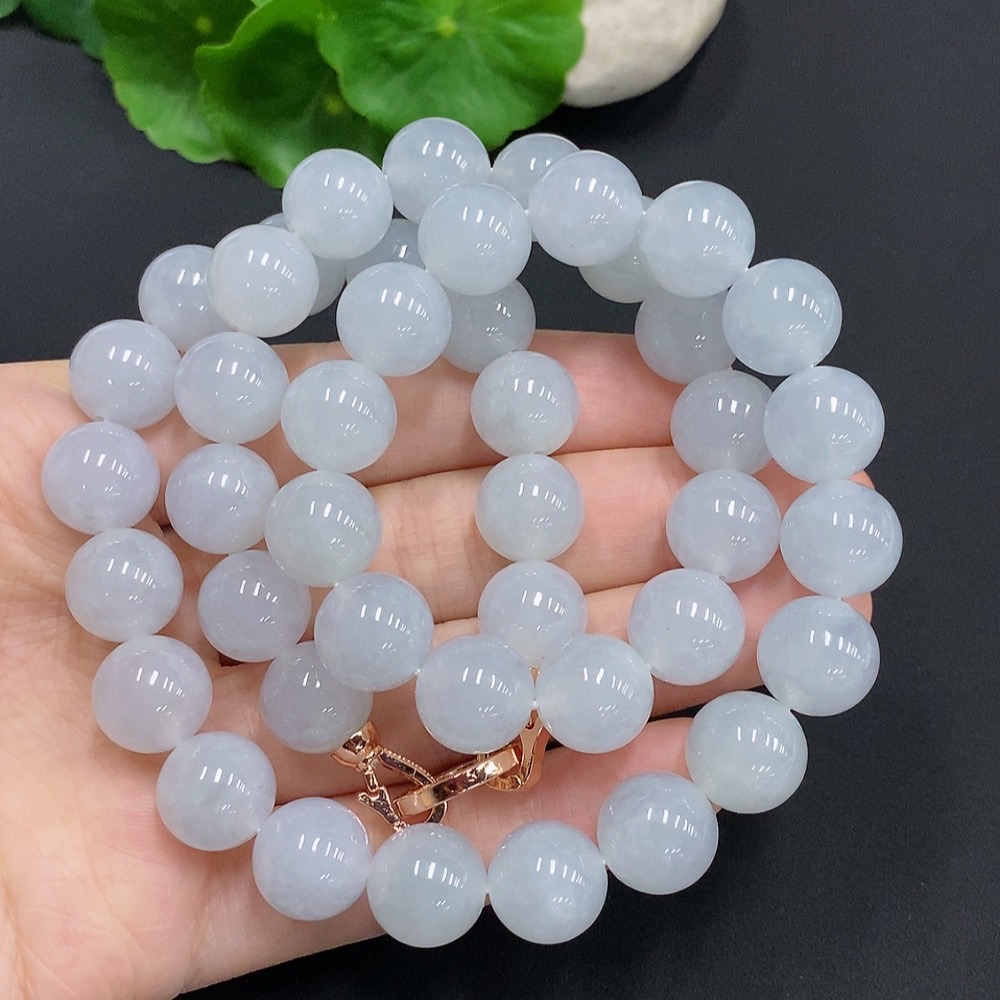 JadeiteBead Necklace Non-Gold Inlaid Total Weight Approximately 131.4g Size About 12mm