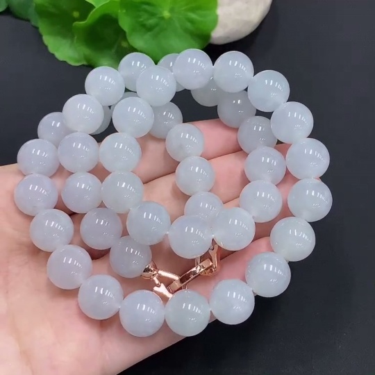 JadeiteBead Necklace Non-Gold Inlaid Total Weight Approximately 131.4g Size About 12mm