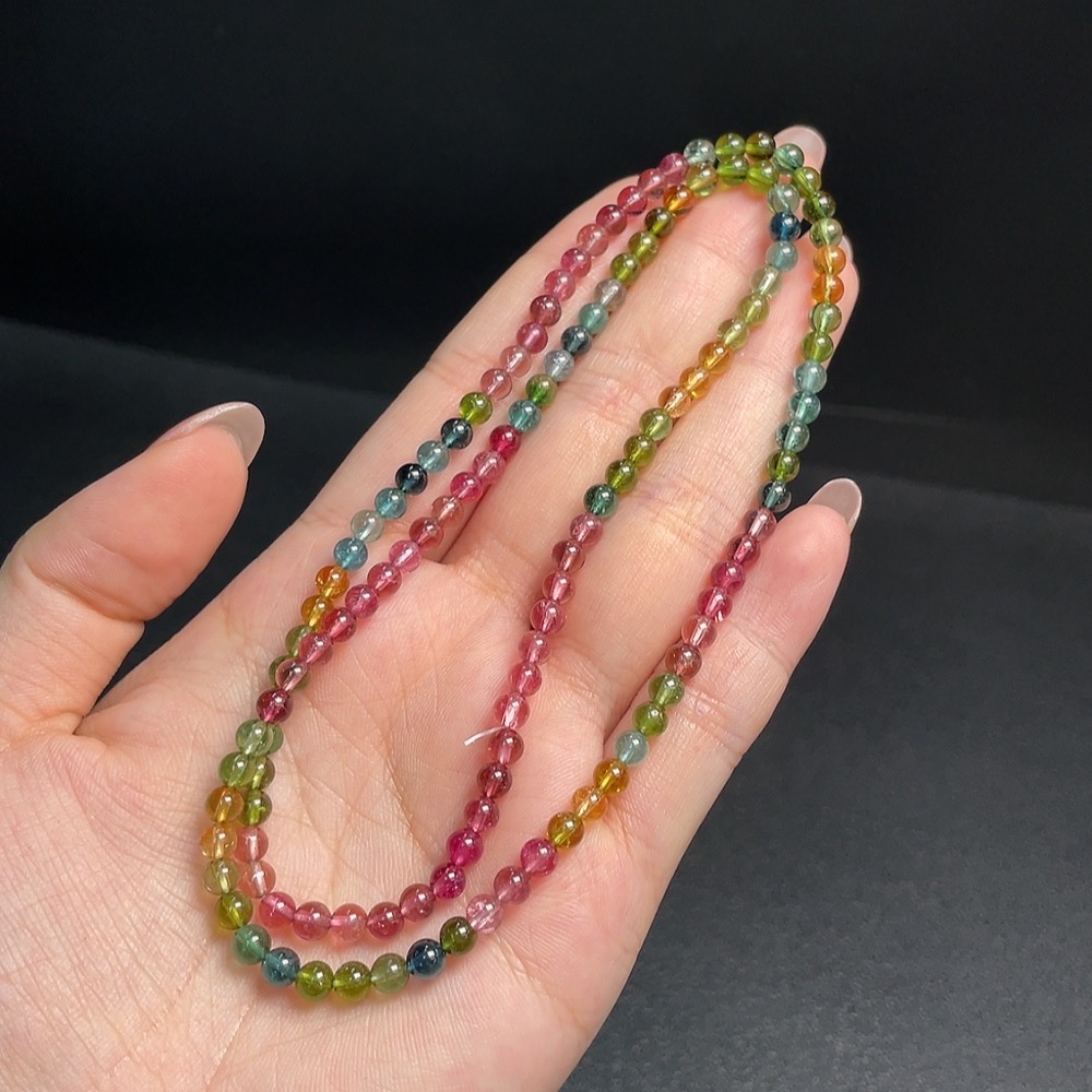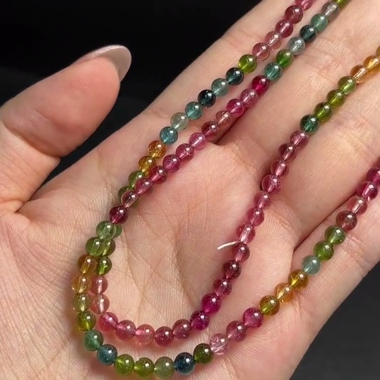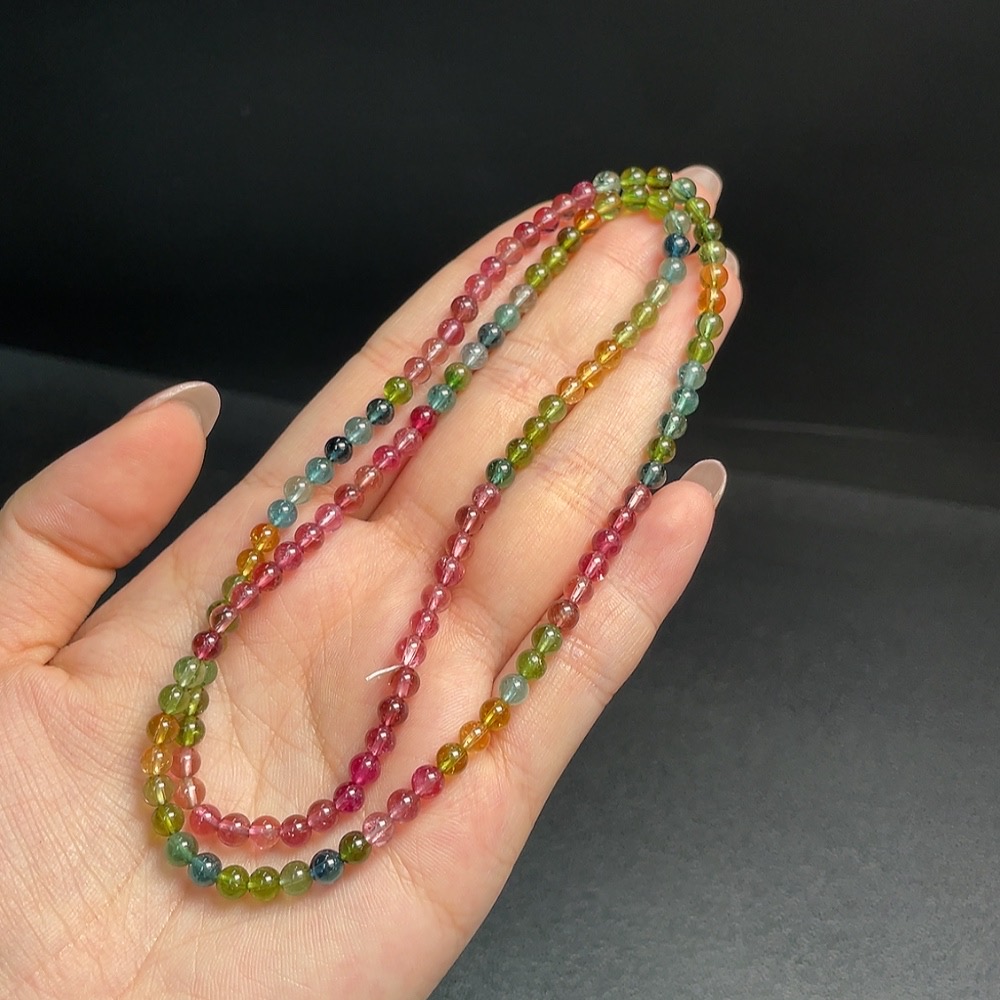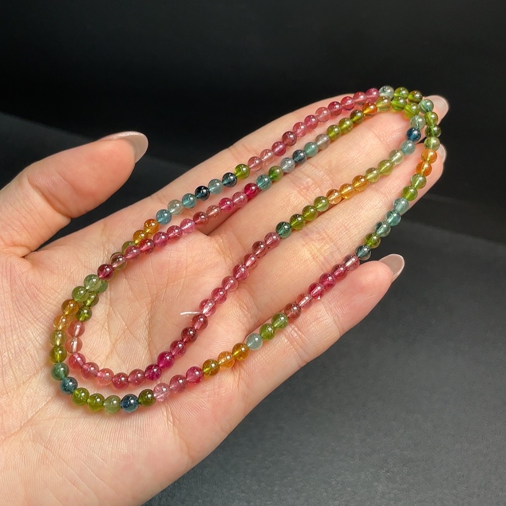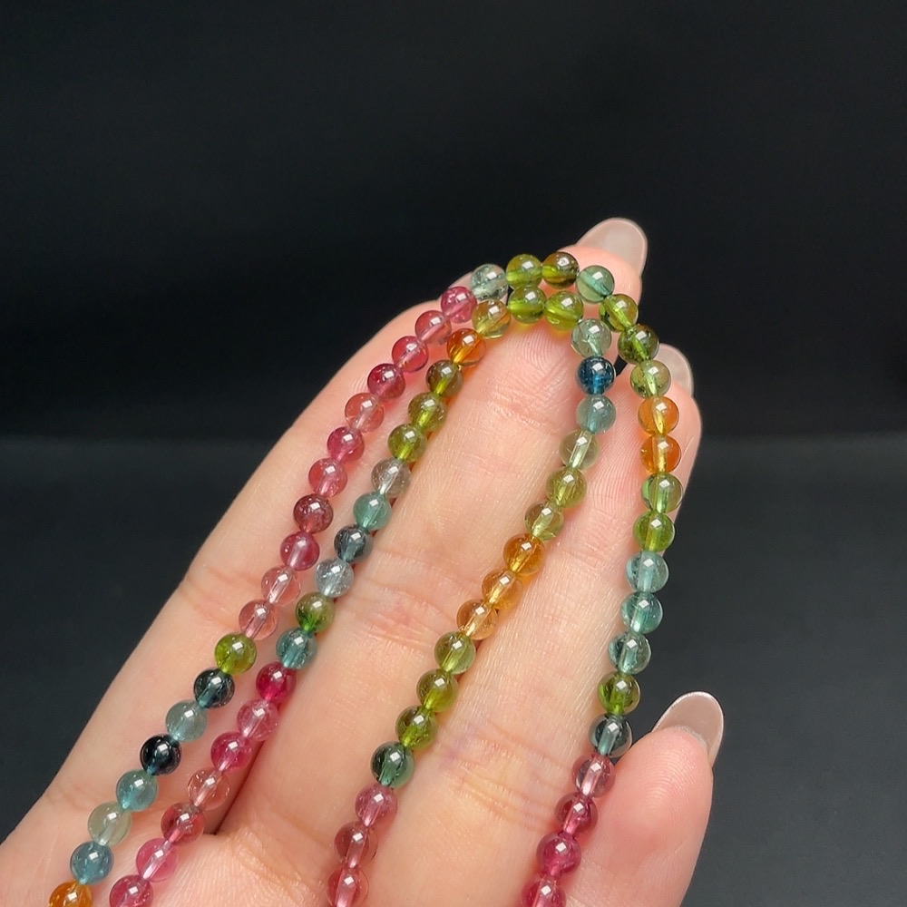 Tourmaline Bead Strand with Visible Organic Inclusions, Total Weight Approx. 15.49g, Size About 4.2mm