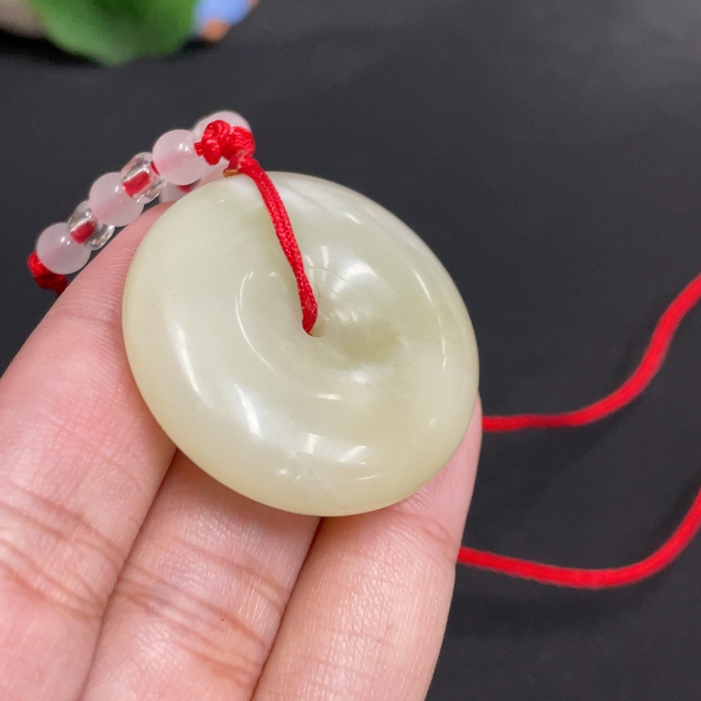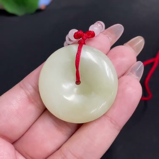 Hetian Jade Pendant Peace Buckle Total Weight [with rope] 22g