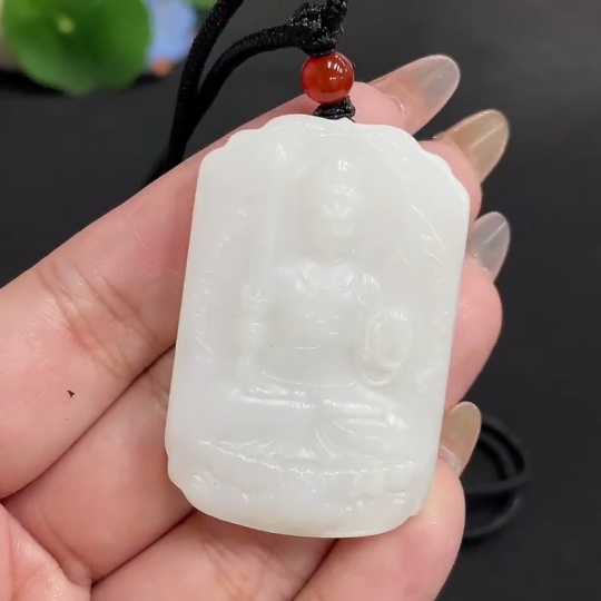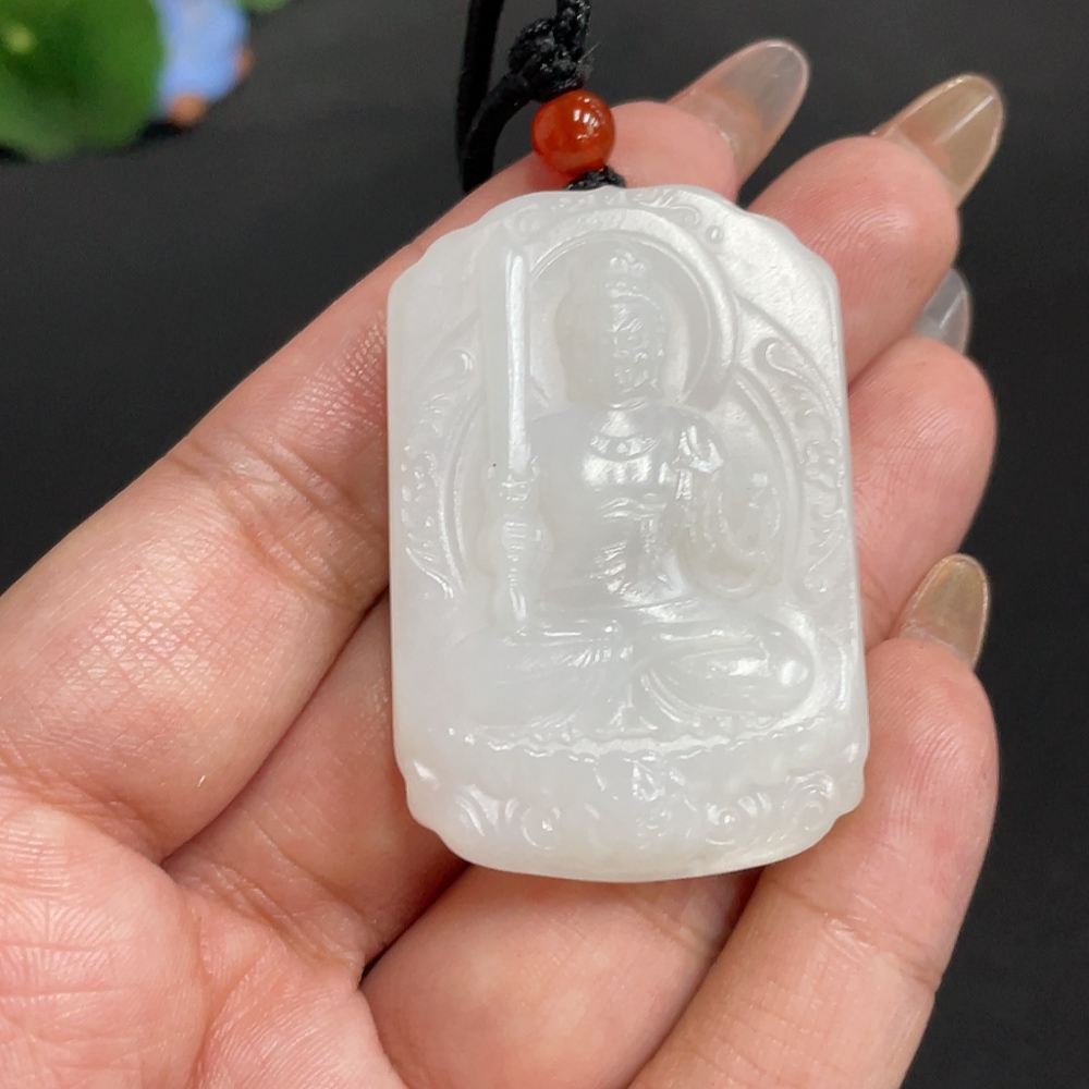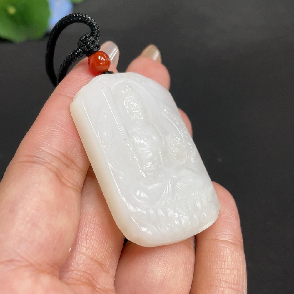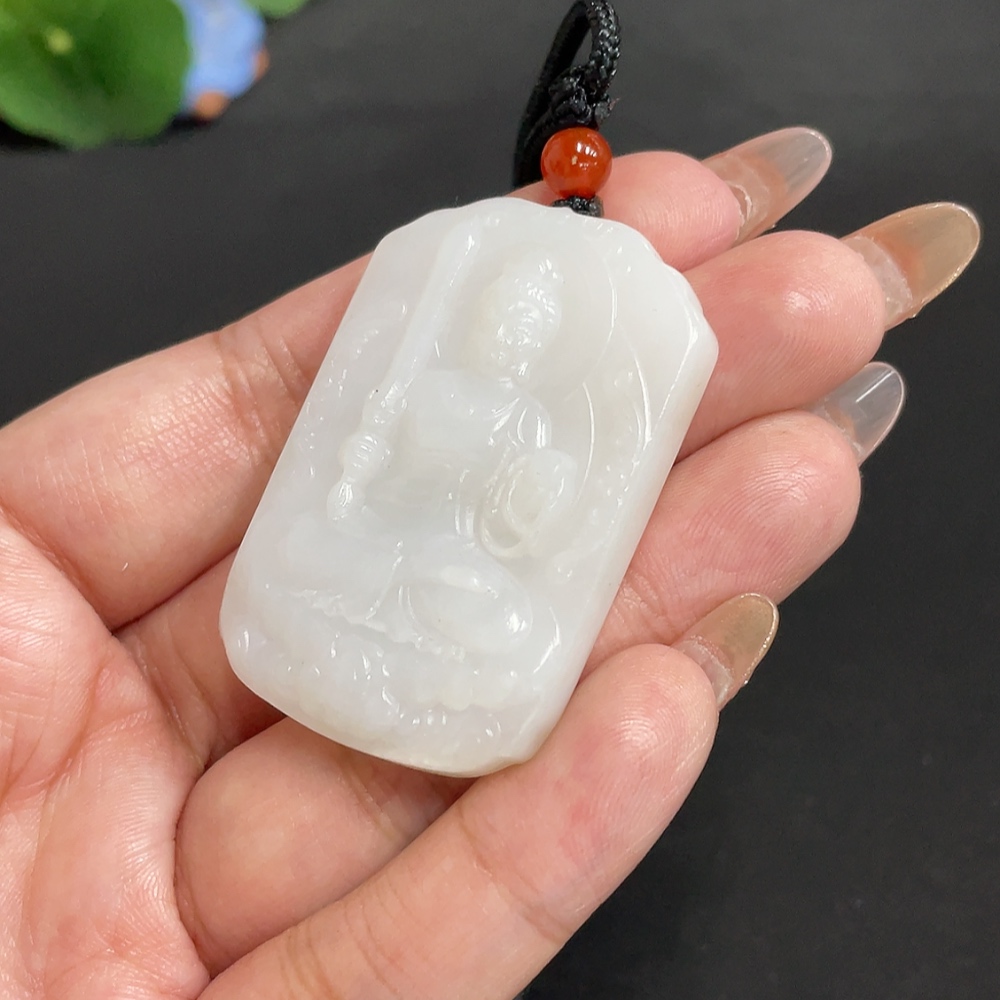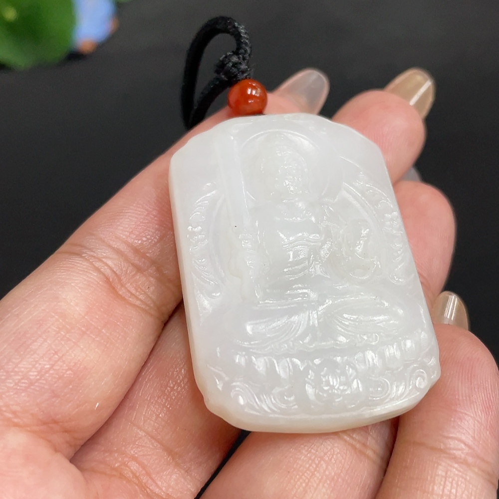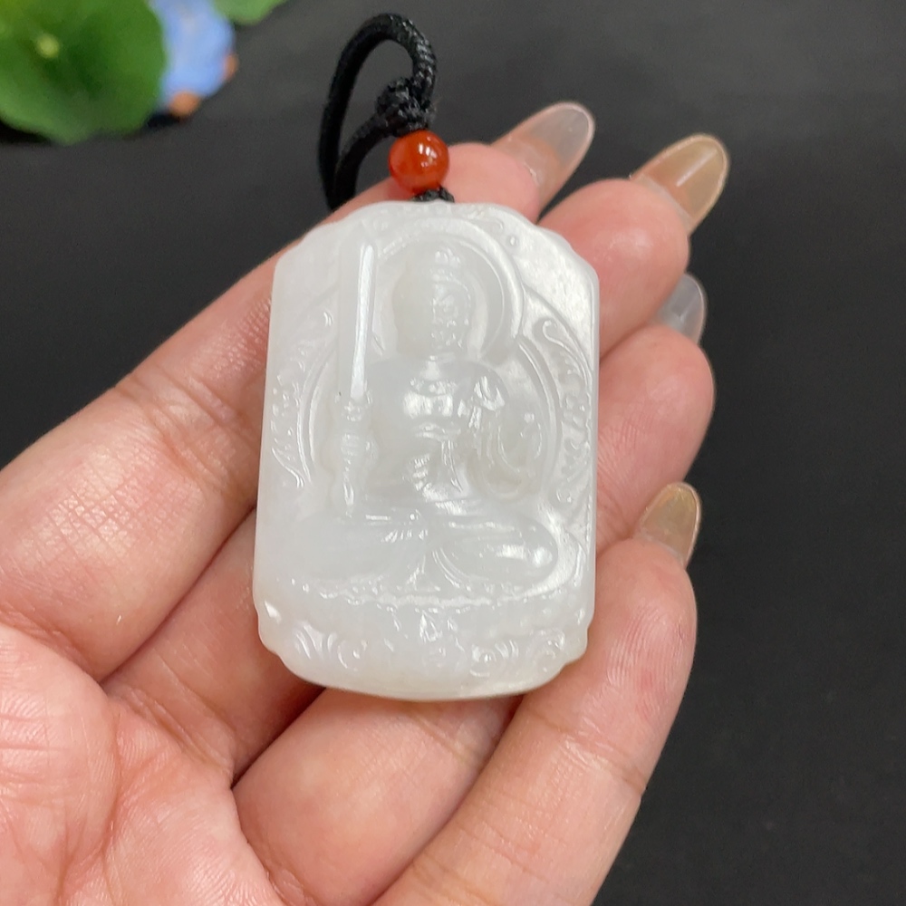 Hetian Jade Pendant Guardian Deity Total Weight [with rope] approx. 30.1g