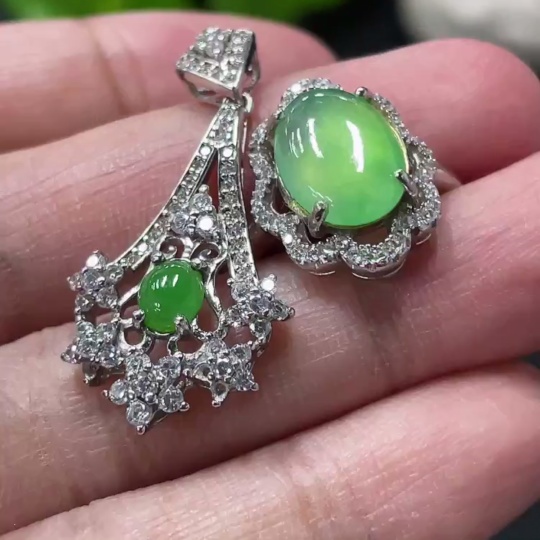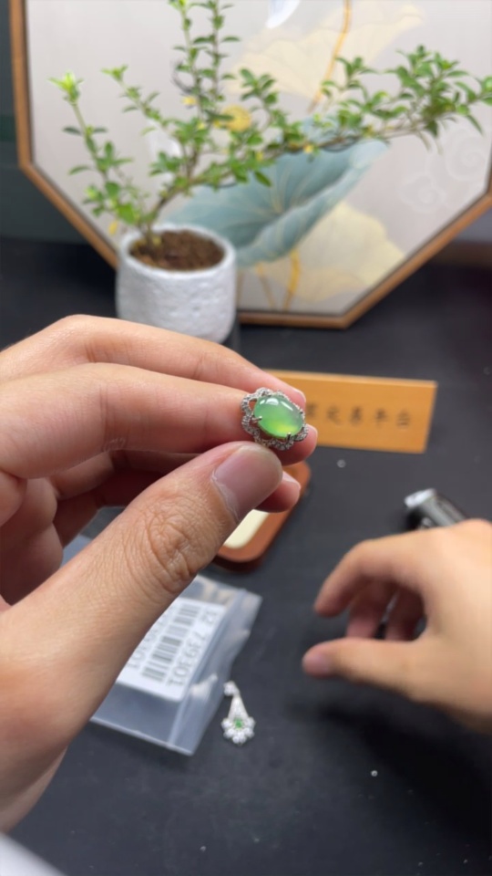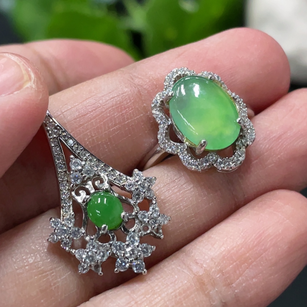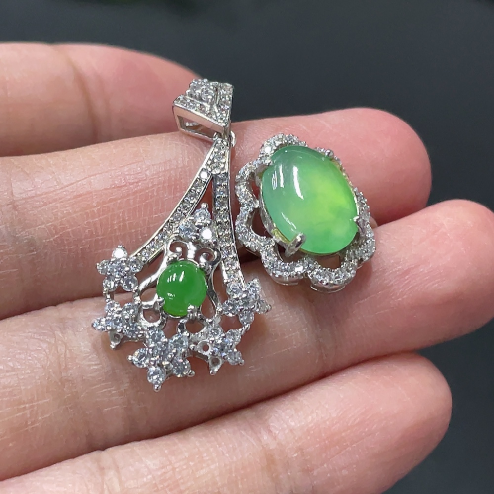 Jadeite Cabochon Pendant + Ring with Non-Metal Setting, Adjustable Size