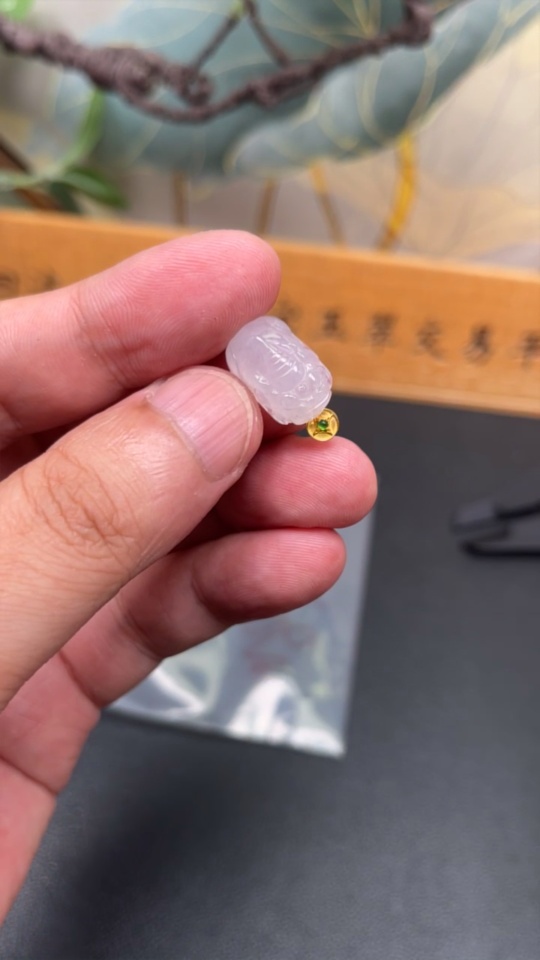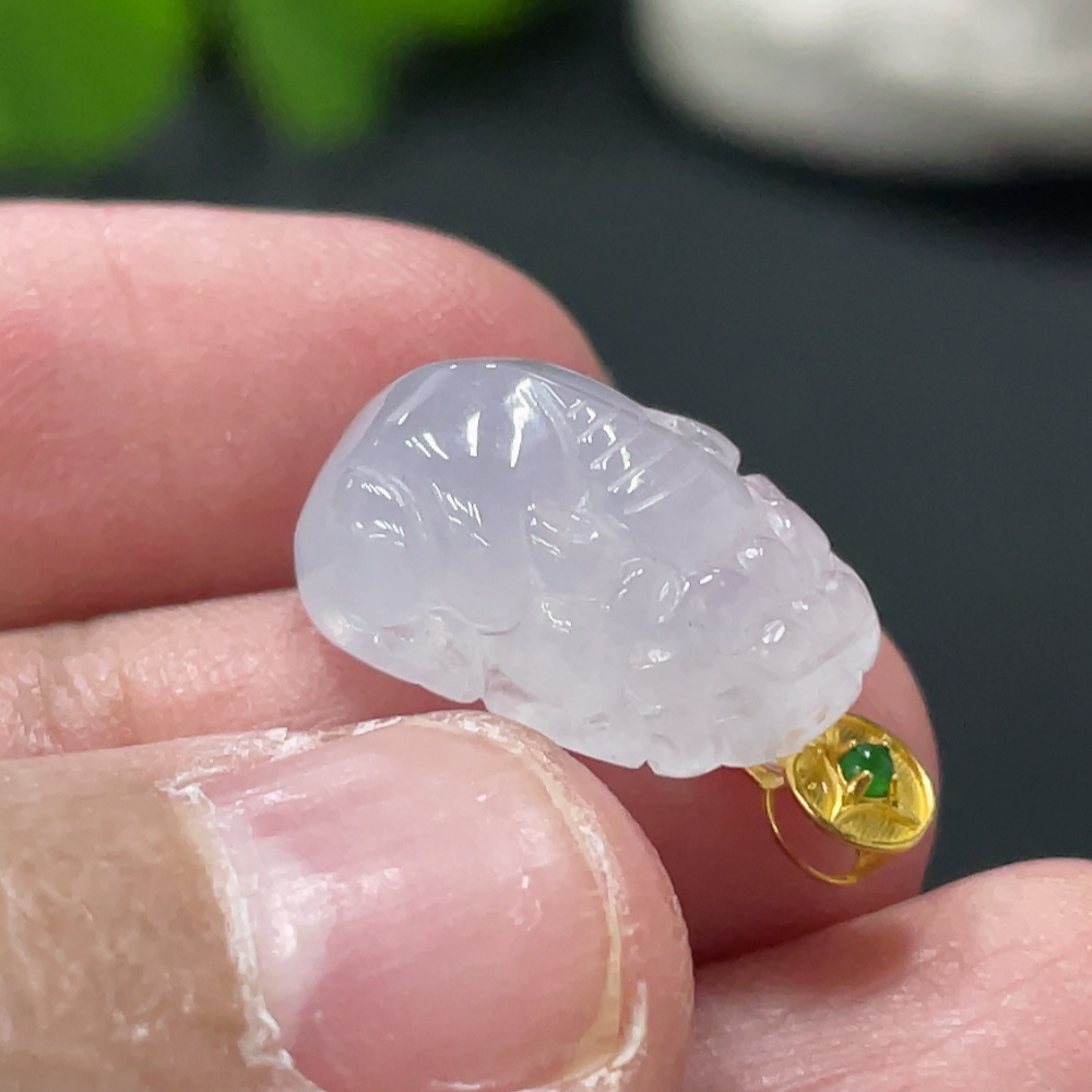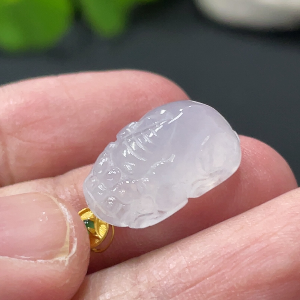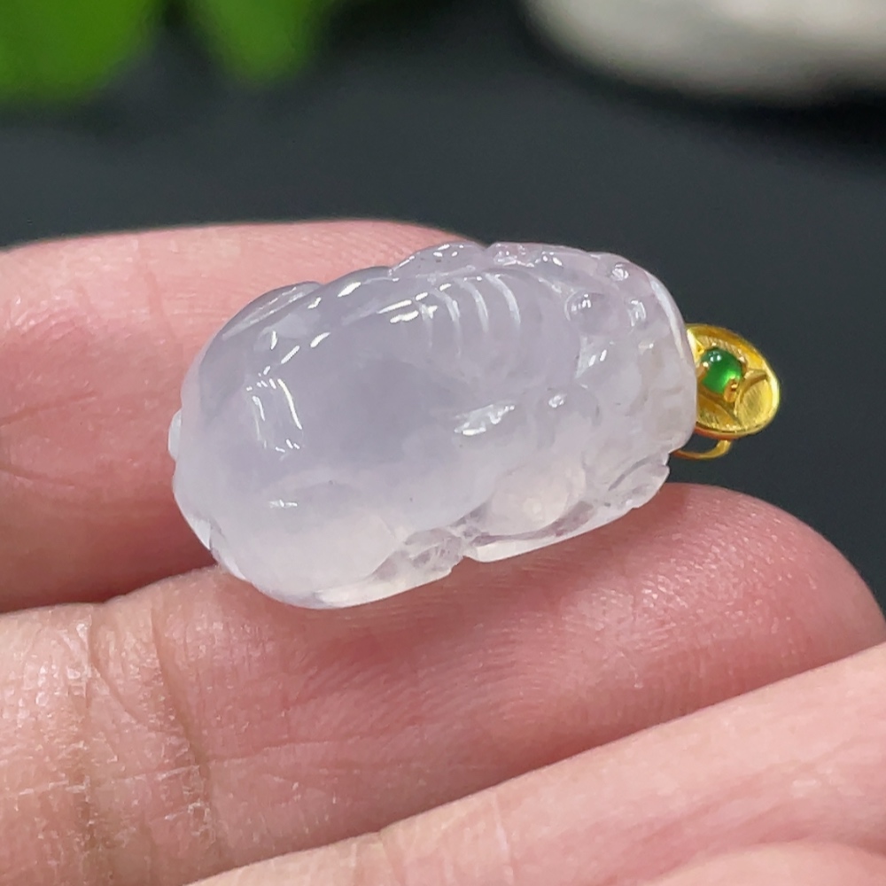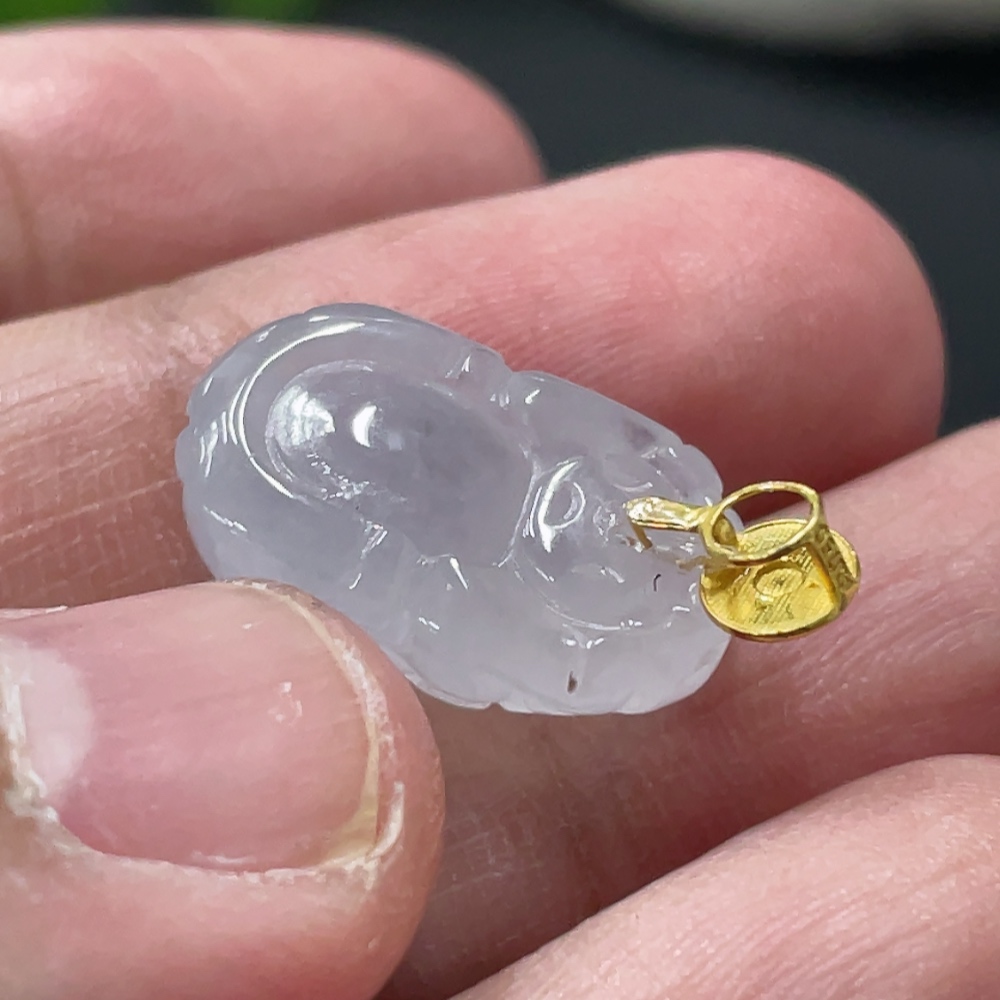 Jadeite Pi Xiu Pendant, Total Weight Approx. 2.6g, 18K Gold Clasp