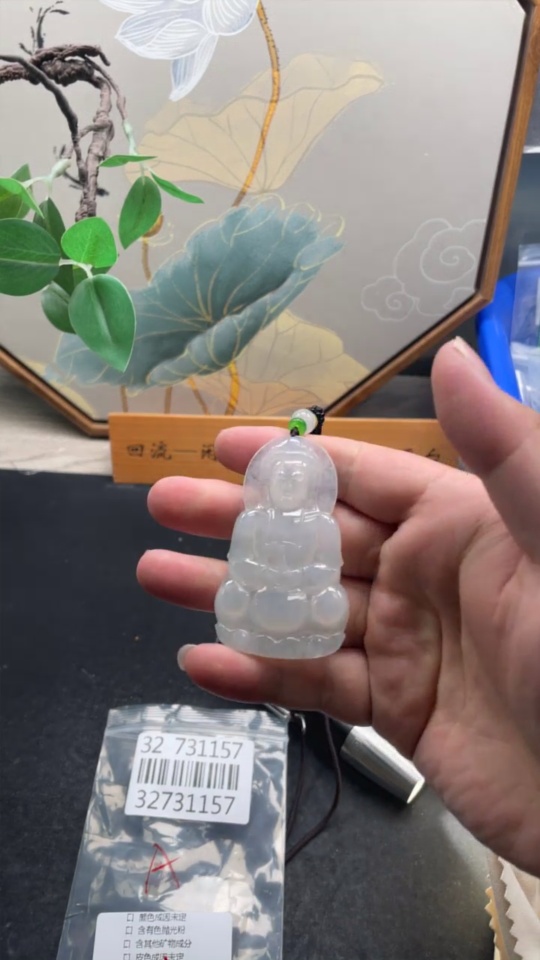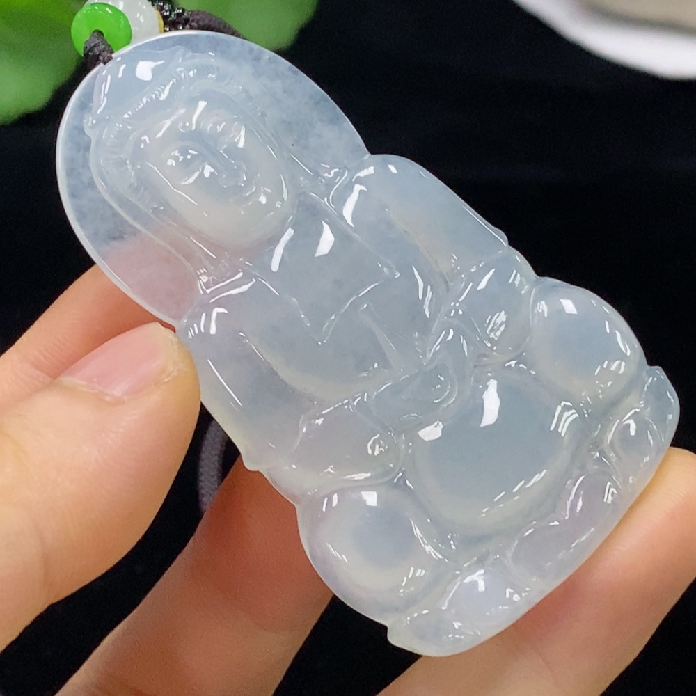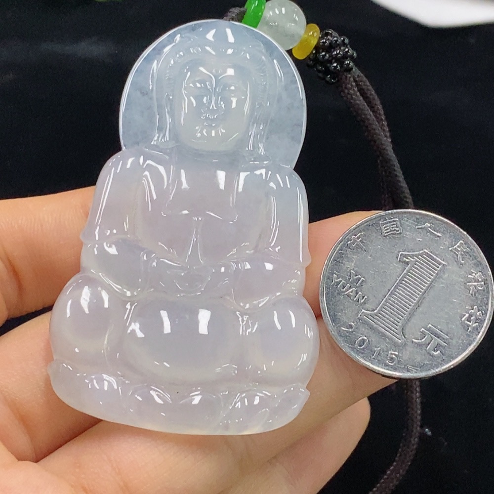 Jadeite Guanyin Pendant Total Weight Approx. 27.8g (Including Rope Weight) (Beads Not Grade A)