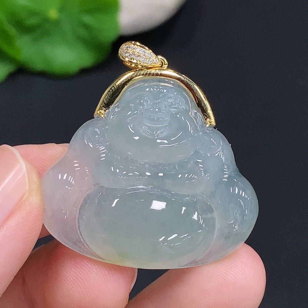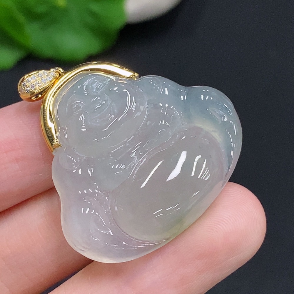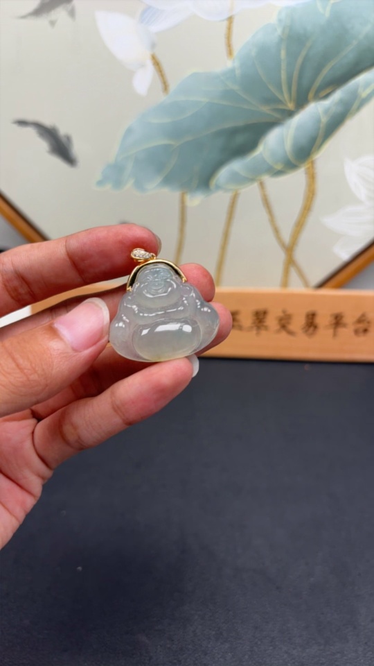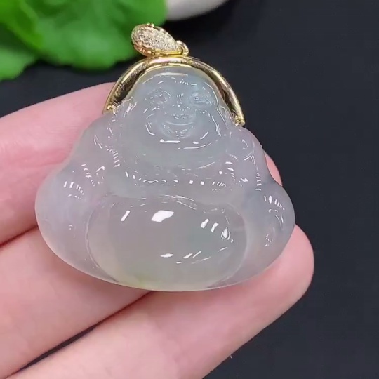 JadeiteBuddha Pendant with 18K Gold Clasp, Total Weight Approx. 11.1g, Non-Diamond