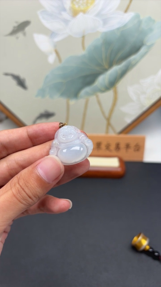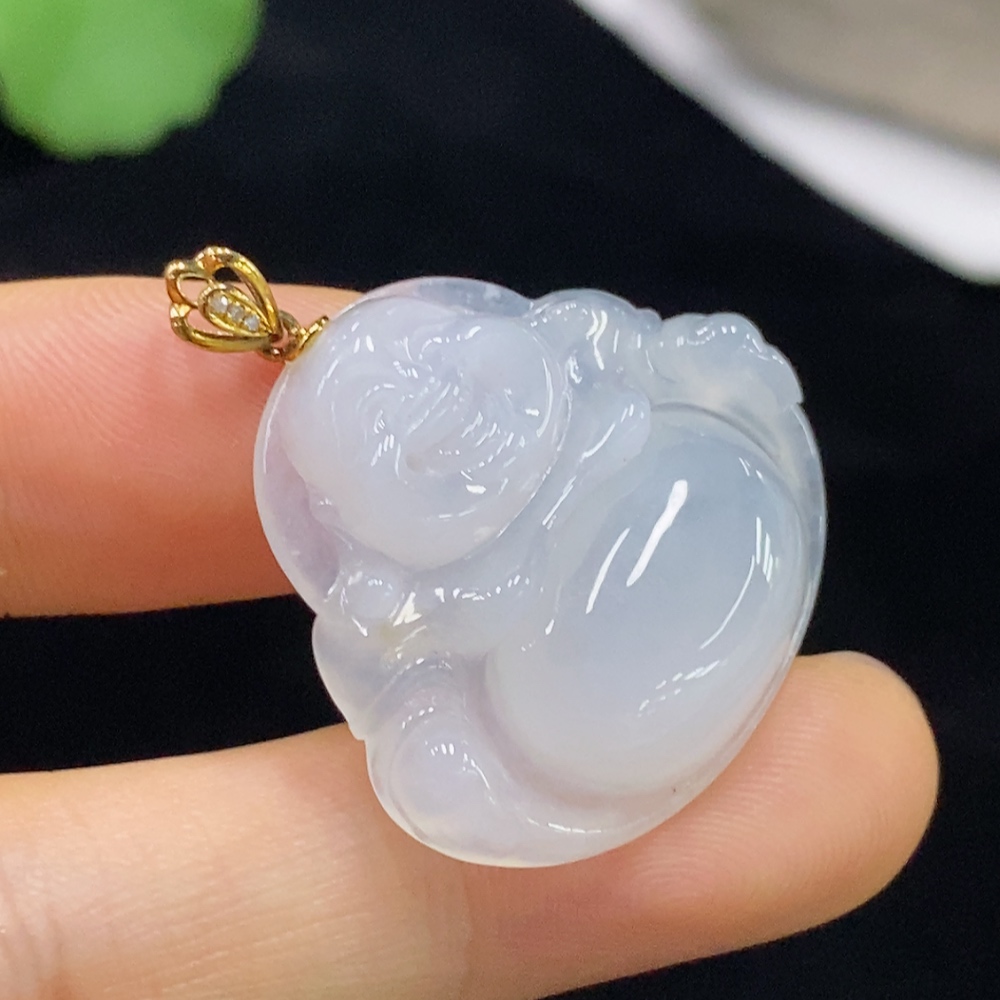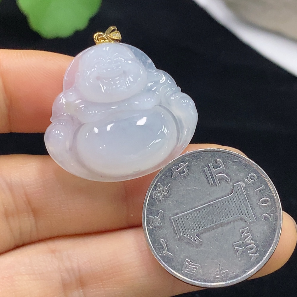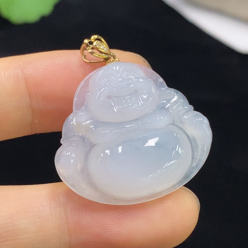 Jadeite Buddha Pendant with 18k Bail Total Weight Approx. 6.63g