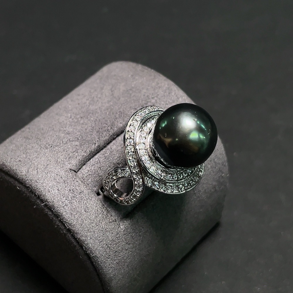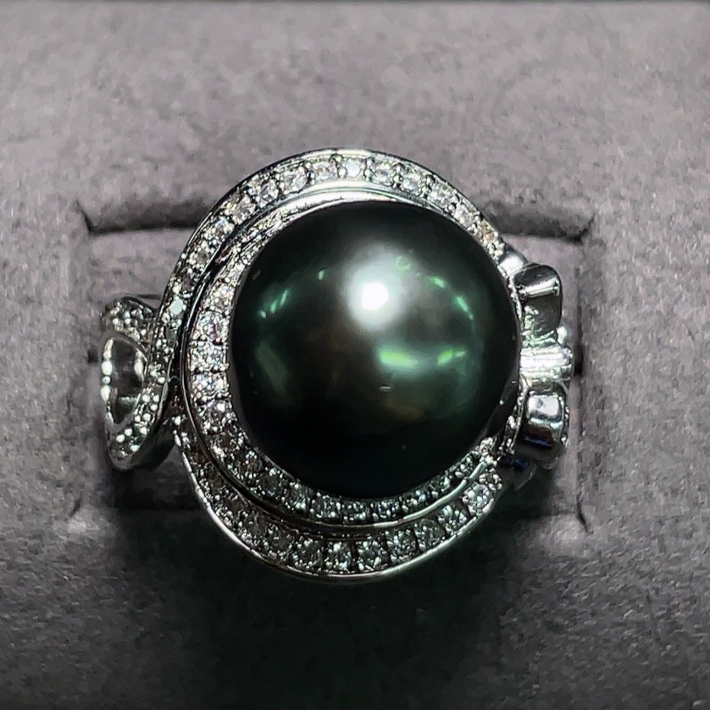 Seawater pearl ring, non-gold setting, adjustable, total weight approx. 8.1g, stone size approx. 12.1mm