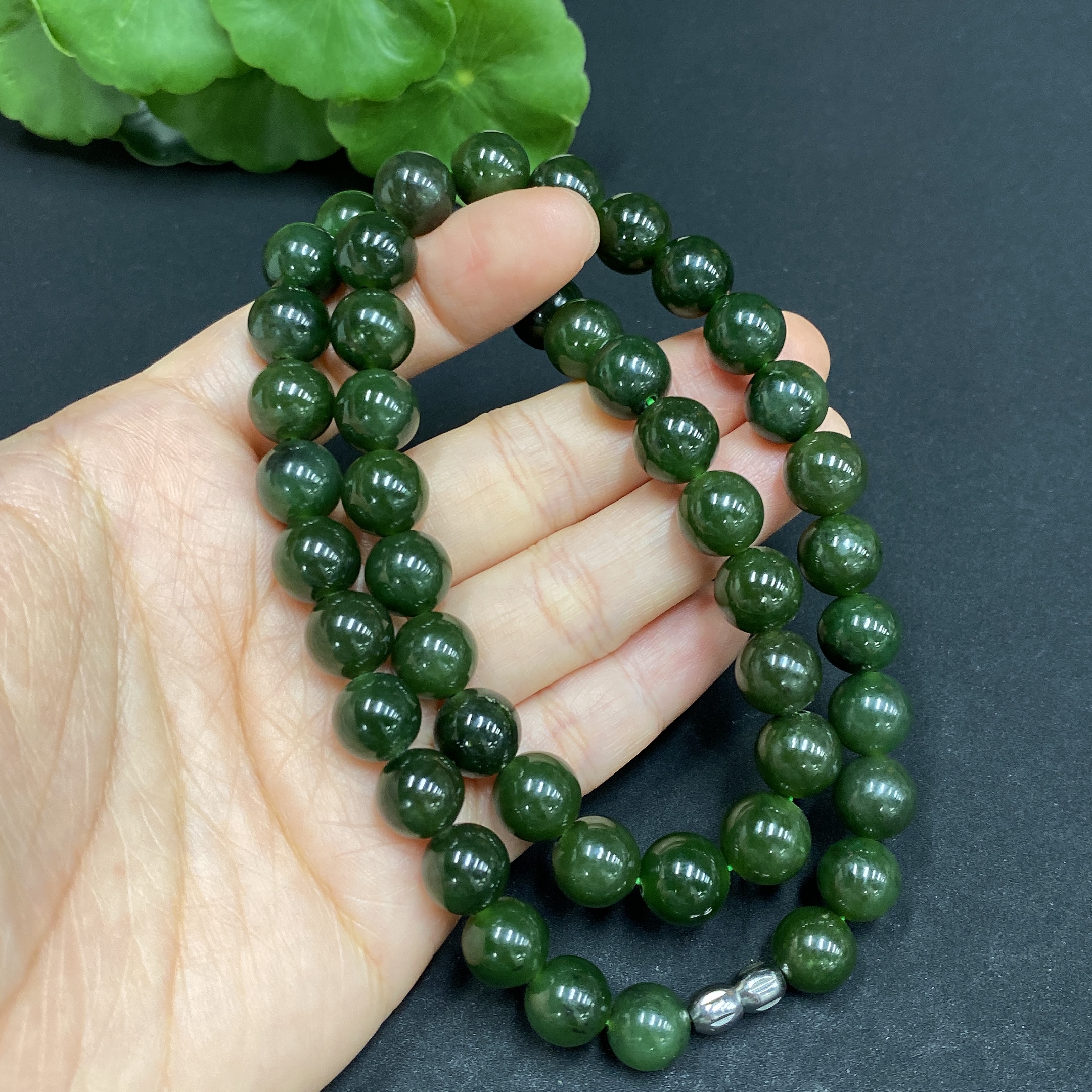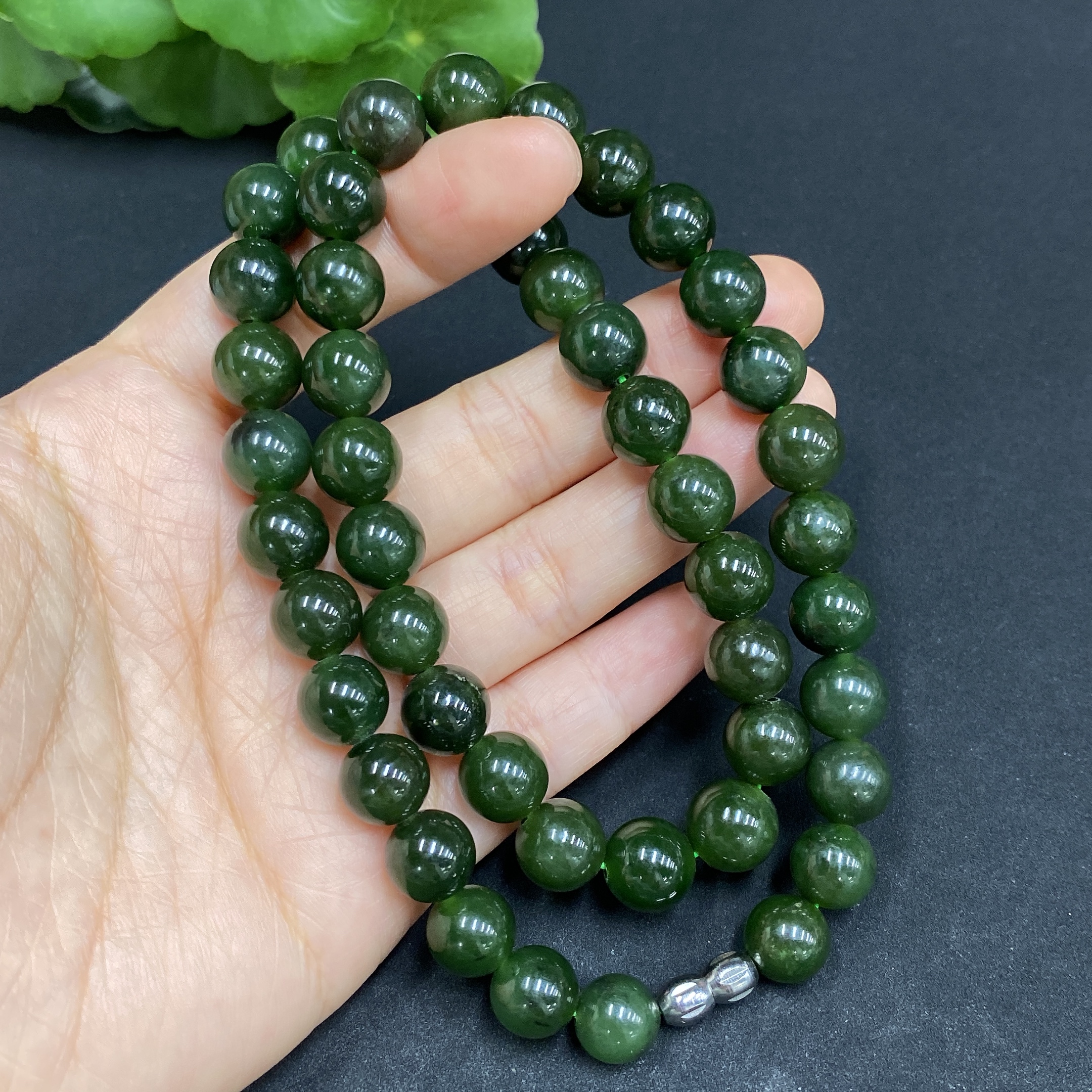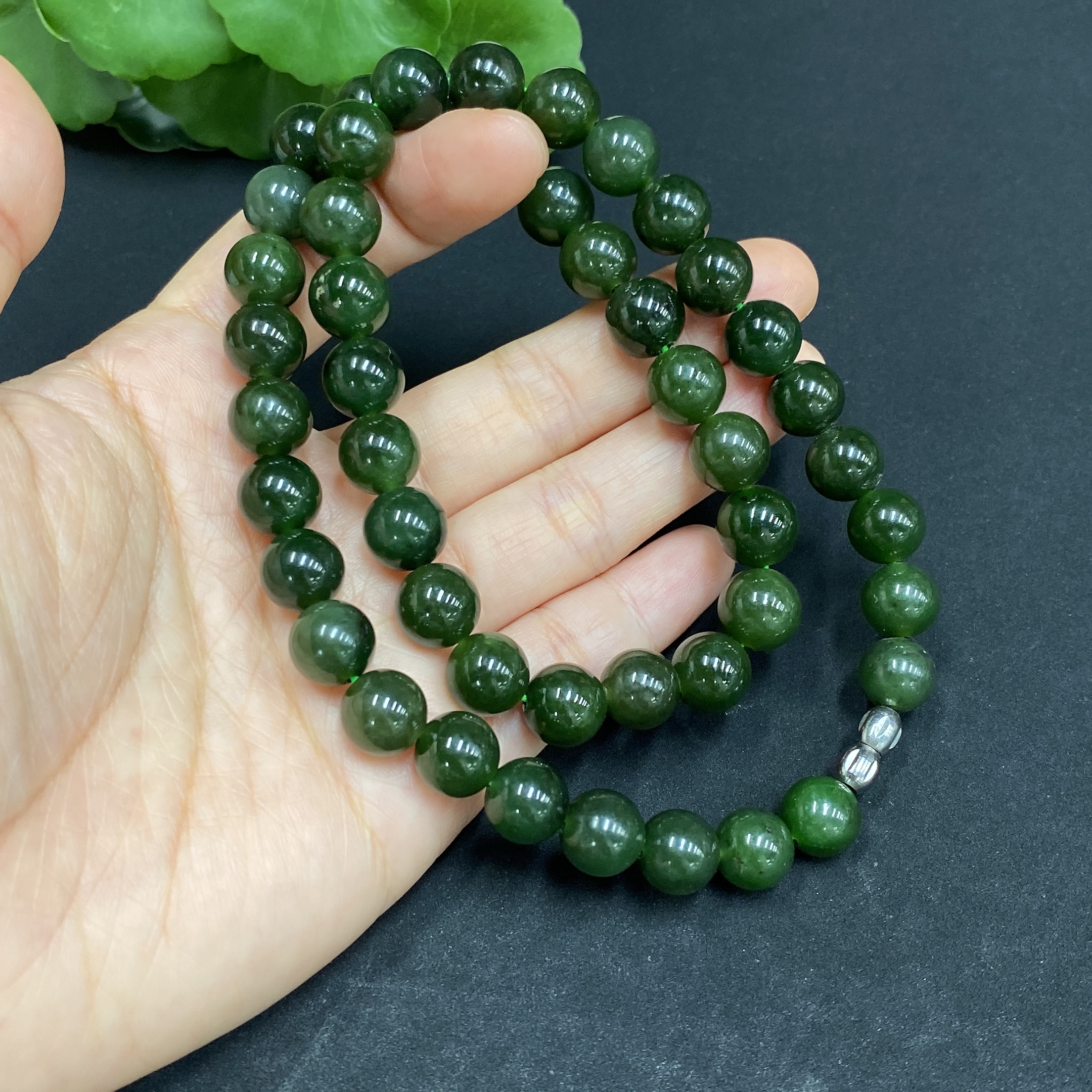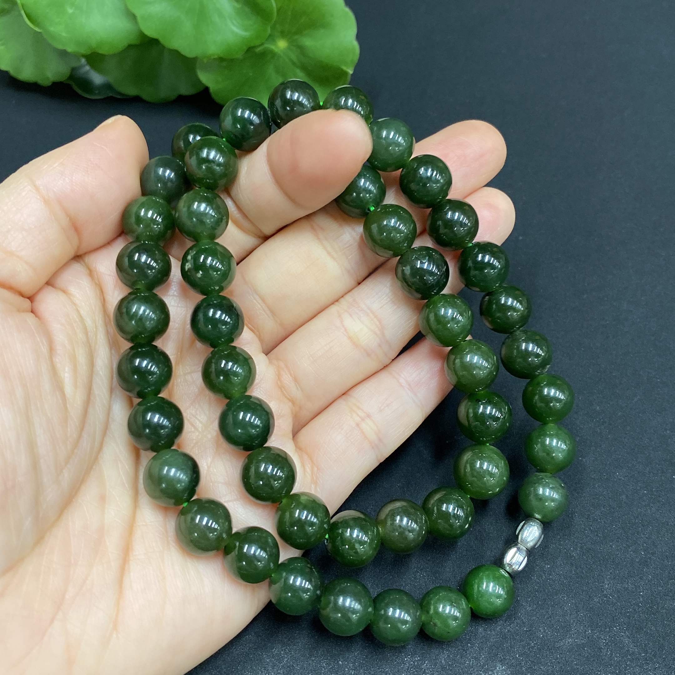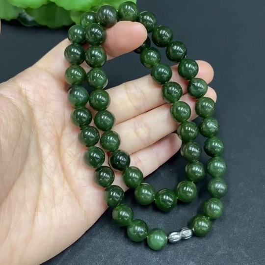 Hetian Jade Bead Necklace Approx. 9.2mm Total Weight Approx. 64g