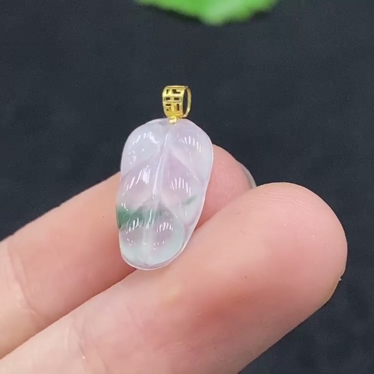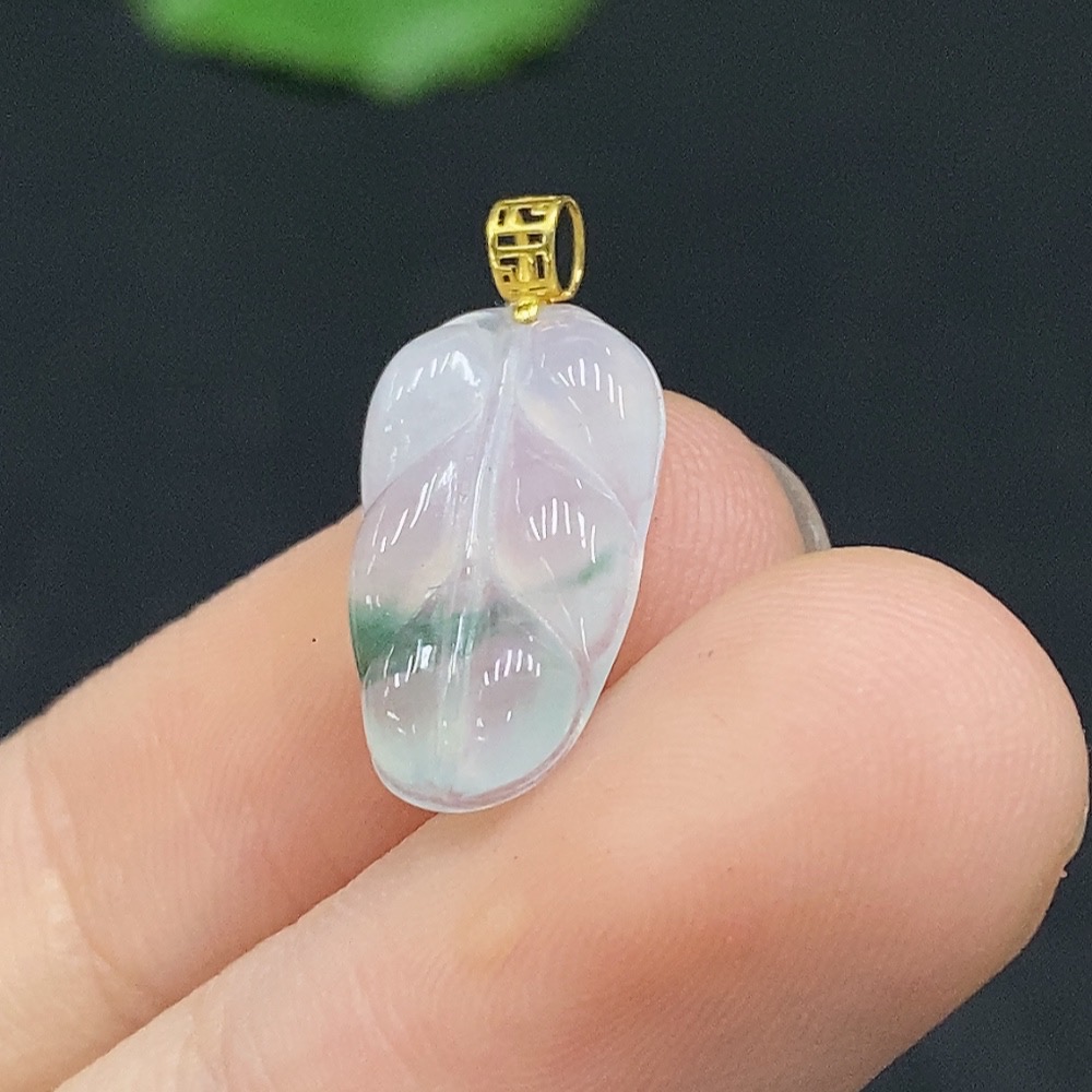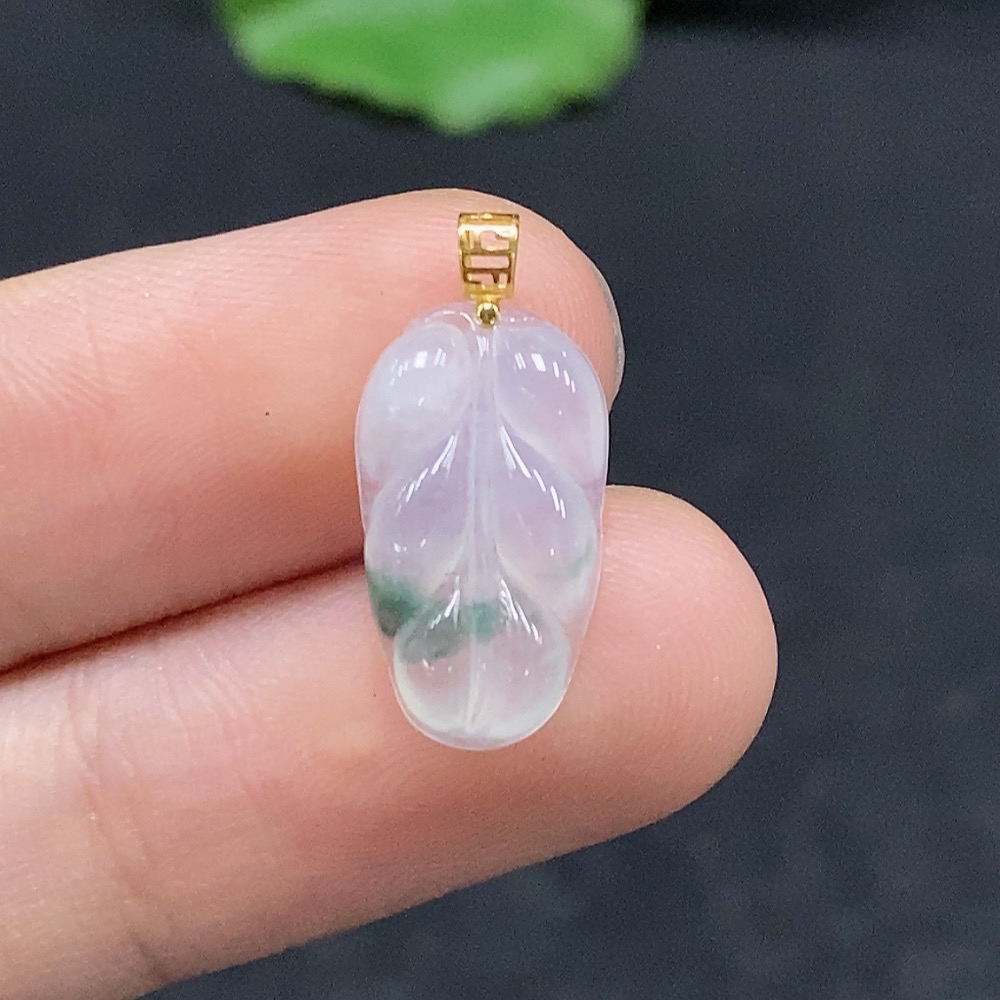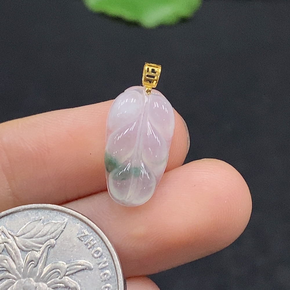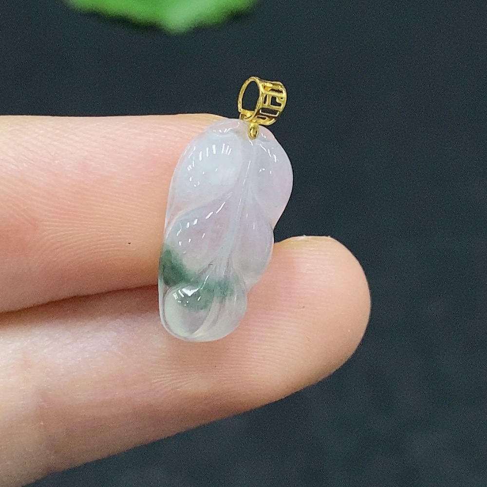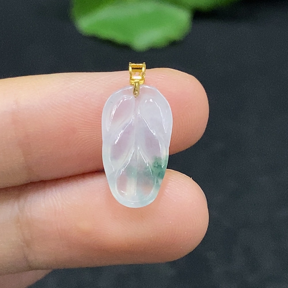 Jadeite Leaf Pendant 18K Gold Total Weight Approx. 0.77g