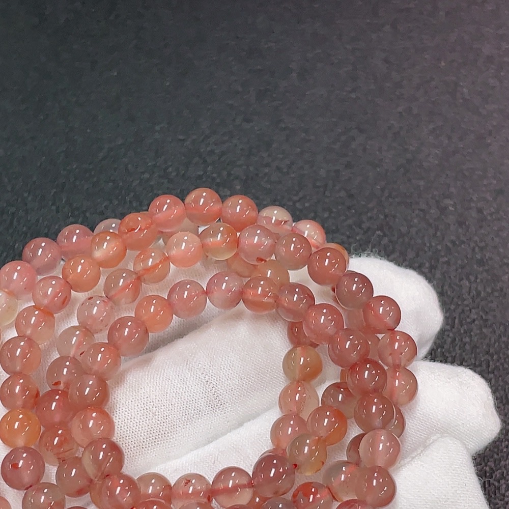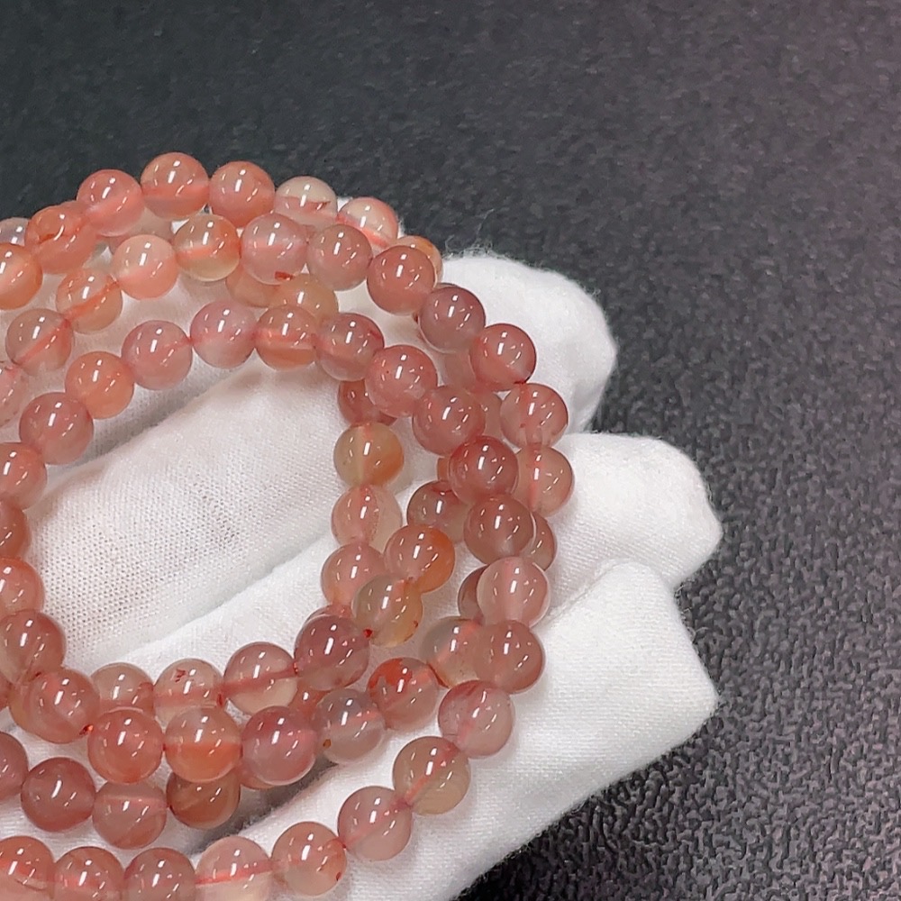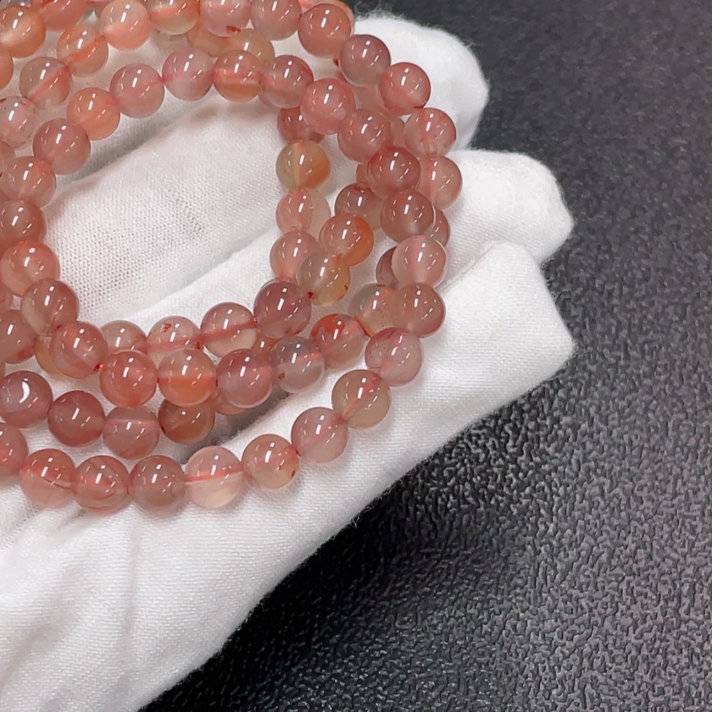 South Red Agate Bead Strand with Visible Organic Matter, Total Weight Approx. 34.24g, Size About 6mm