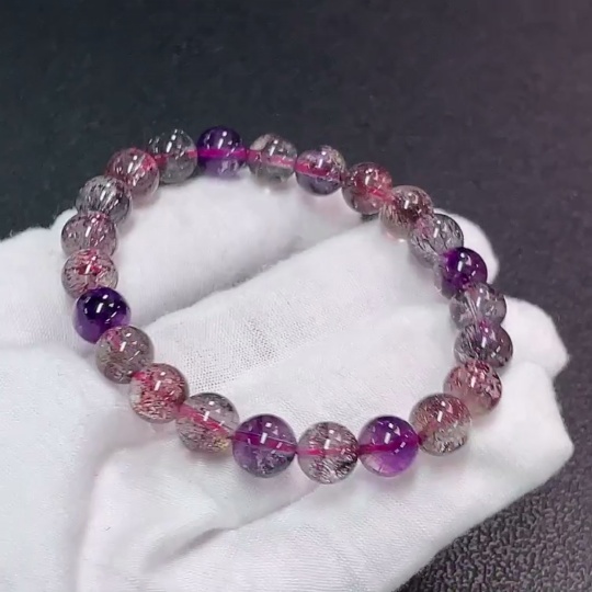 Crystal Bracelet with Visible Organic Matter, Total Weight Approx. 16.95g, Size About 7.8mm
