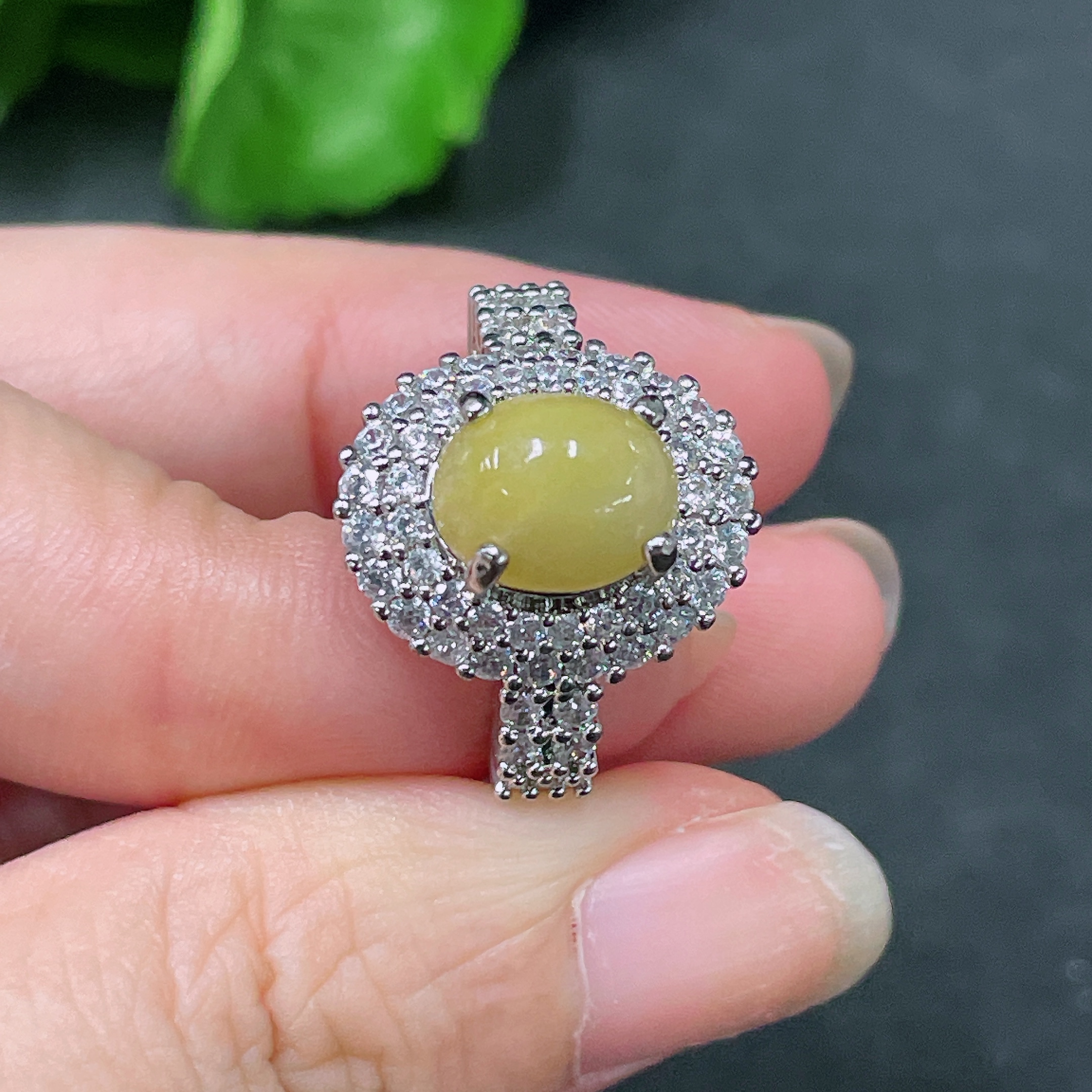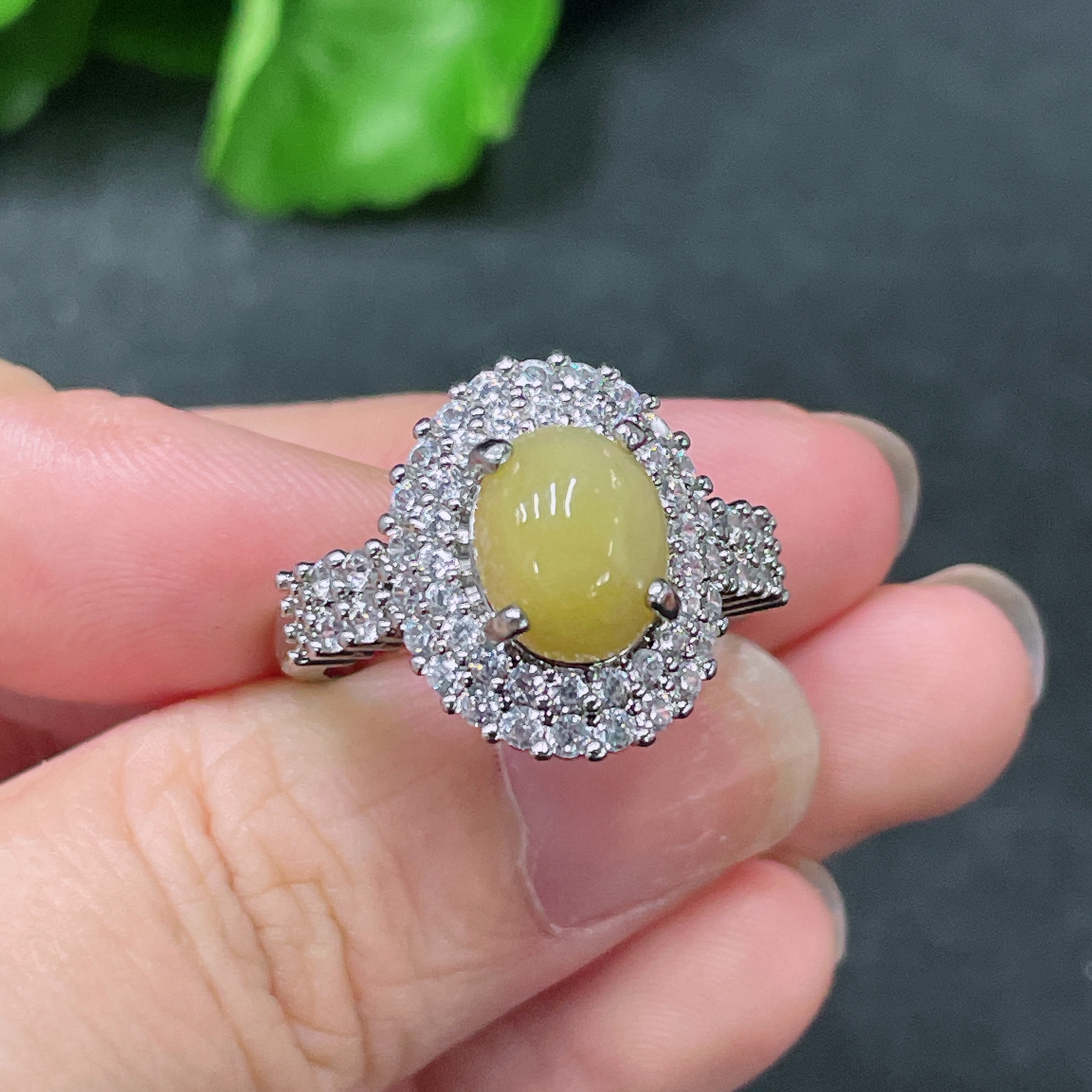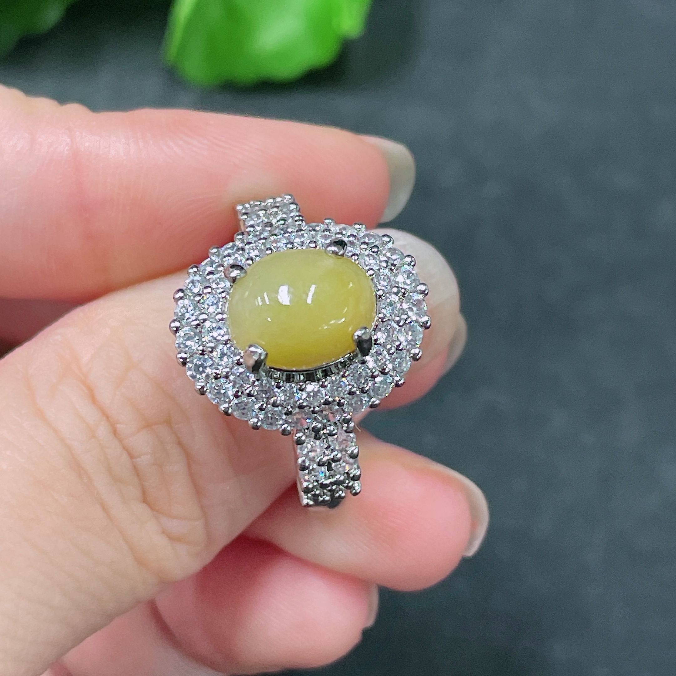 Jadeite Inlay Non-Gold Adjustable Color Origin Undetermined Total Weight Approx. 5.03g